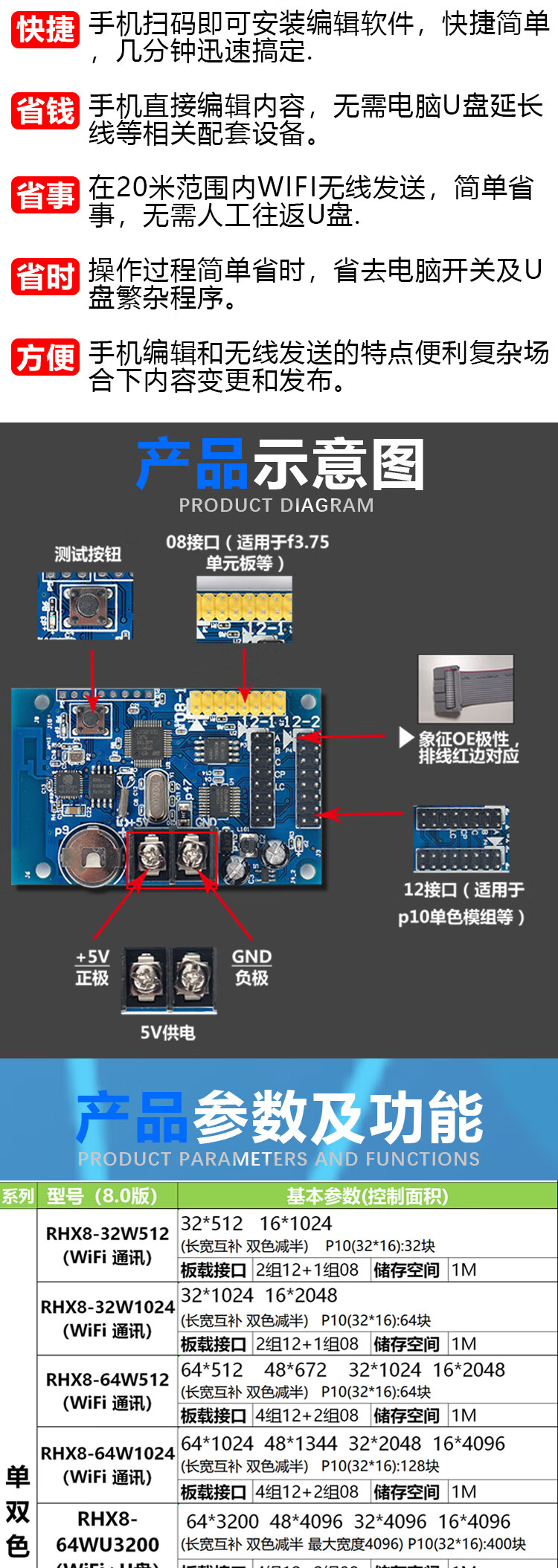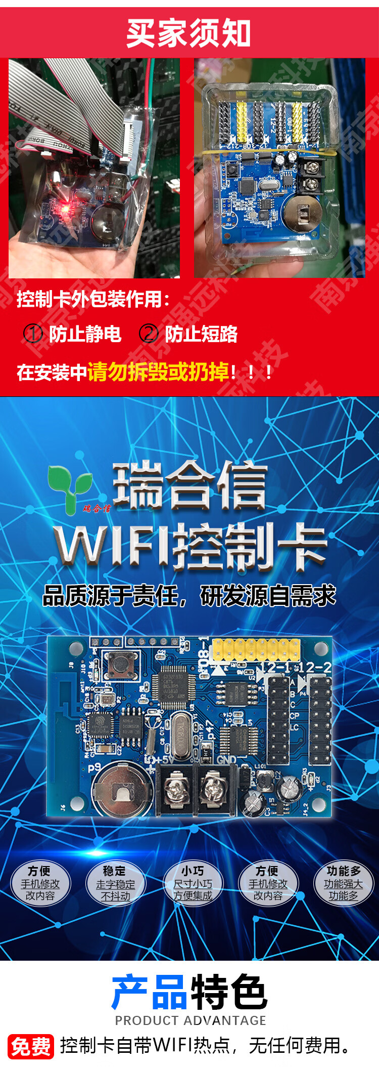 Customized applicable Ruihexin LED display mobile phone wireless wifi control card door LED electric RHX-512WU2048 requires an adapter board