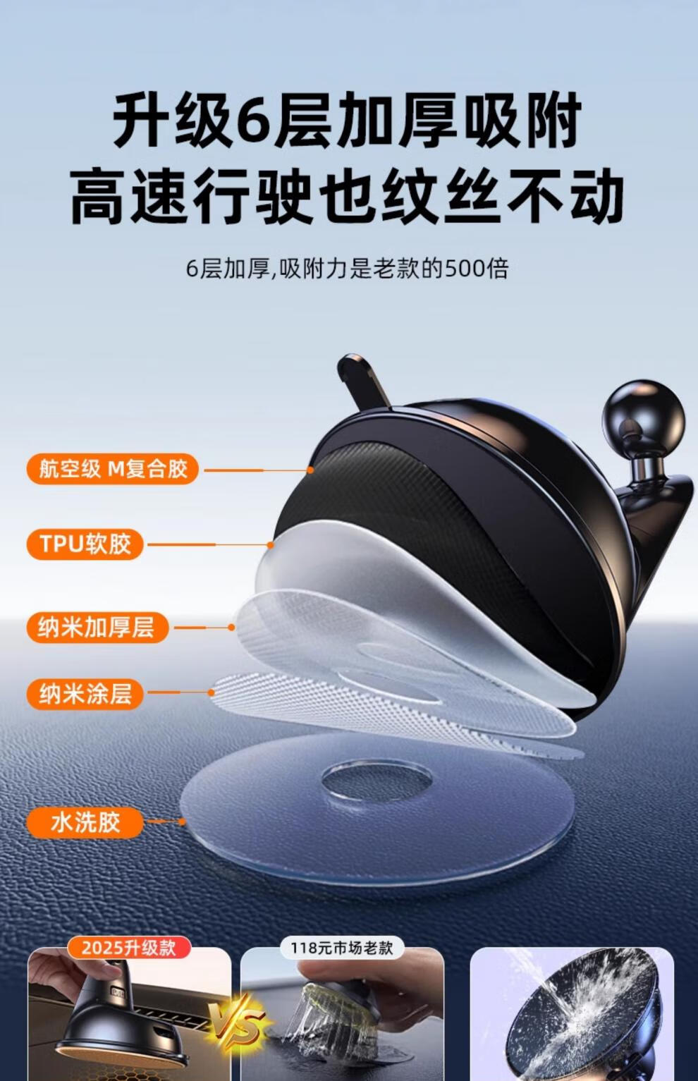 Kojero car mobile phone holder 2025 new suction cup car dashboard universal navigation fixed clamping support nano suction cup holder comes with enhanced adsorption assistance nano suction cup can switch scenes at will with one click