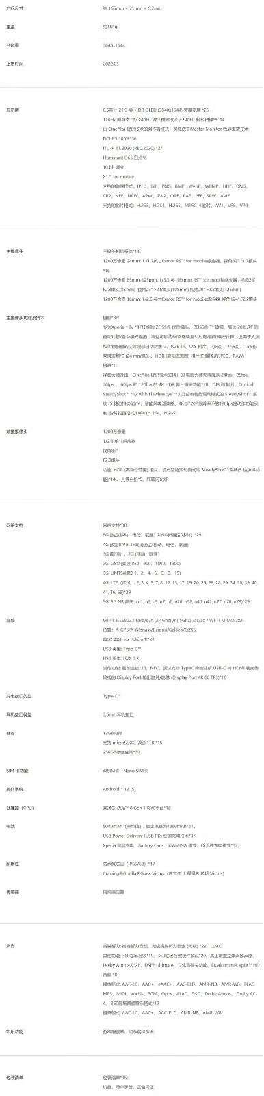 Sony (SONY) Xperia1 IV Smart 5GVLOG HD 4K120Hz OLED 8Gen1 Stock Mobile Phone Full Screen Black Hong Kong Version 256G