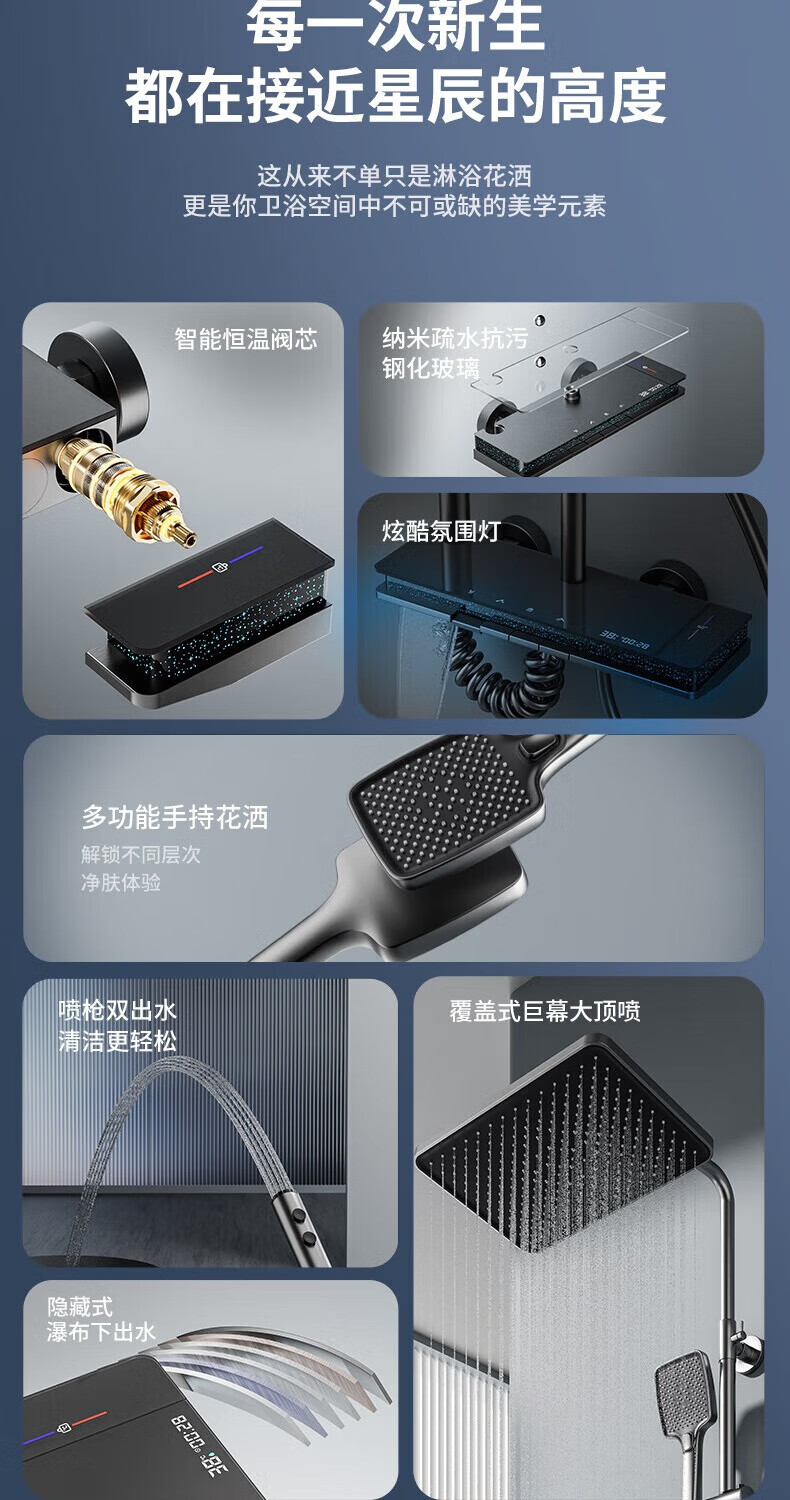 Jomoo all-copper shower head piano key shower home constant temperature boosted shower head bathroom shower rain shower set Main picture Gypsophila chlorine removal constant temperature model Free installation