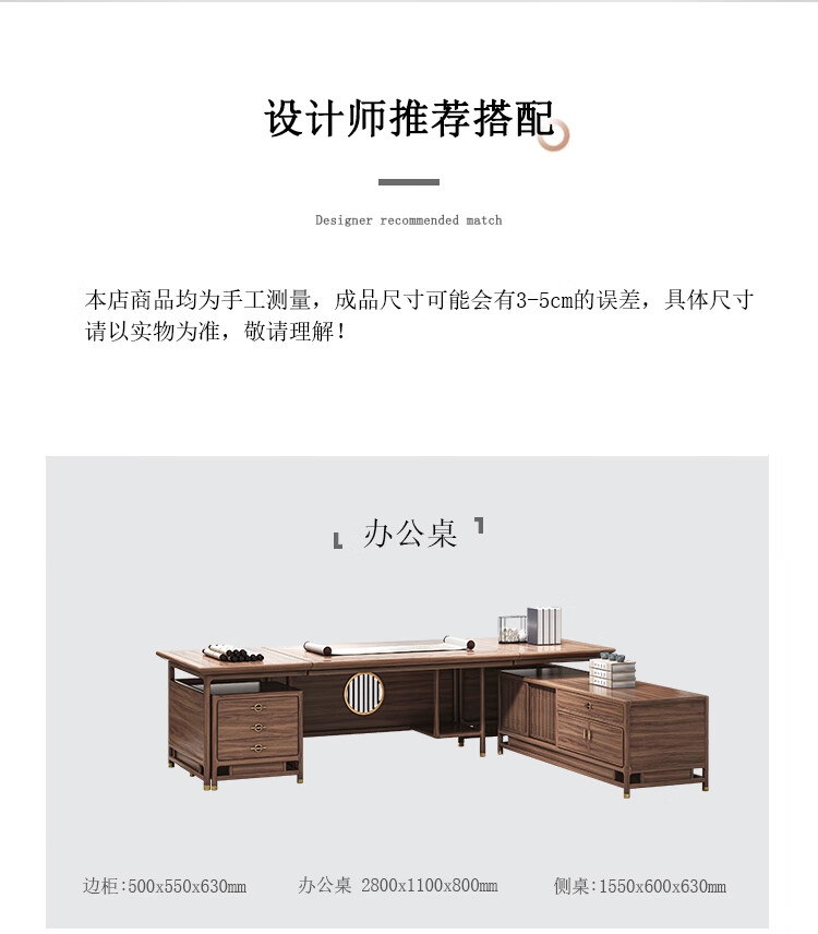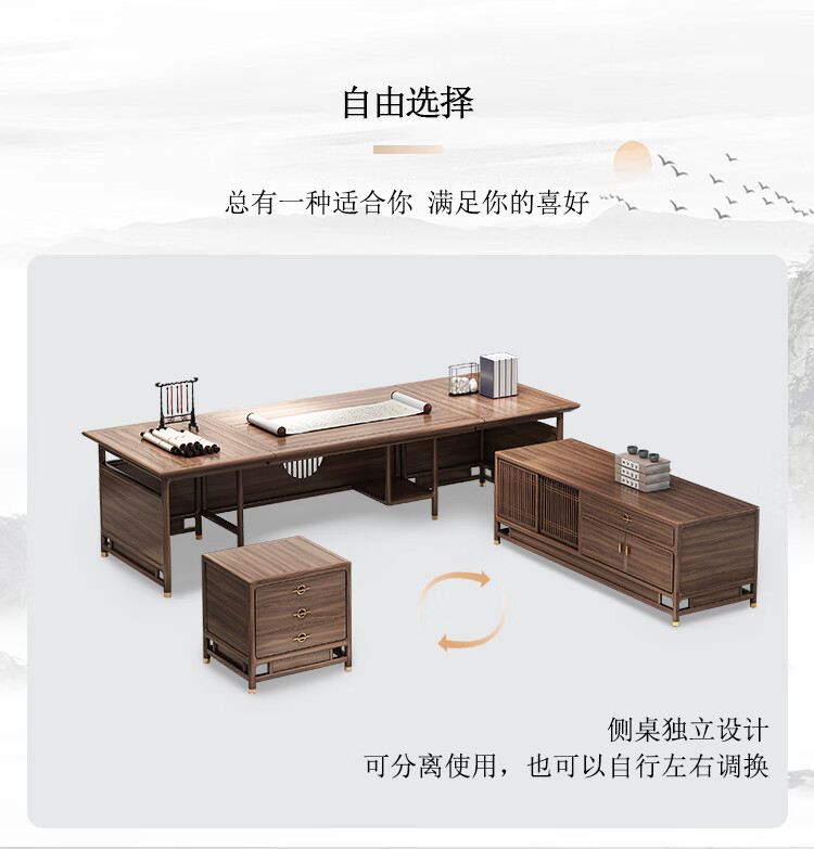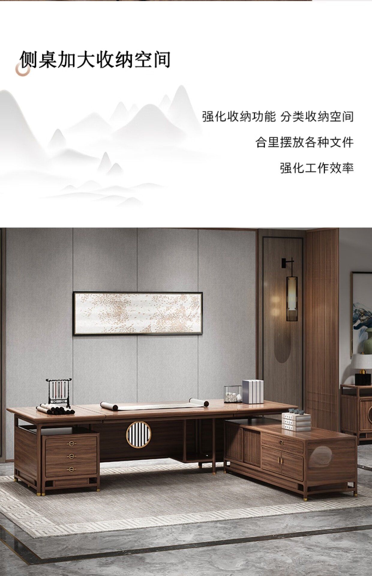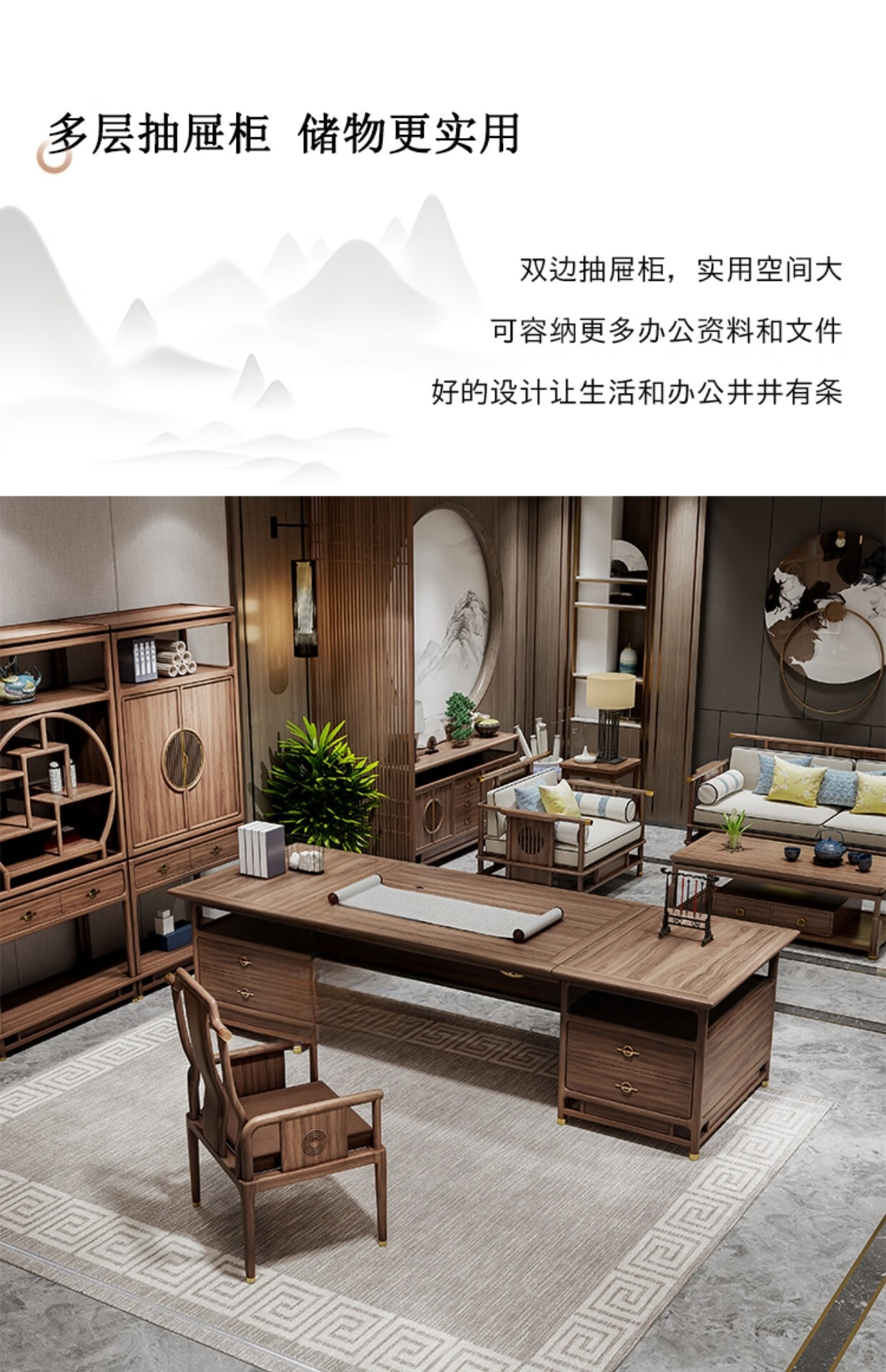 New Chinese style solid wood executive desk office desk and chair combination, simple and modern president's office furniture, ebony wood boss table, 2-meter boss table (ebony wood)