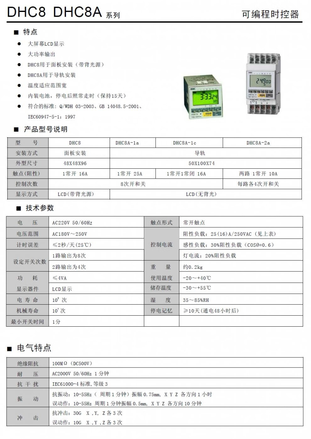 DHC8/DHC8A-1A/1C/2A cycle Dahua programmable time controller Wenzhou timer TIME SWITCH DHC8A-1A A set of normally open output