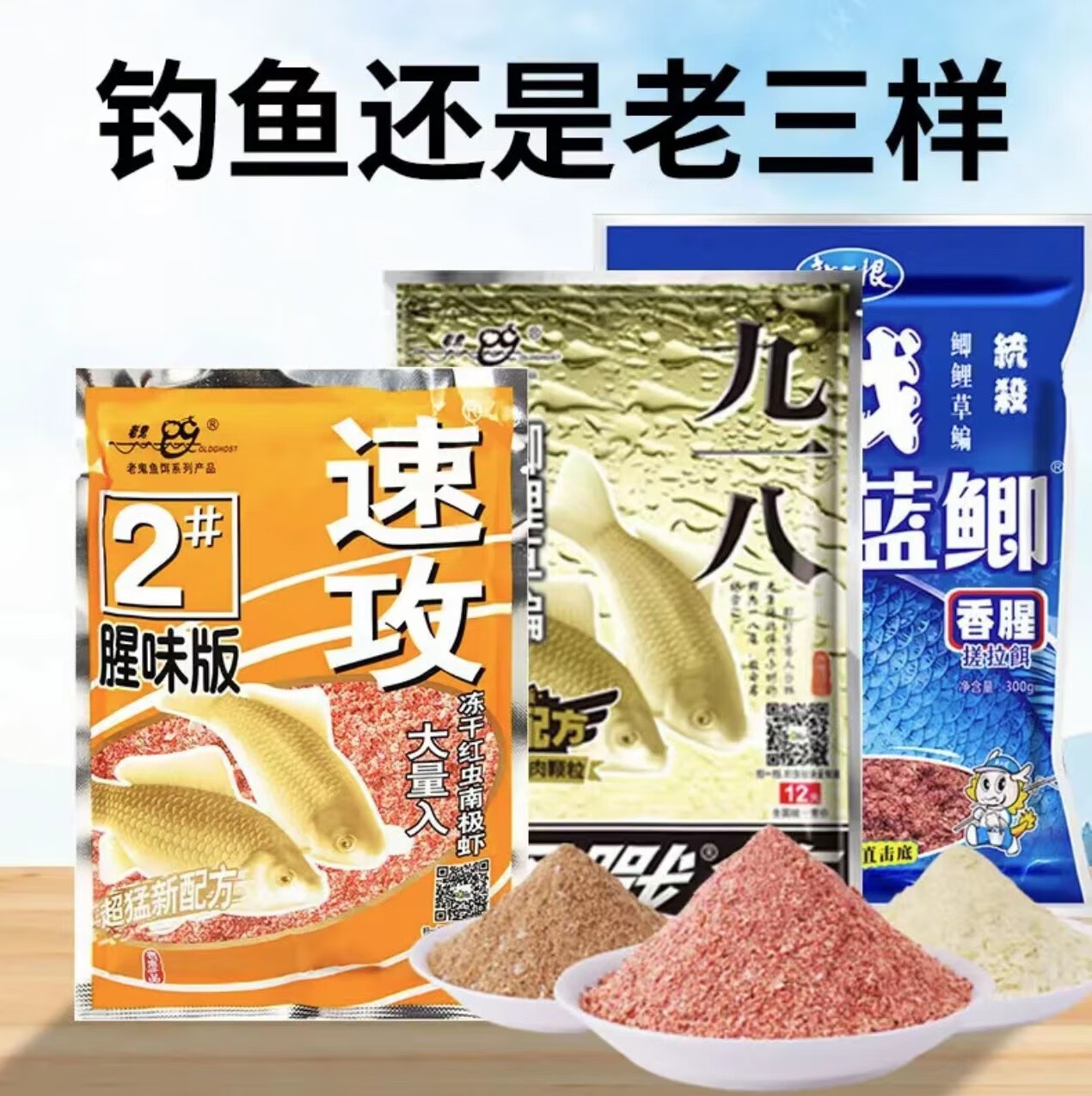 Blue crucian carp, old ghost, old three fish bait, blue crucian carp bait, fishing bait, fish feed, nest bait, crucian carp bait, nest bait, blue crucian carp 300g+918 fragrance 300g+quick attack 110g No Specifications
