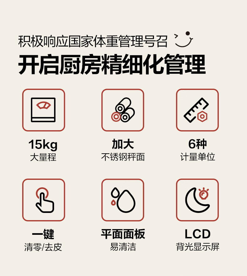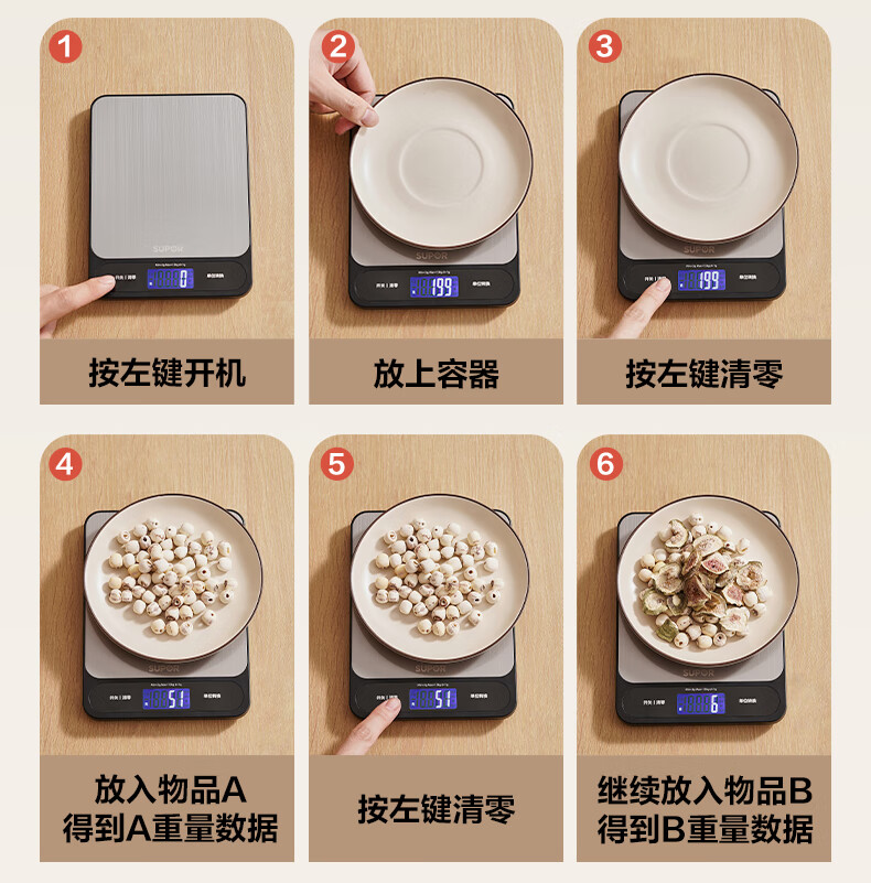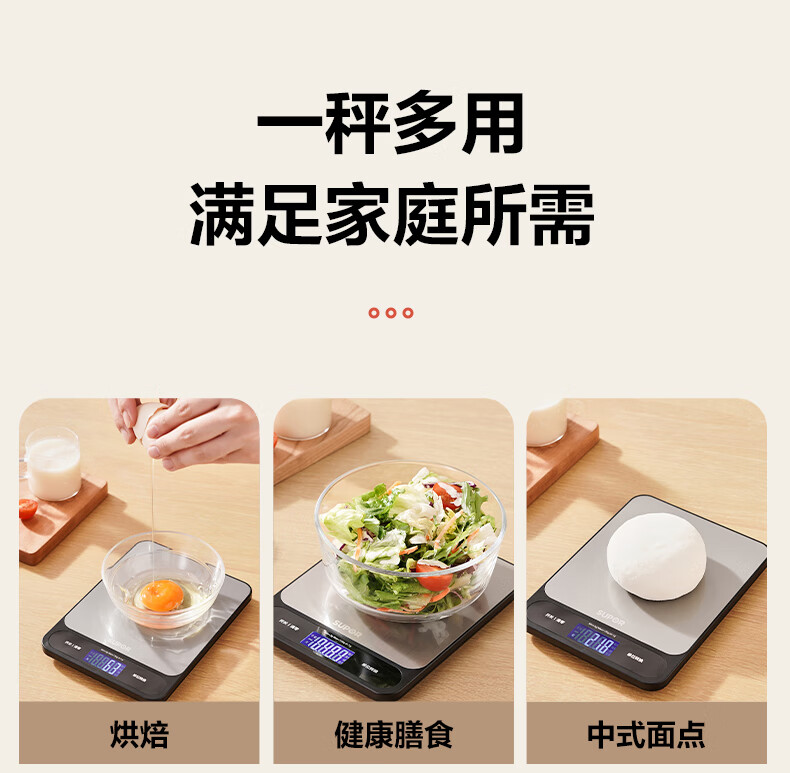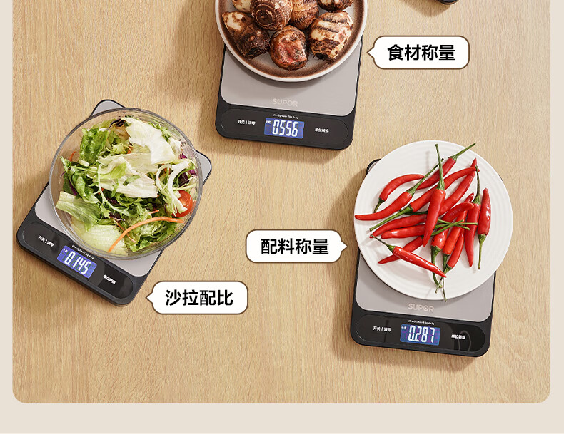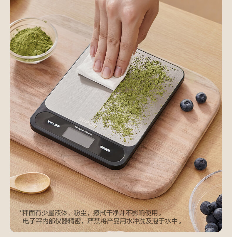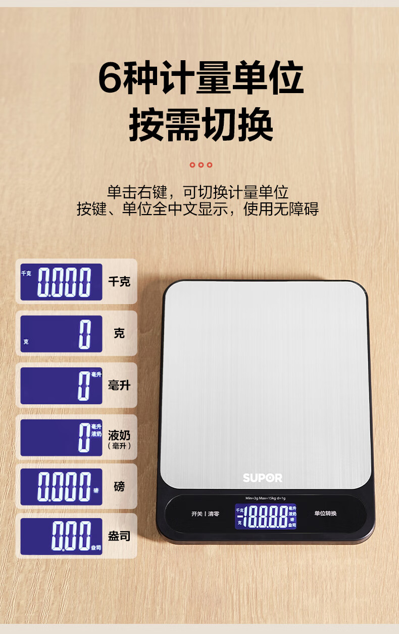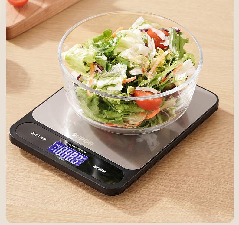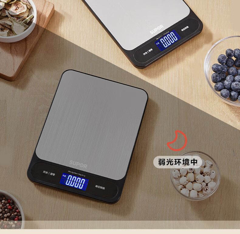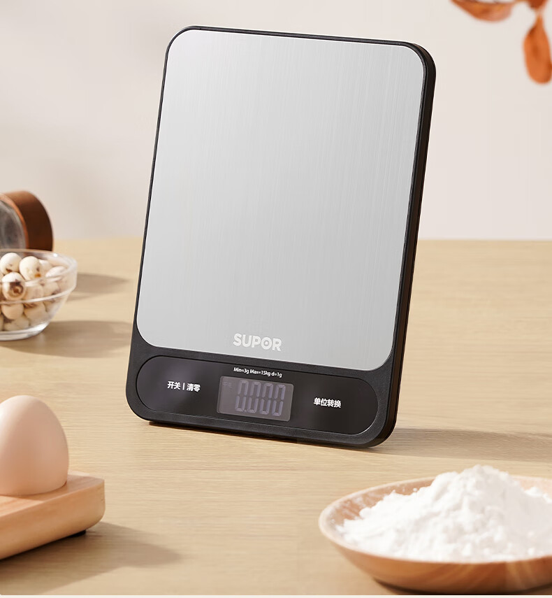 SUPOR kitchen electronic scale household small high-precision kitchen scale gram scale food weighing food scale baking gram weight scale kitchen scale stainless steel panel 15kg large range