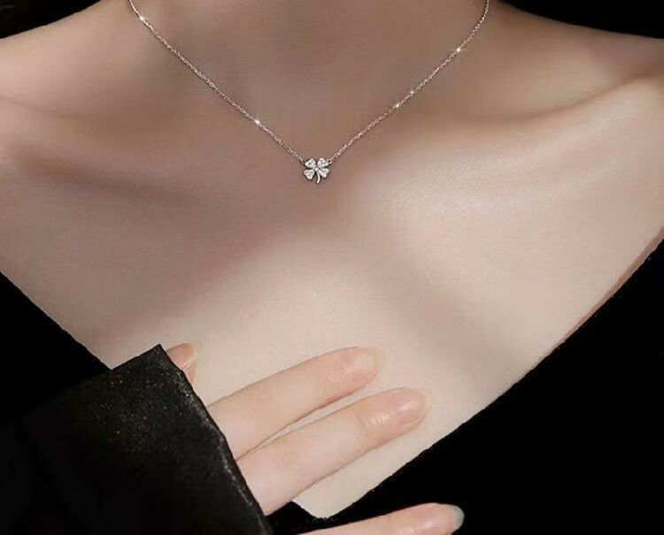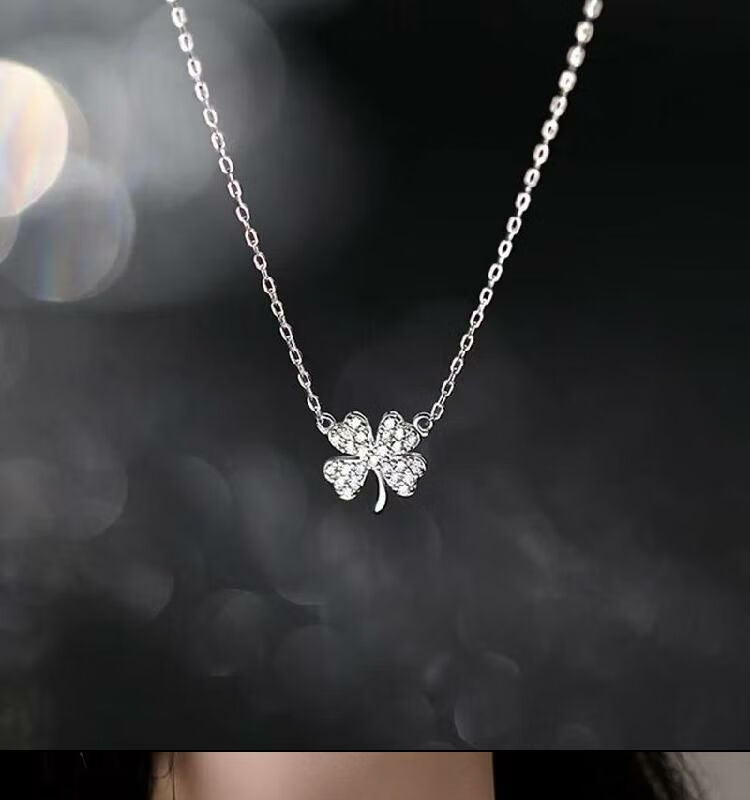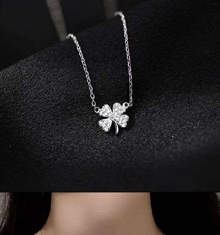 Simple cold style necklace, silver four-leaf clover necklace, women's niche light luxury new lucky leaf pendant necklace, silver four-leaf clover necklace, one FX model, no Specifications