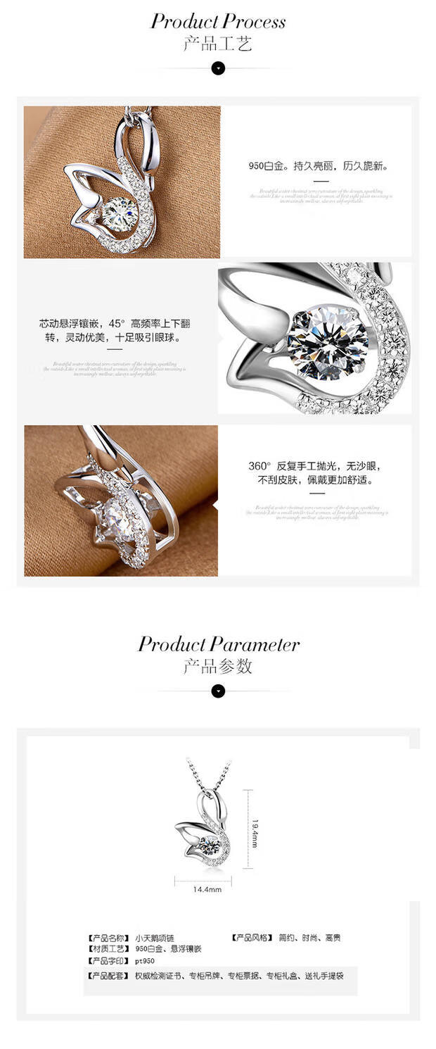 Nilan Fat Donglai same style pt950 platinum set chain PT950 necklace birthday gift 18 necklace versatile jewelry diamond ingot chain + swan pendant