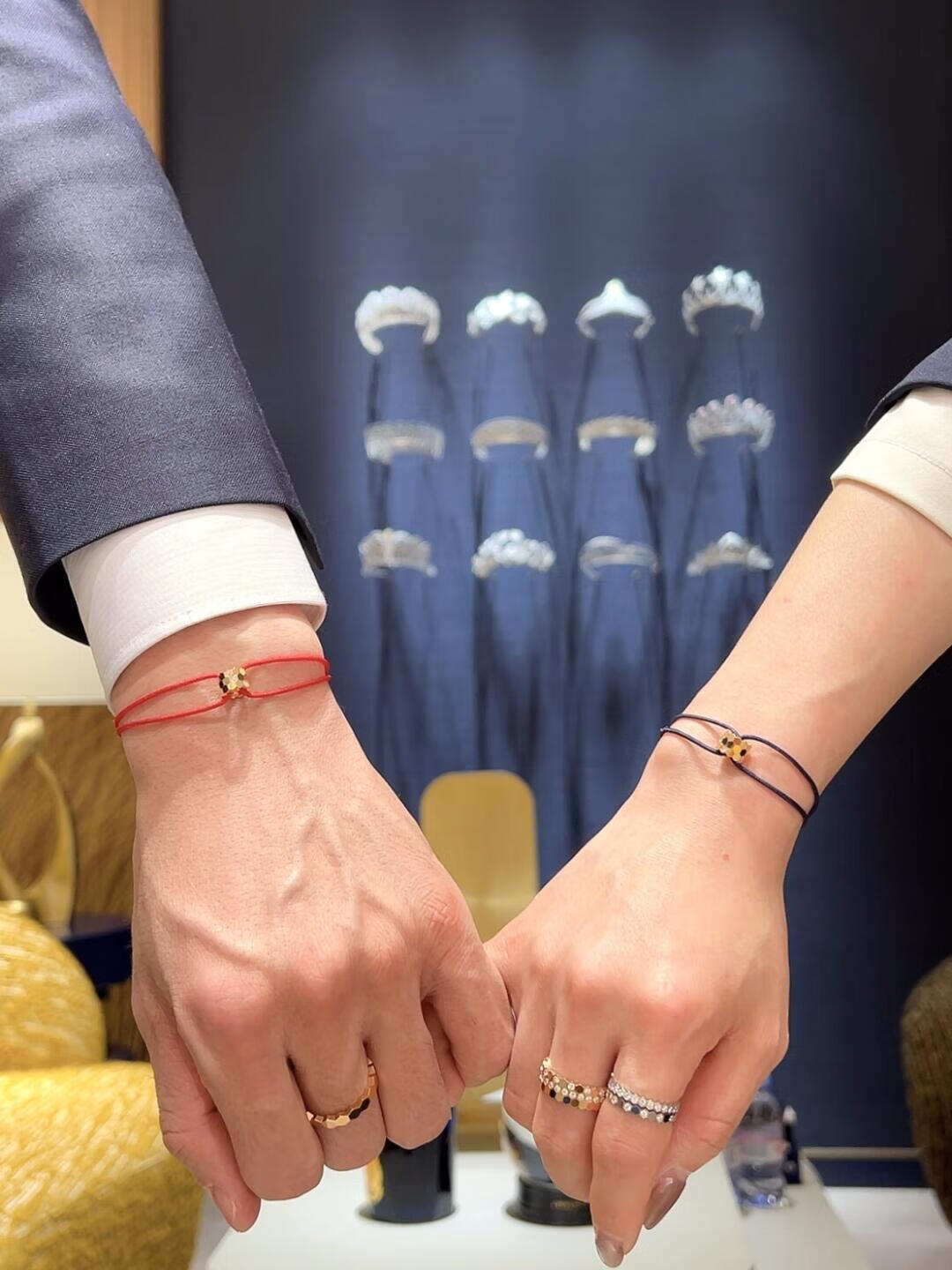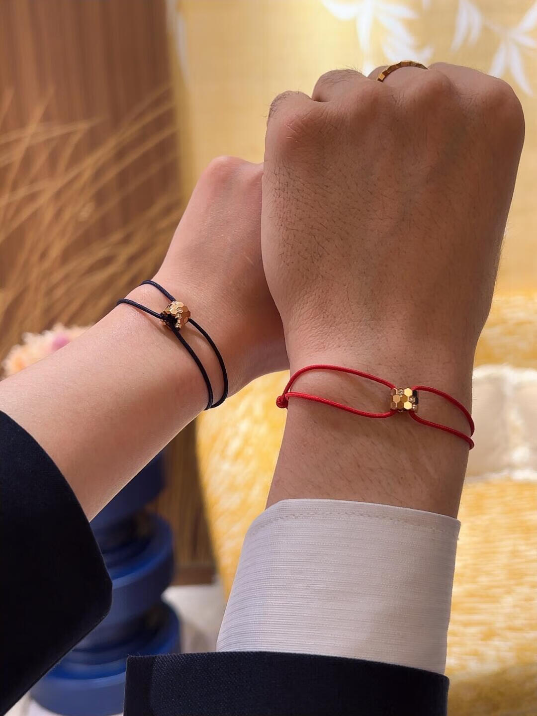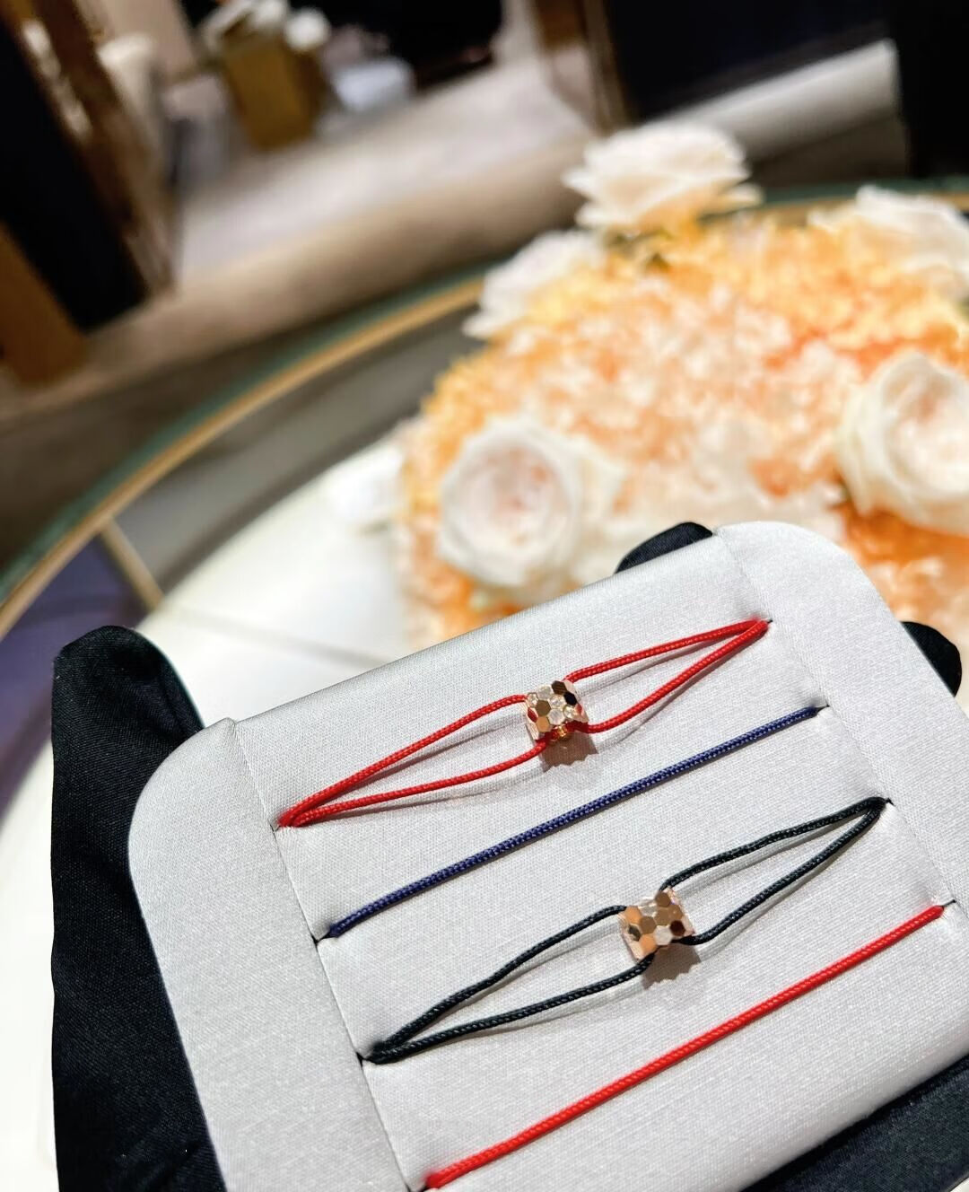 Chili 2025 fashionable Paris new honeycomb bracelet 18K rose gold couple diamond red rope bracelet gift single diamond