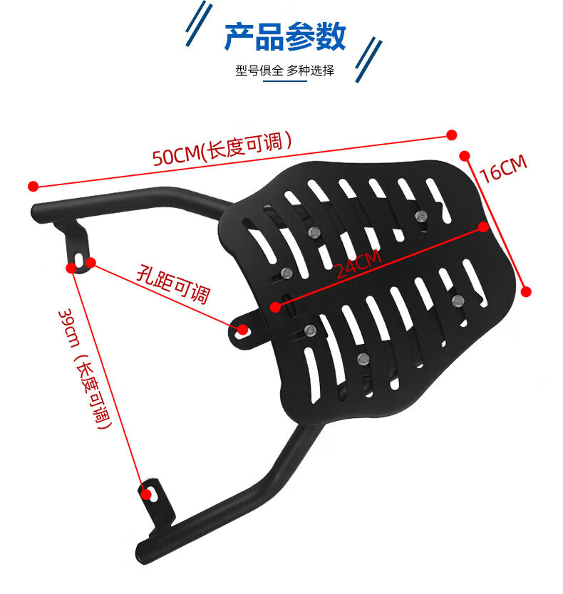 GUEIN electric vehicle rear tail frame thickened universal backrest battery motorcycle modified tail box rack take-out fixed bracket integrated black universal style thickened tail box shelf