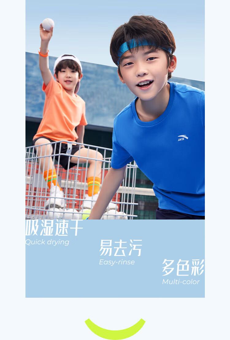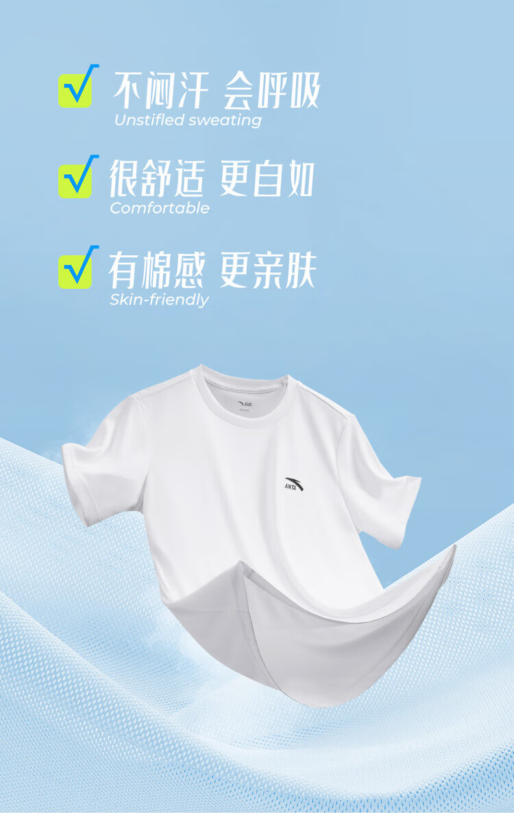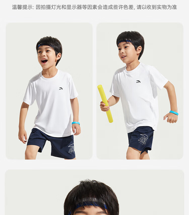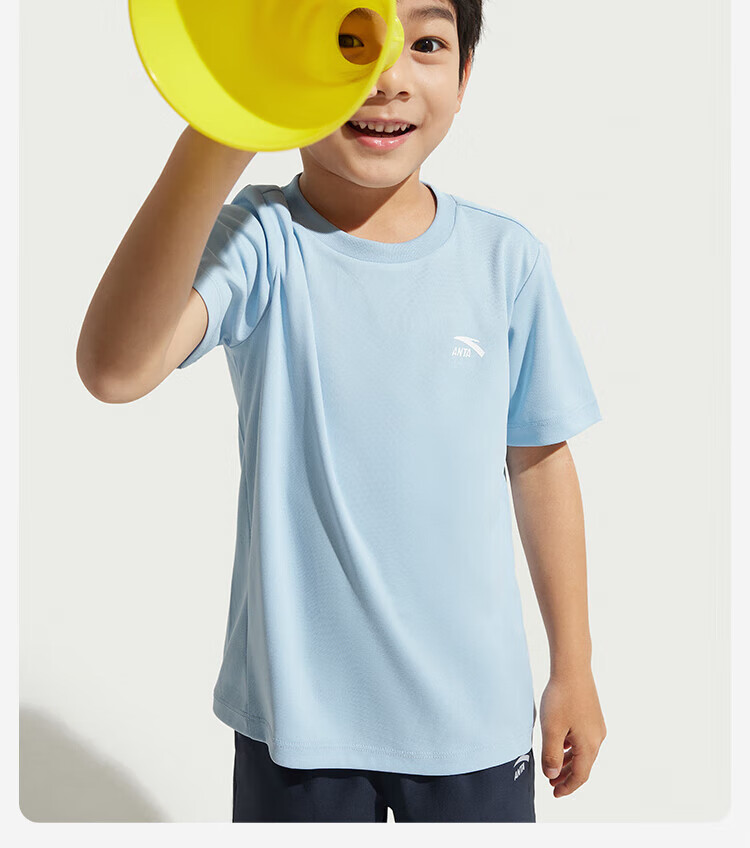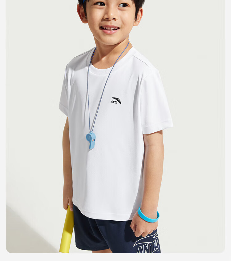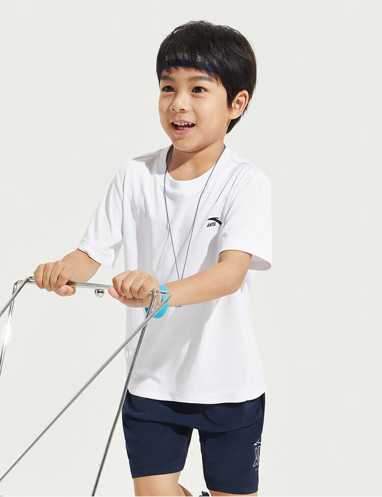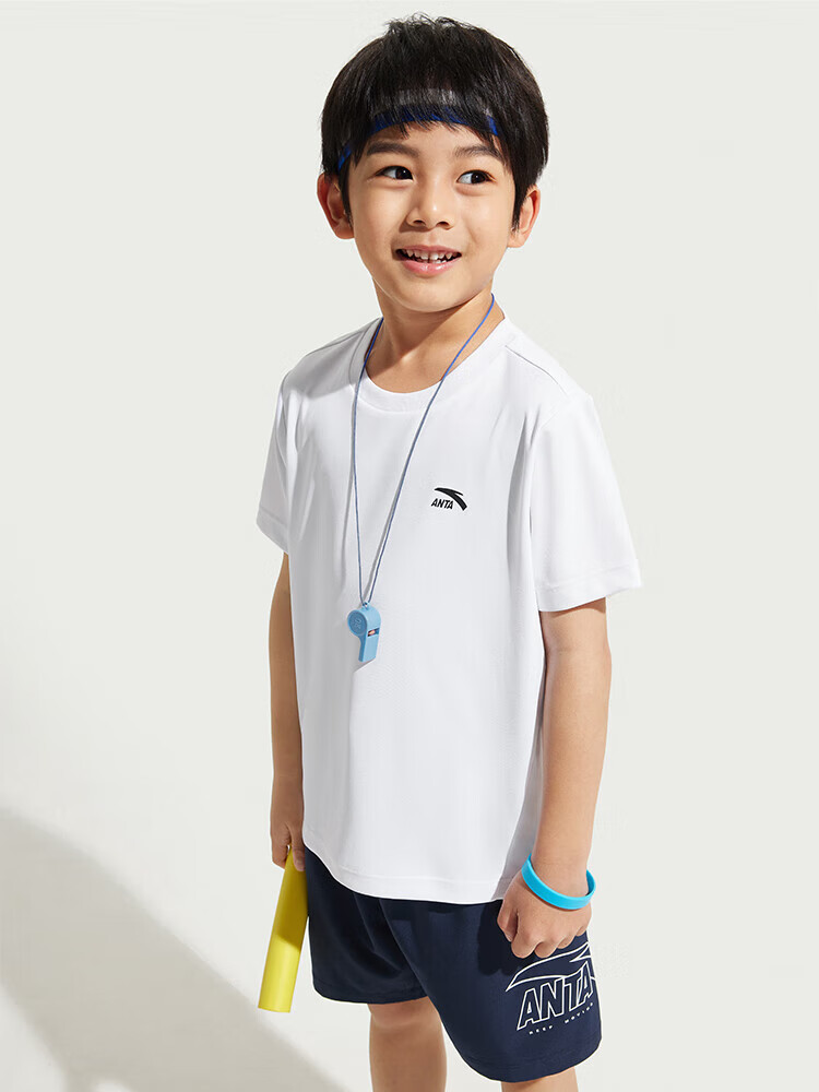 Anta children's T-shirts for boys and girls 2025 summer new style quick-drying breathable comfortable cool solid color short-sleeved t pure white-1 110