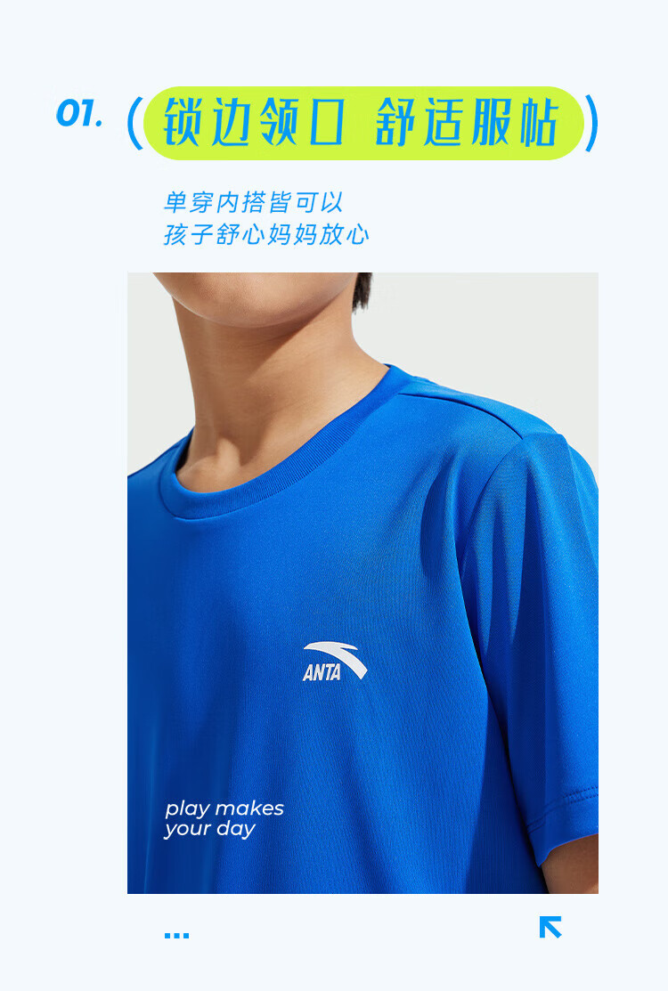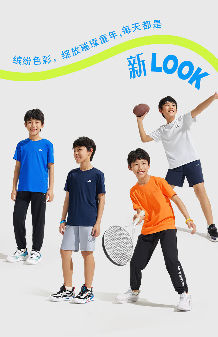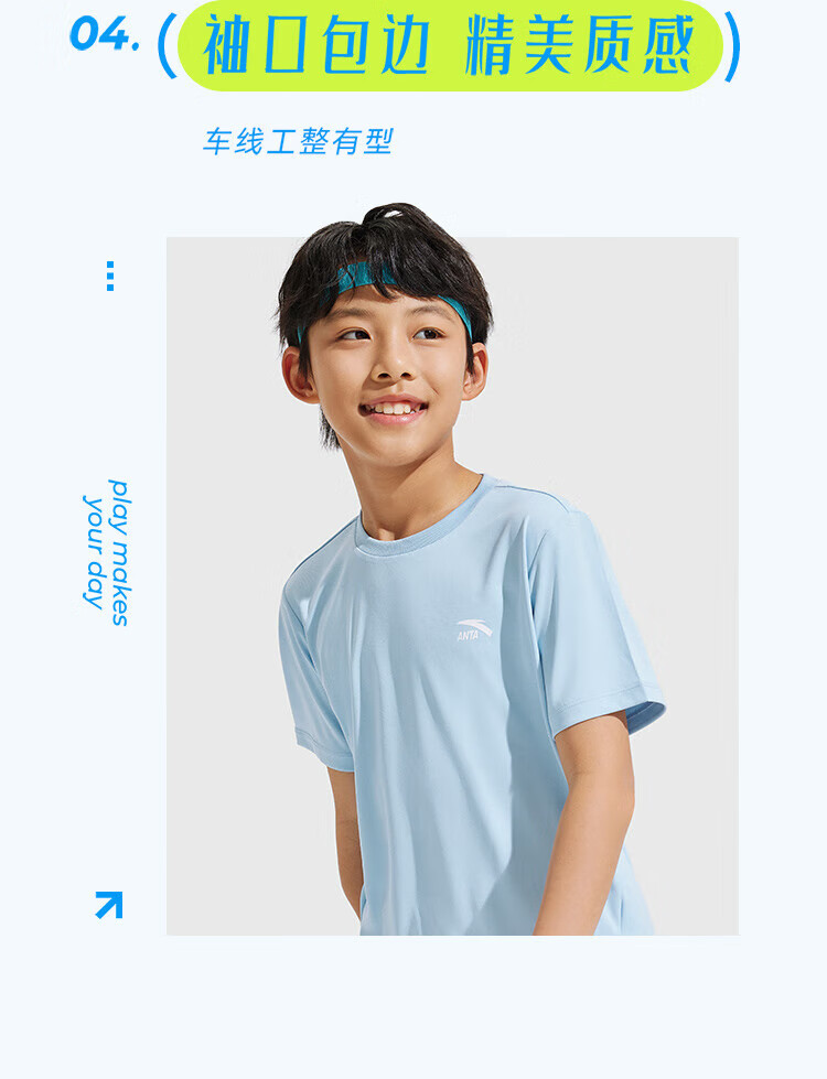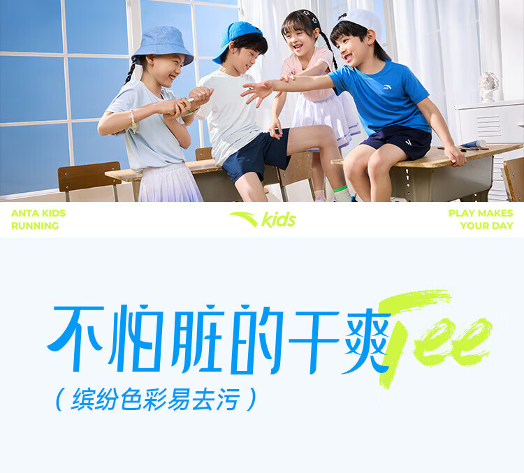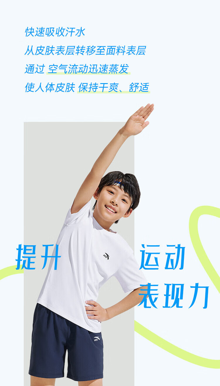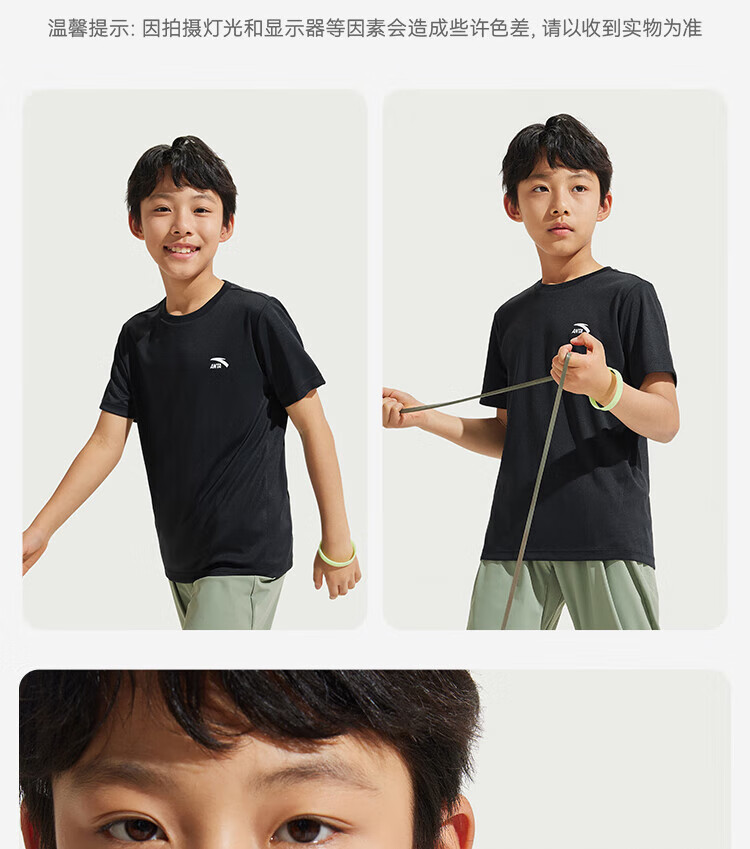 Anta children's T-shirts for boys and girls 2025 summer new style quick-drying breathable comfortable cool solid color short-sleeved t pure white-1 110