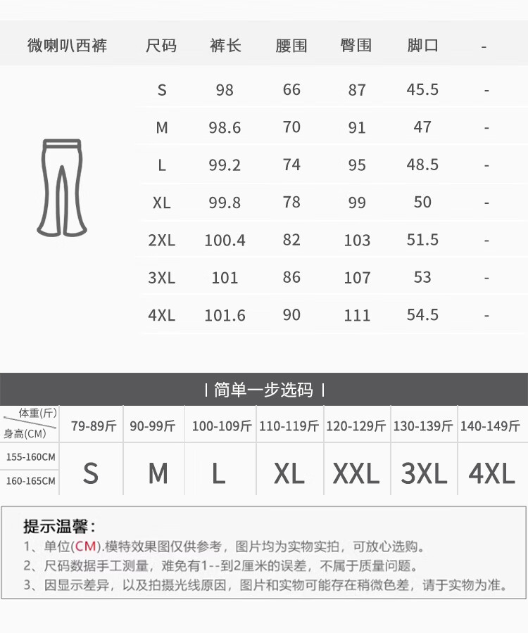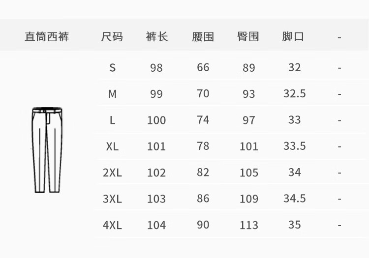 Outseam (cm) 99 cm 101.5 cm 104 cm 106.5 cm 109 cm