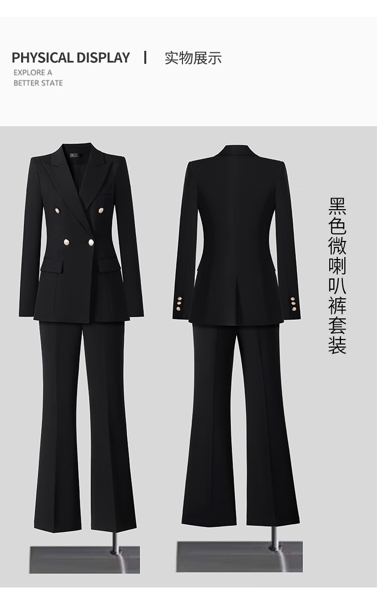 Business suit suit for women 2025 new high-end workplace interview formal wear women's suit jacket work clothes black jacket + micro-flared pants L