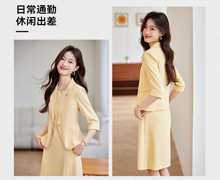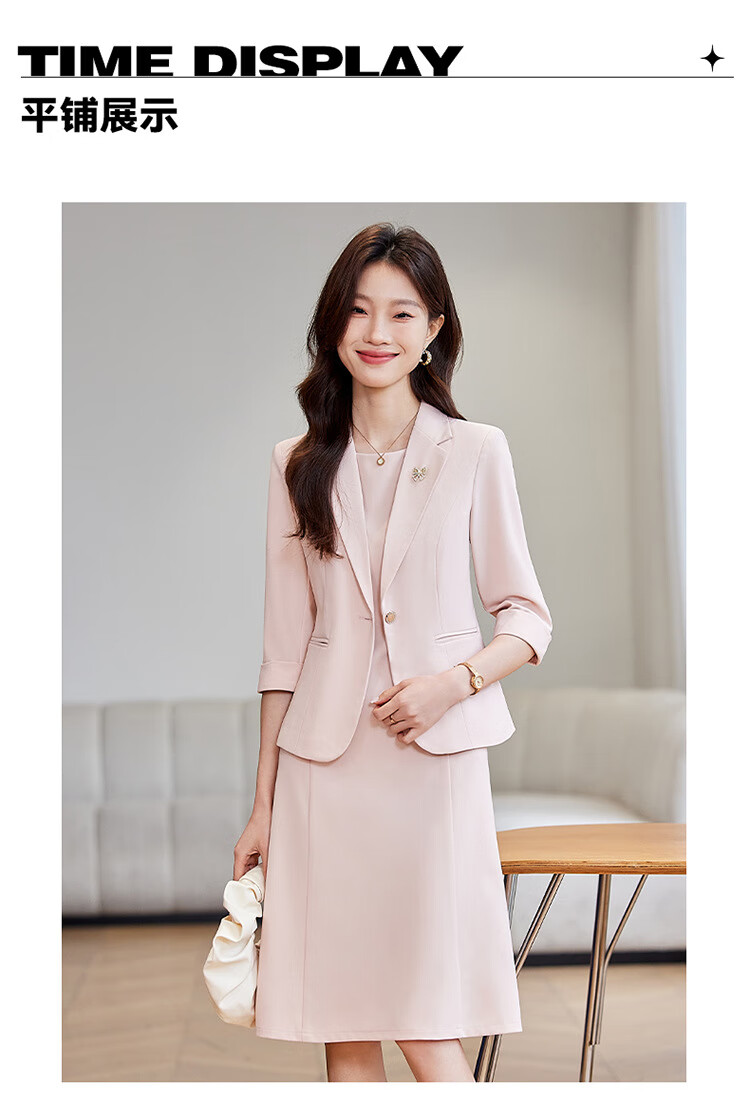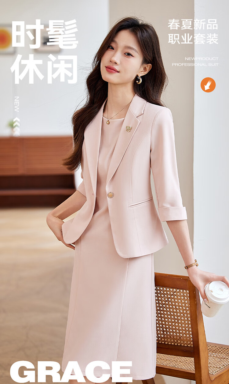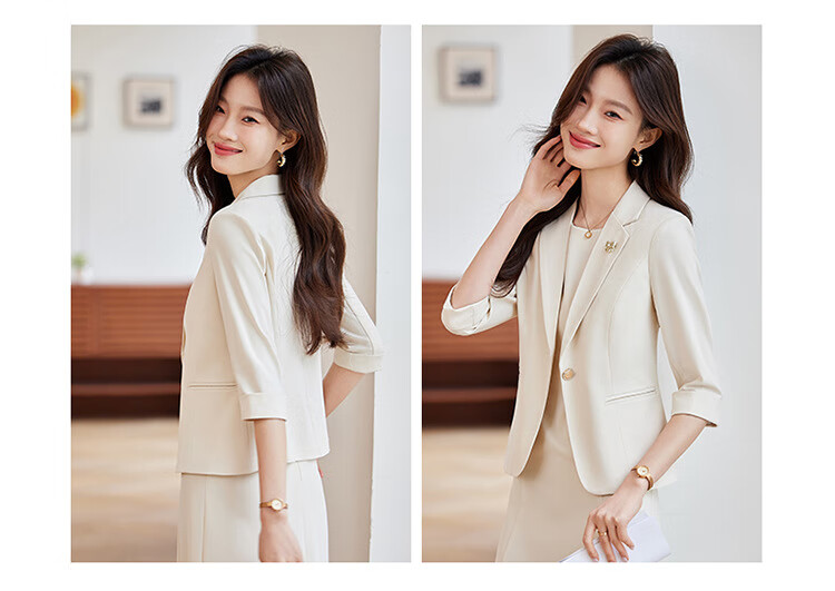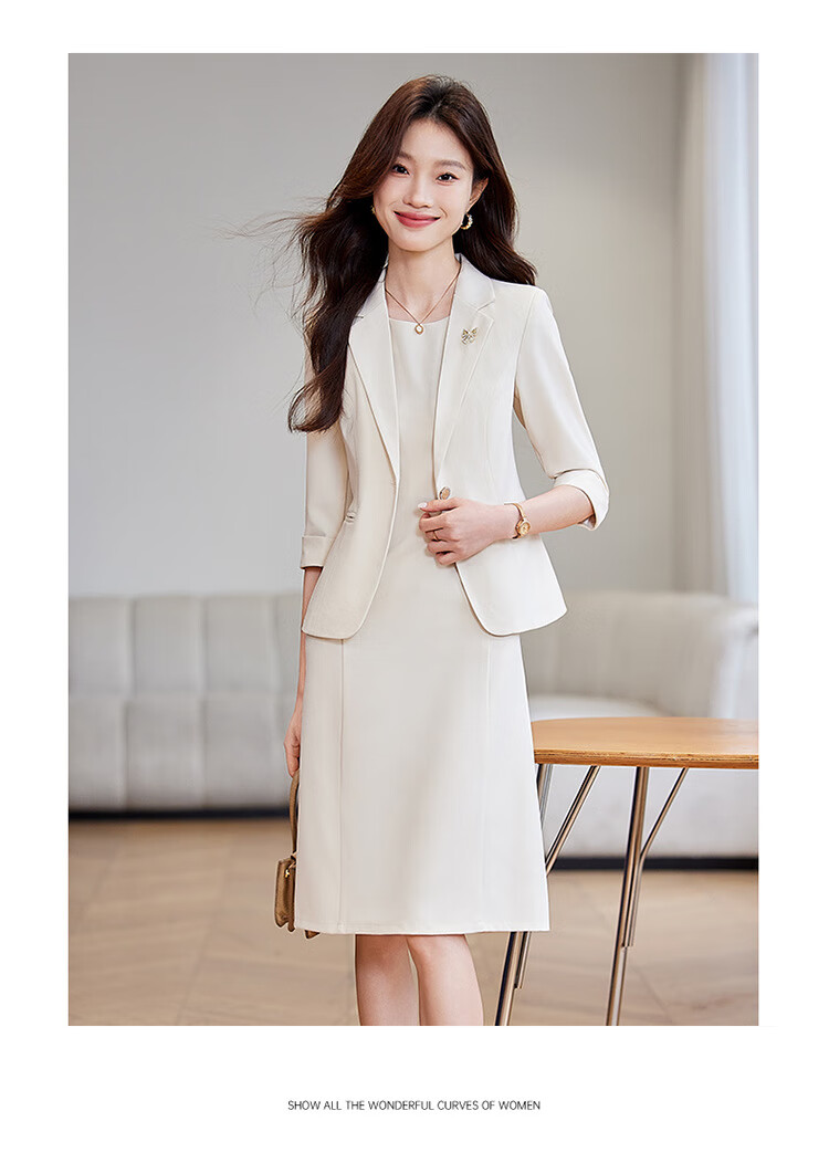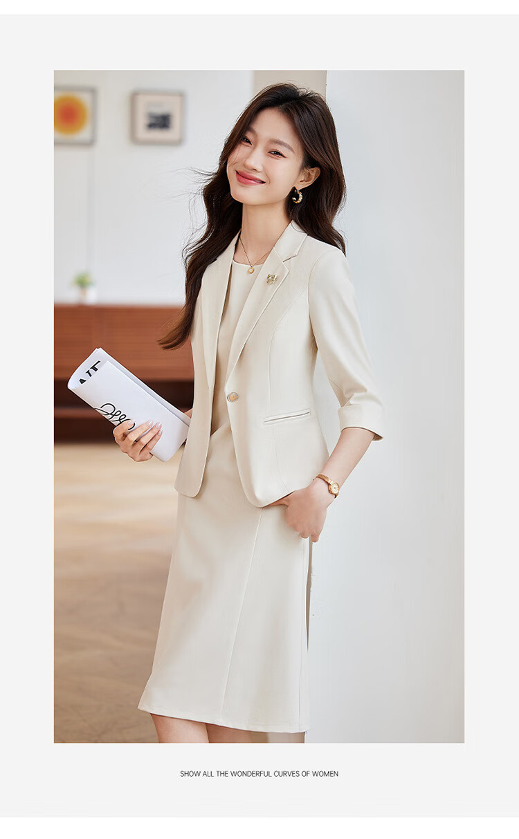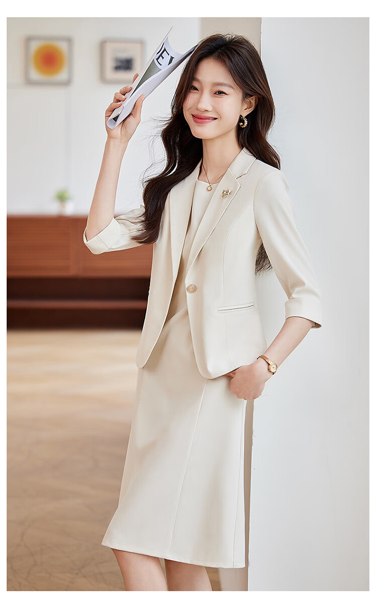 Mid-sleeve suit jacket for women spring and summer 2026 new small high-end dress suit suit two-piece off-white three-quarter sleeve suit + dress XL