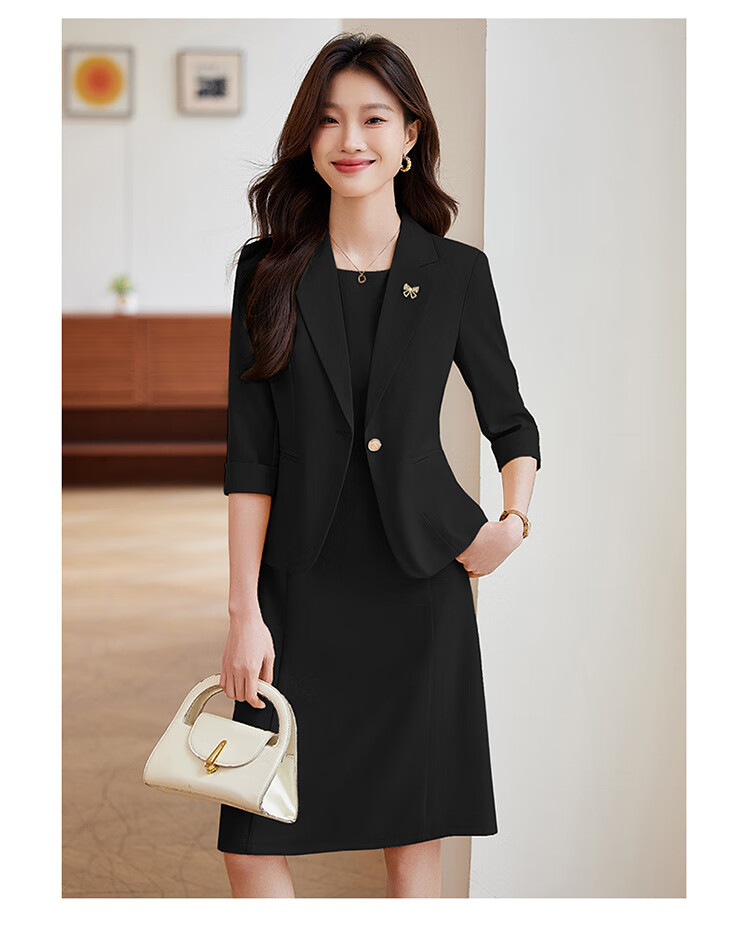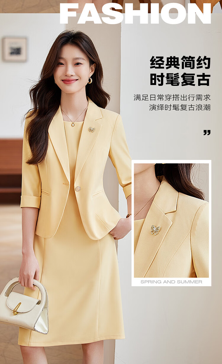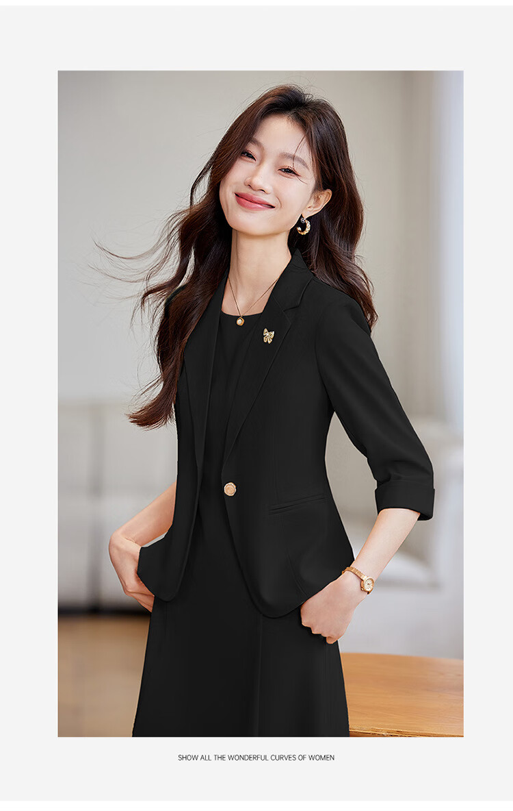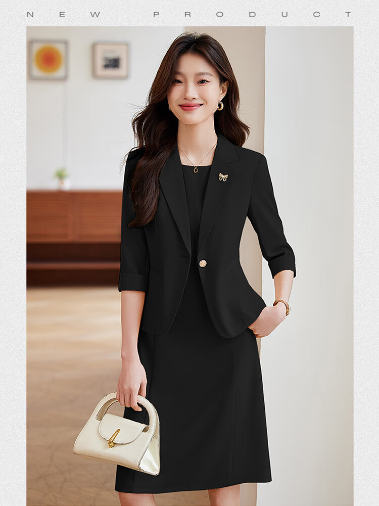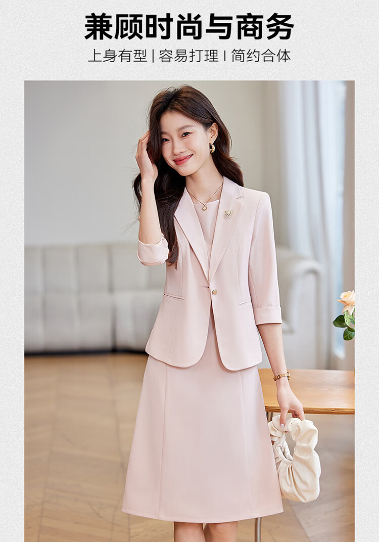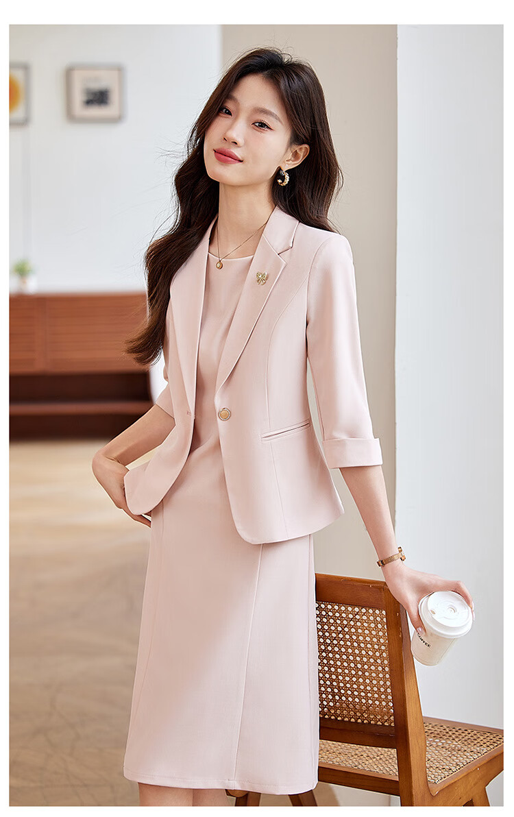 Mid-sleeve suit jacket for women spring and summer 2026 new small high-end dress suit suit two-piece off-white three-quarter sleeve suit + dress XL