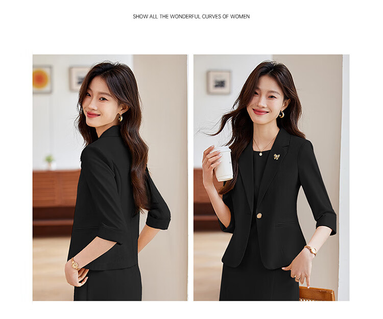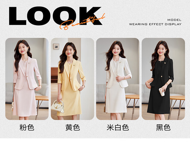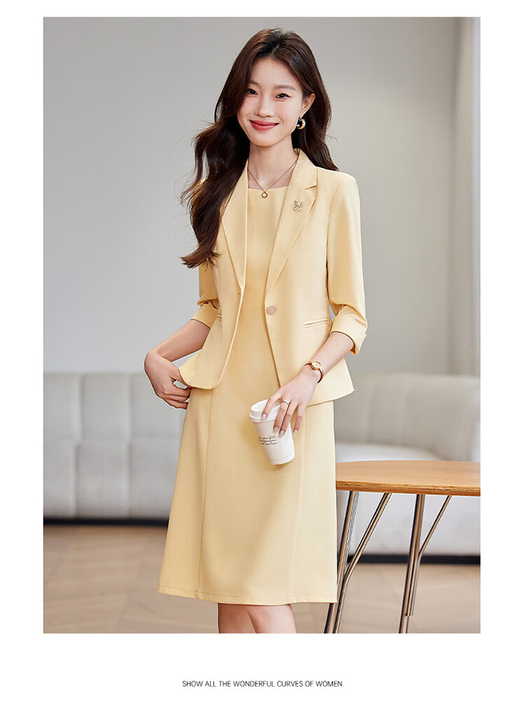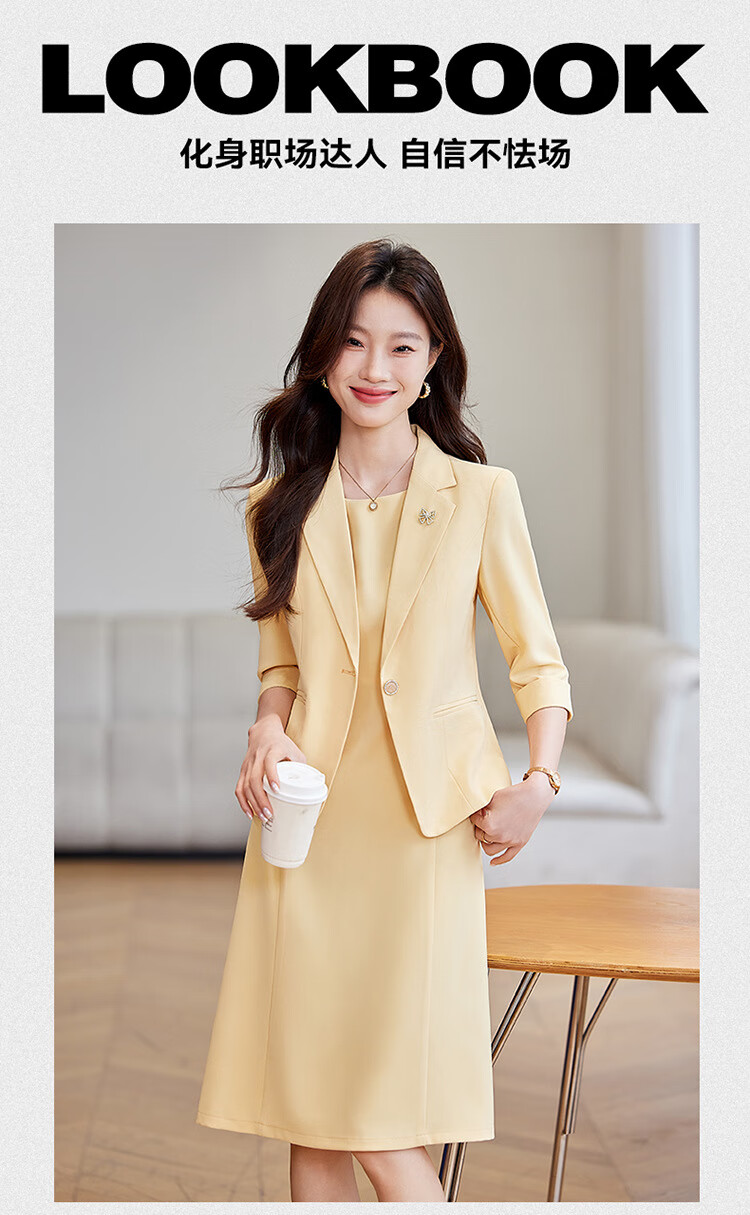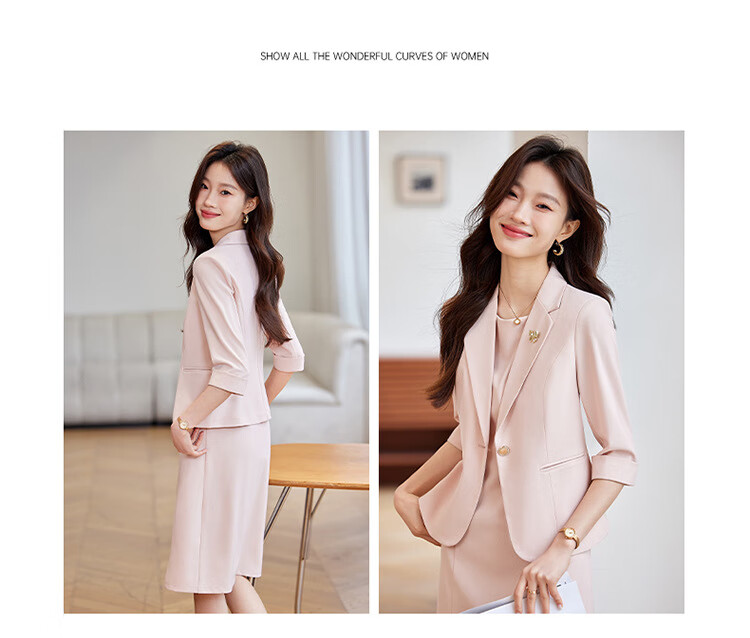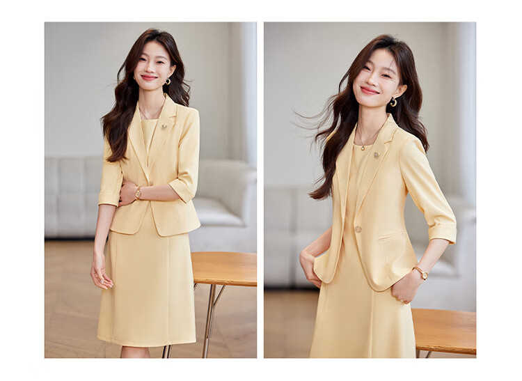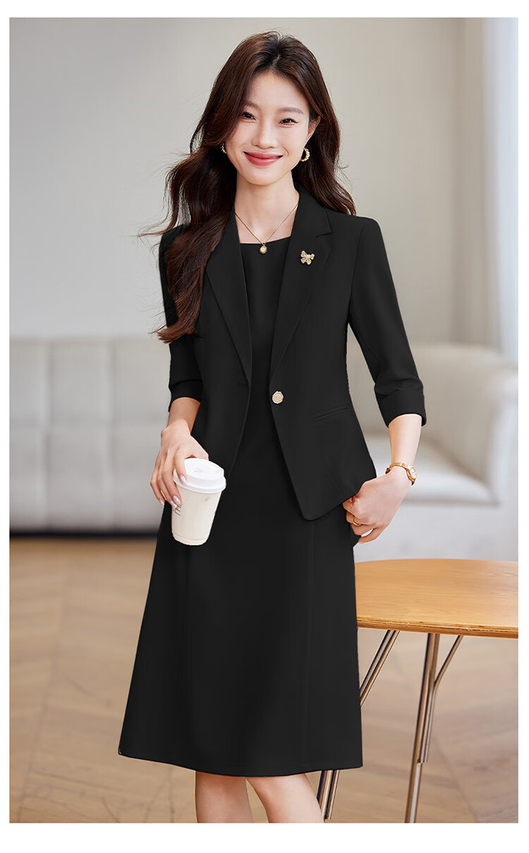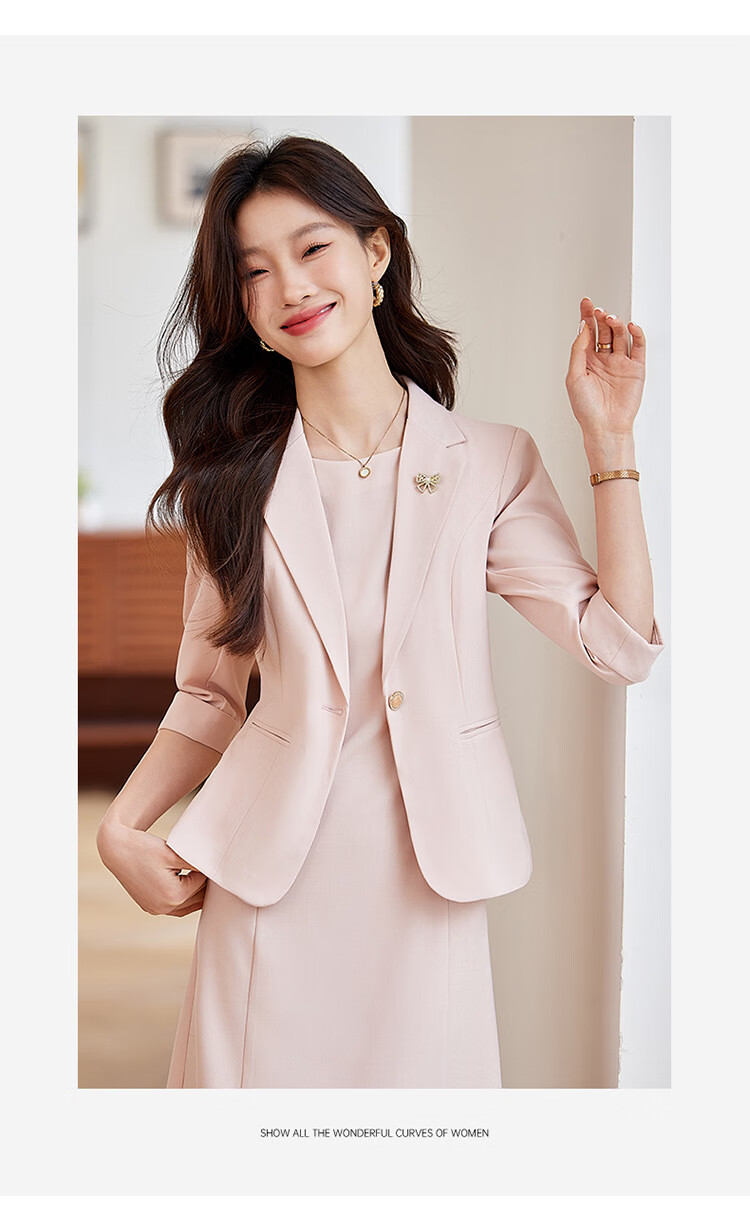 Mid-sleeve suit jacket for women spring and summer 2026 new small high-end dress suit suit two-piece off-white three-quarter sleeve suit + dress XL