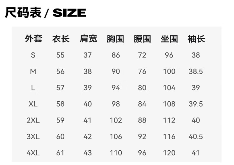 China (cm) 160-165/84-86 165-170 / 88-90 167-172 / 92-96 168-173 / 98-102 170-176 / 106-110