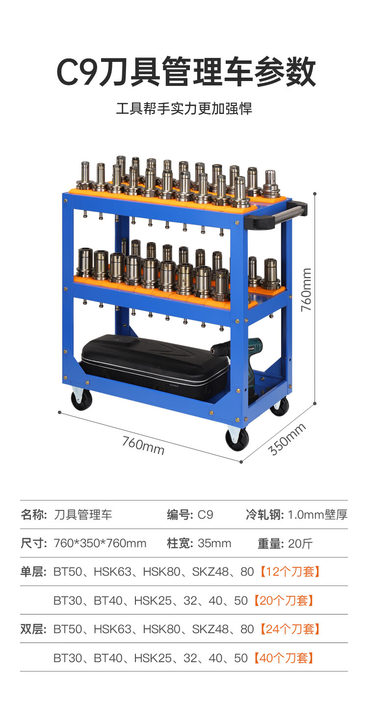 FHJQBcnc tool car CNC tool storage management workshop multi-function trolley machining center bt40 tool handle holder C6-inclined sleeve BT30 upgraded thickening free storage