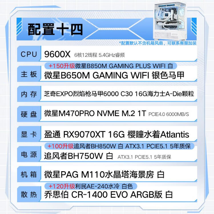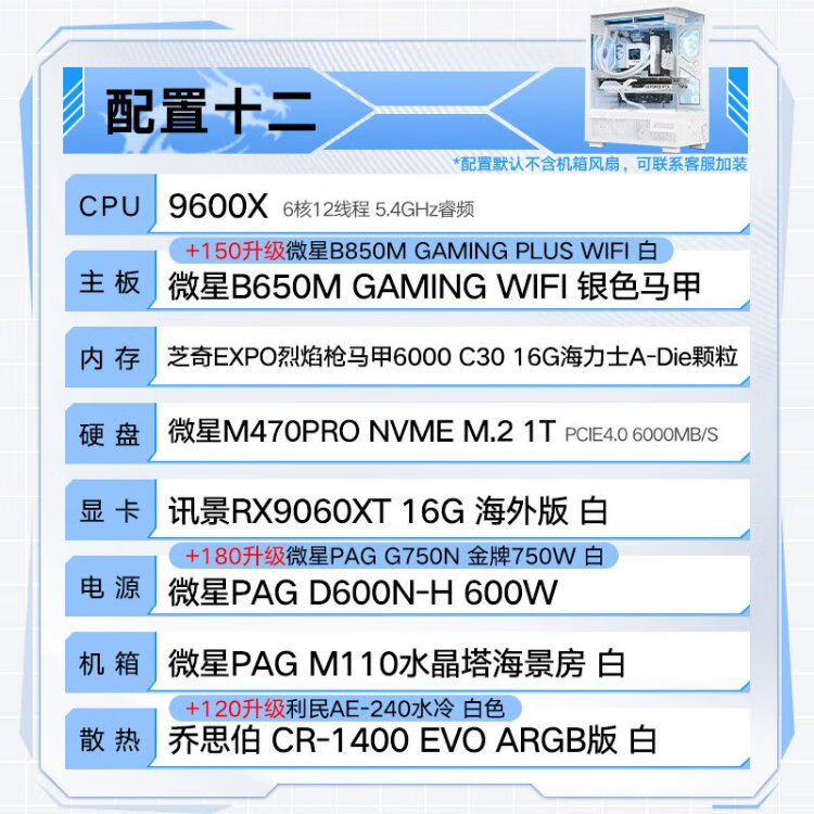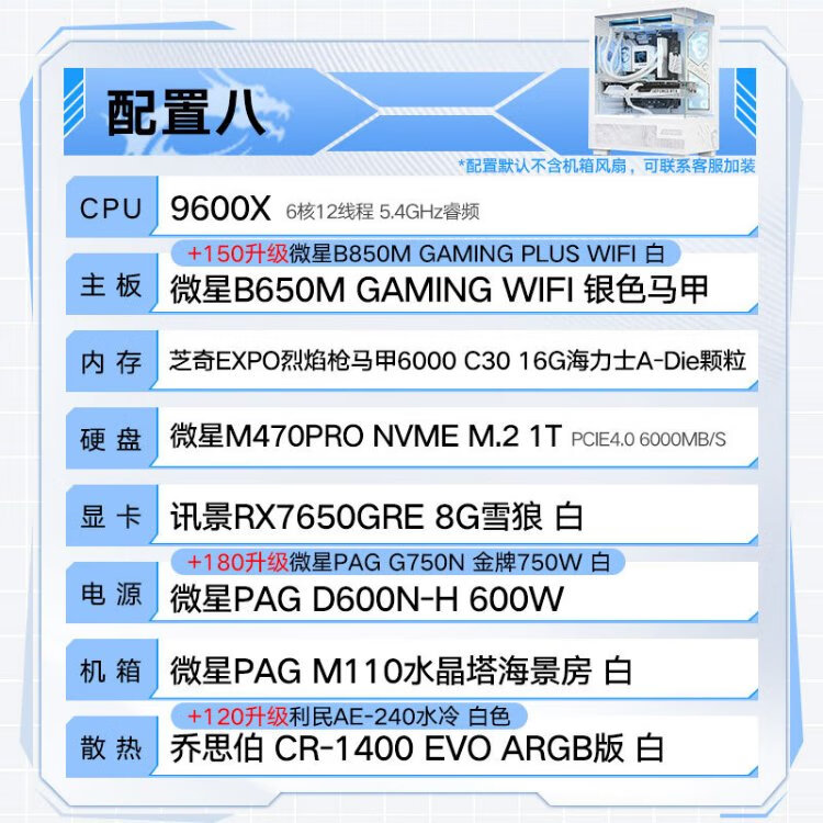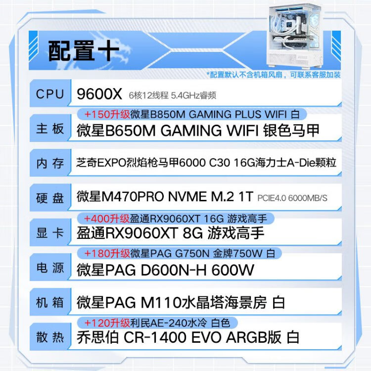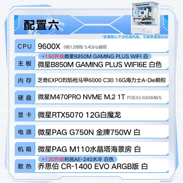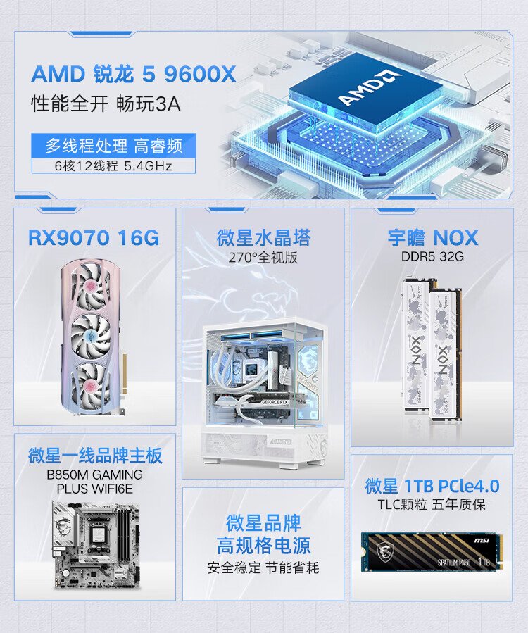 MSI Family Bucket AMD Ryzen 9600X/5060/5070 Game Console Computer Desktop Assembly Computer Host DIY Complete Machine White Sea View Room Assembly Machine Configuration Four 9600X+RTX5060 8G Wantushi White