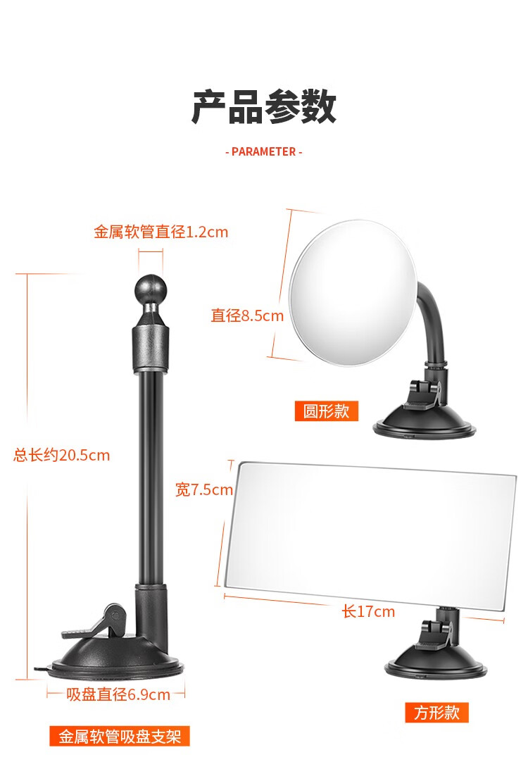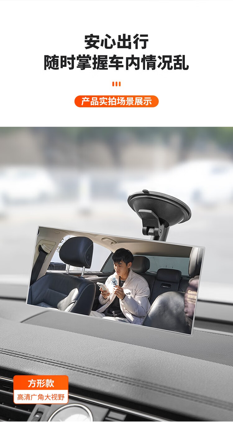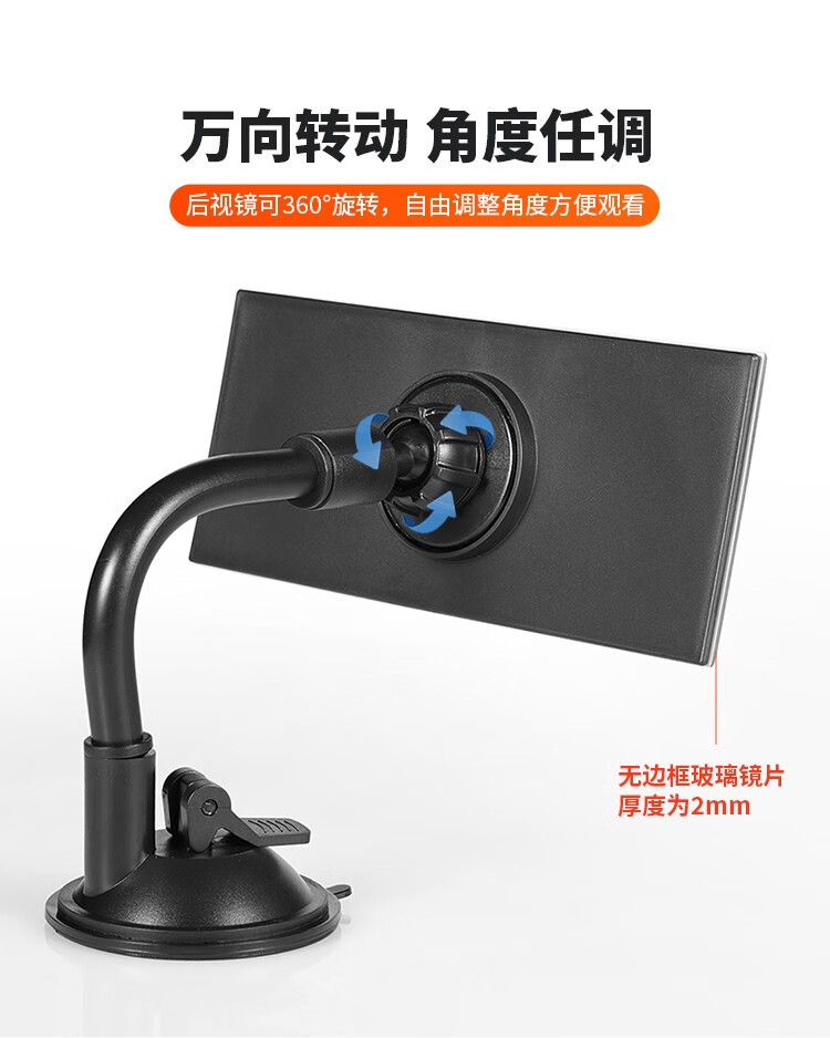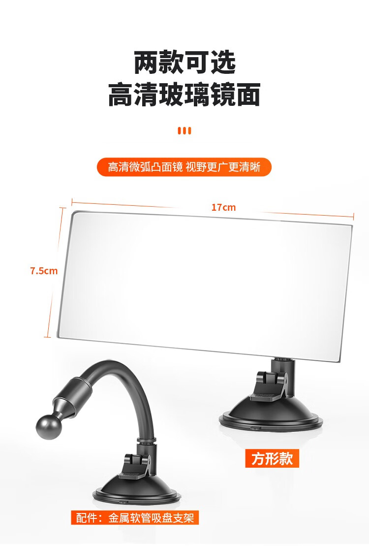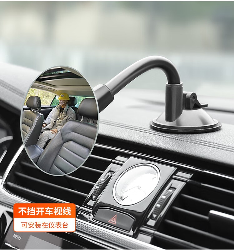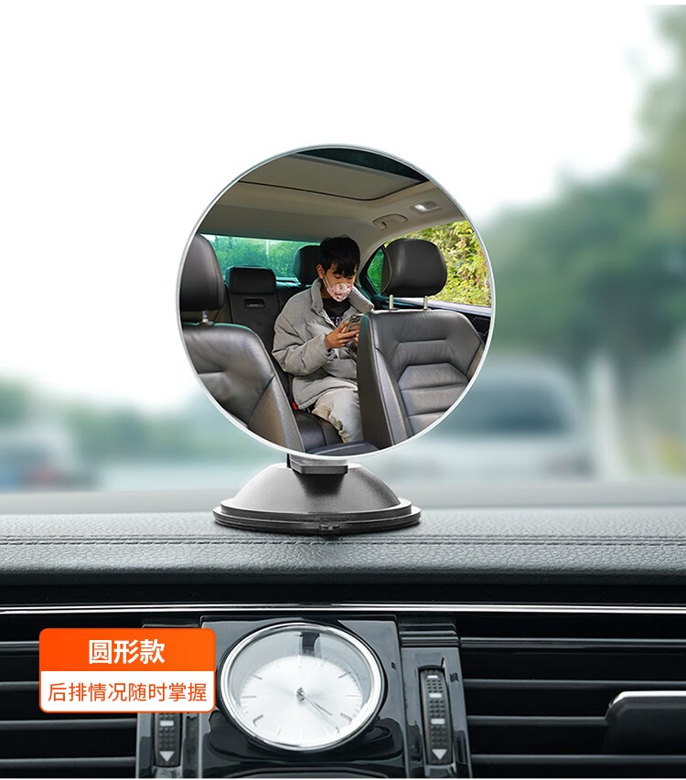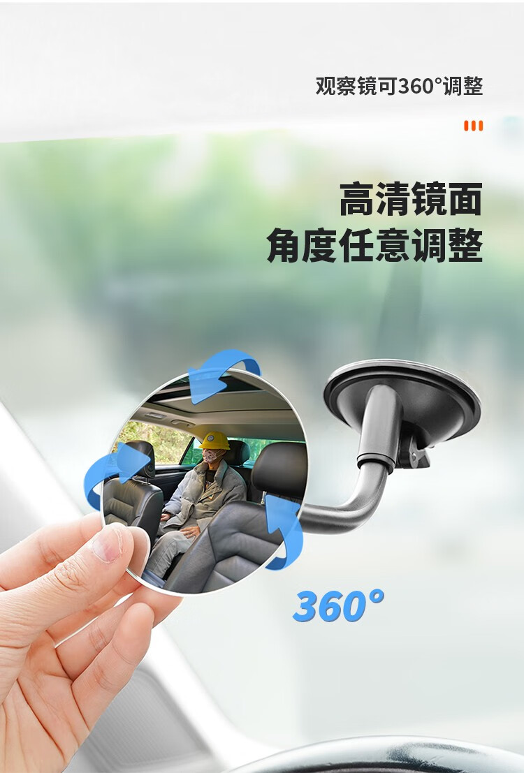 Tough interior suction cup rearview mirror, large field of view car rearview mirror, convex wide-angle blind spot auxiliary mirror, baby observation mirror, suction cup type round mirror with hose holder