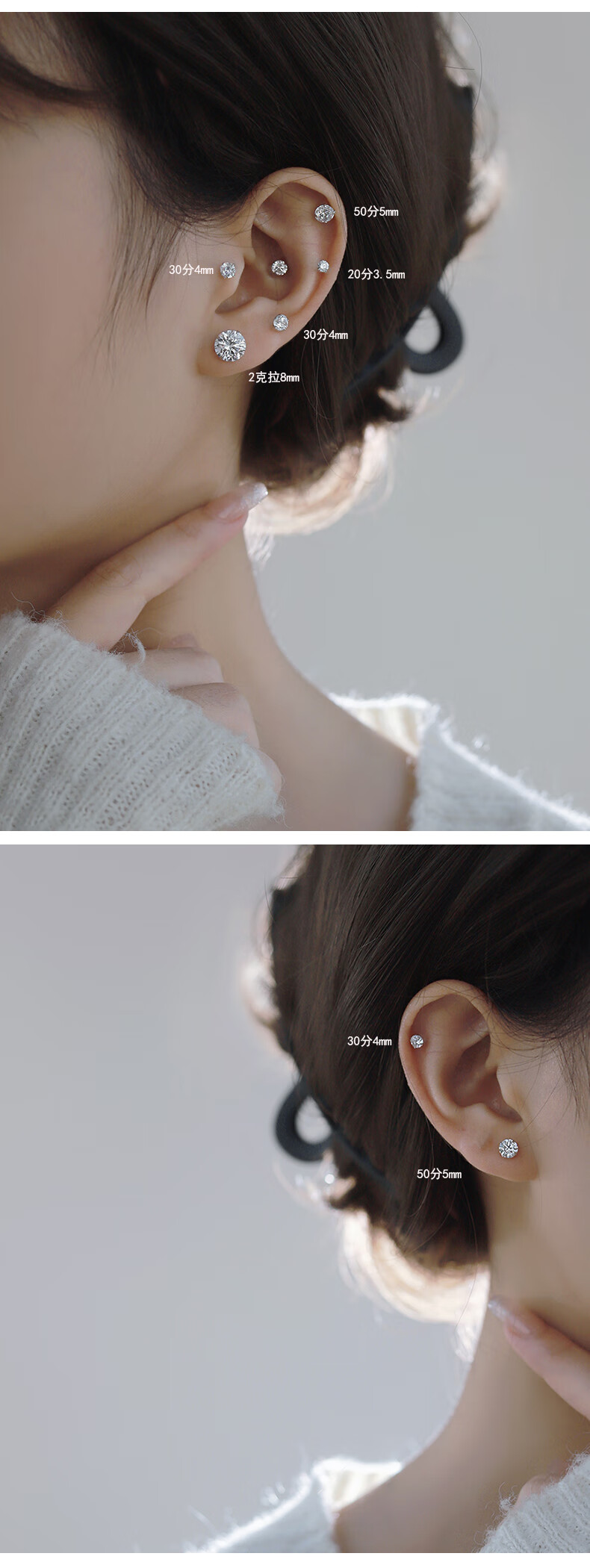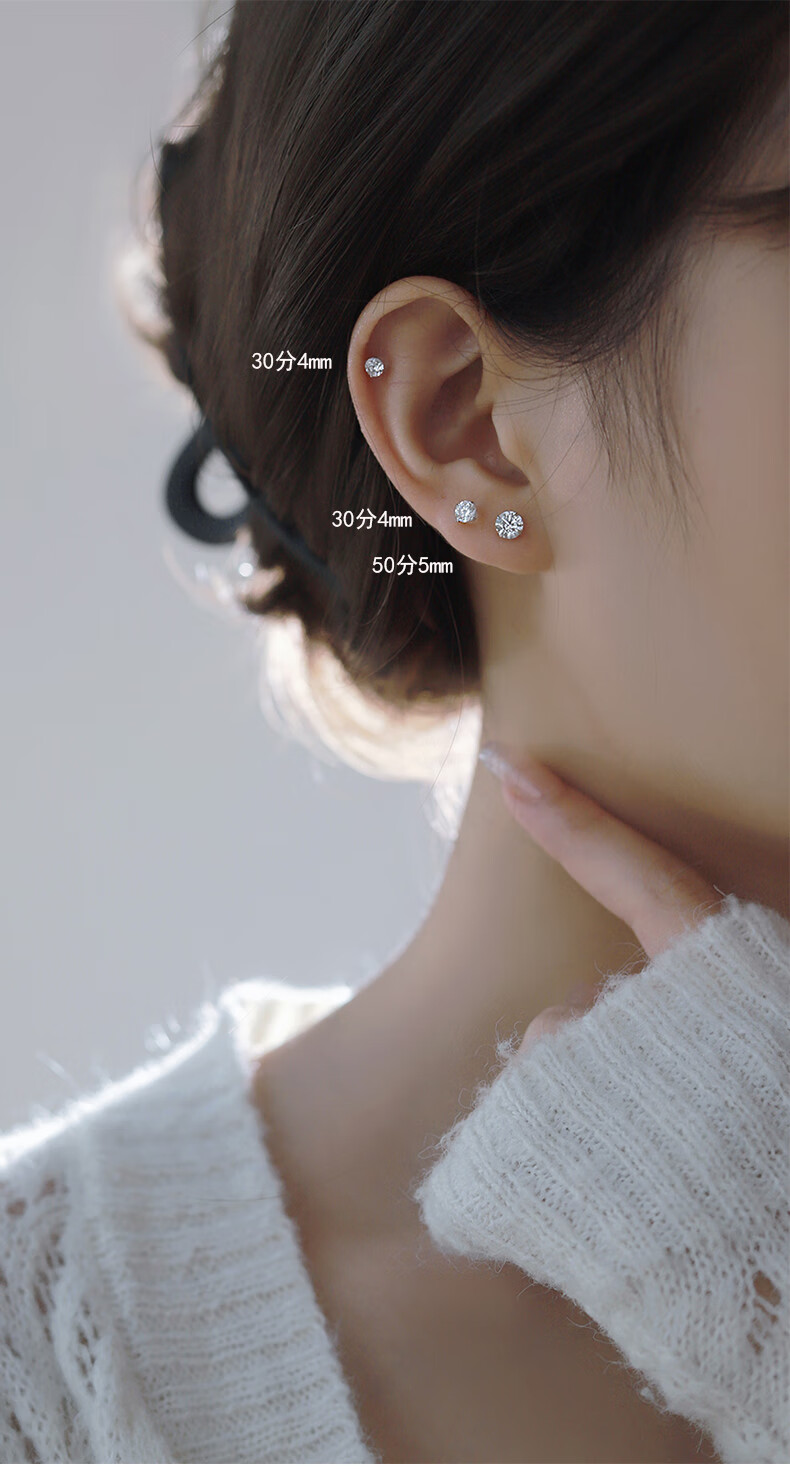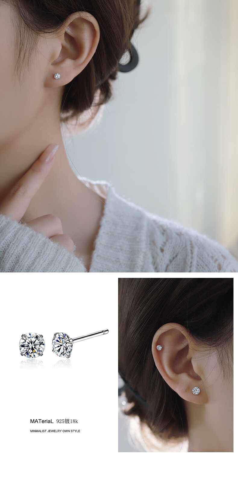 Nilan Fat Donglai's same style pt950 platinum earrings, moissanite diamond men's and women's earrings, ear bone screw-buckle feel, four claws 10 minutes 3mm (single) (butterfly buckle earplugs)