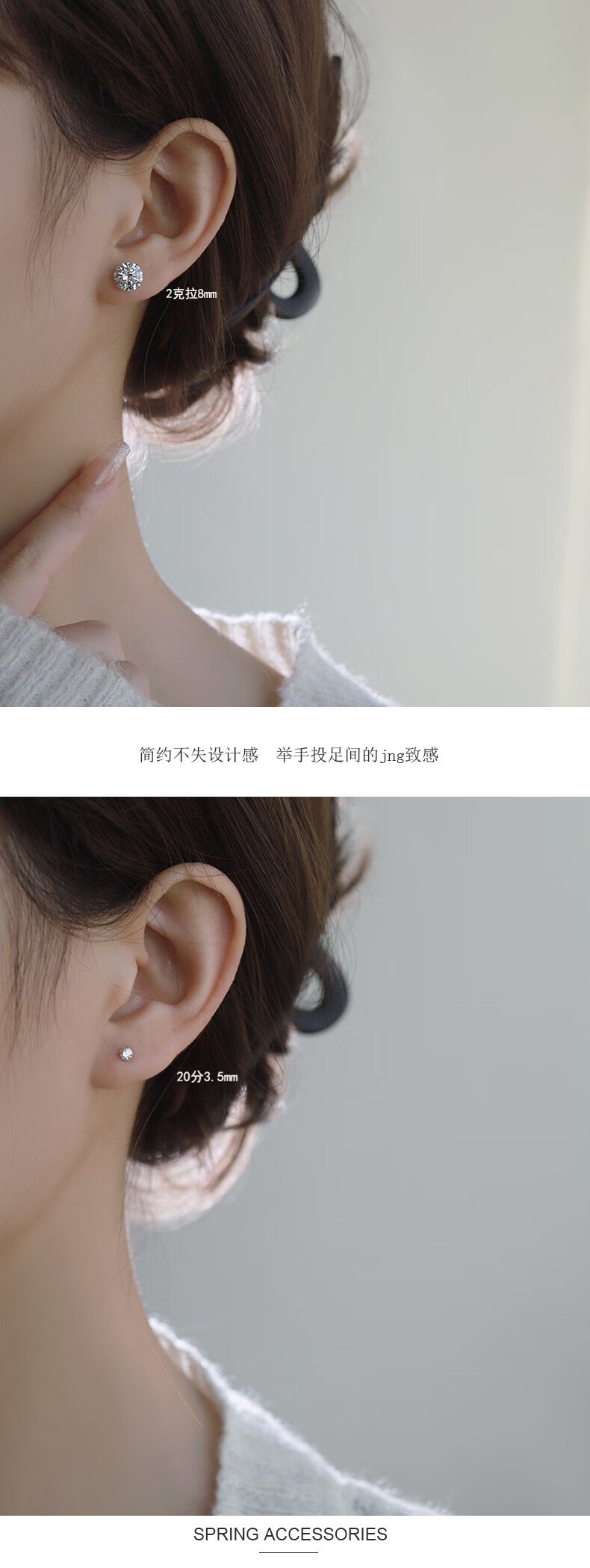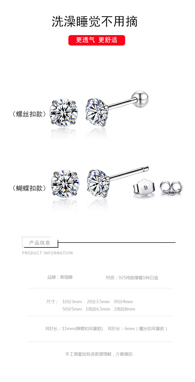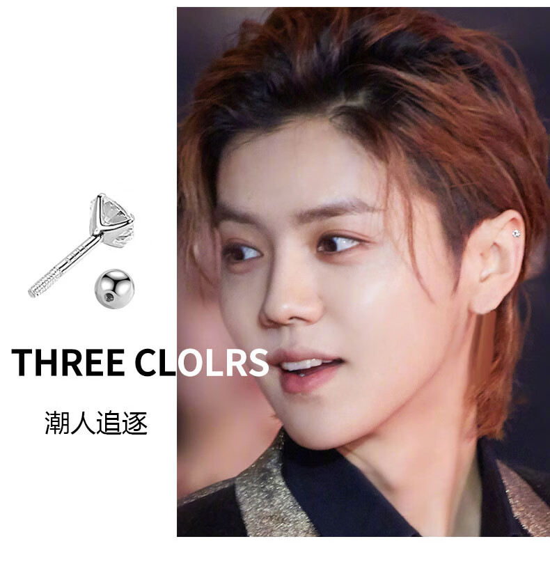 Nilan Fat Donglai's same style pt950 platinum earrings, moissanite diamond men's and women's earrings, ear bone screw-buckle feel, four claws 10 minutes 3mm (single) (butterfly buckle earplugs)