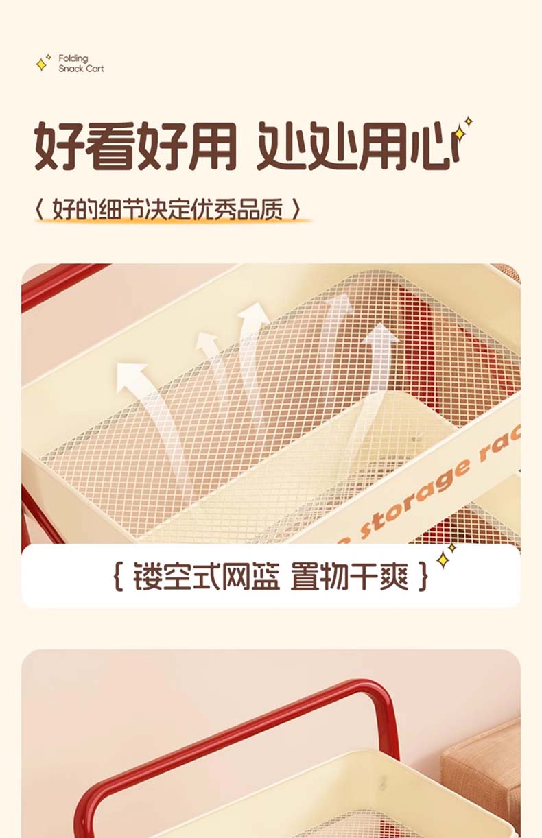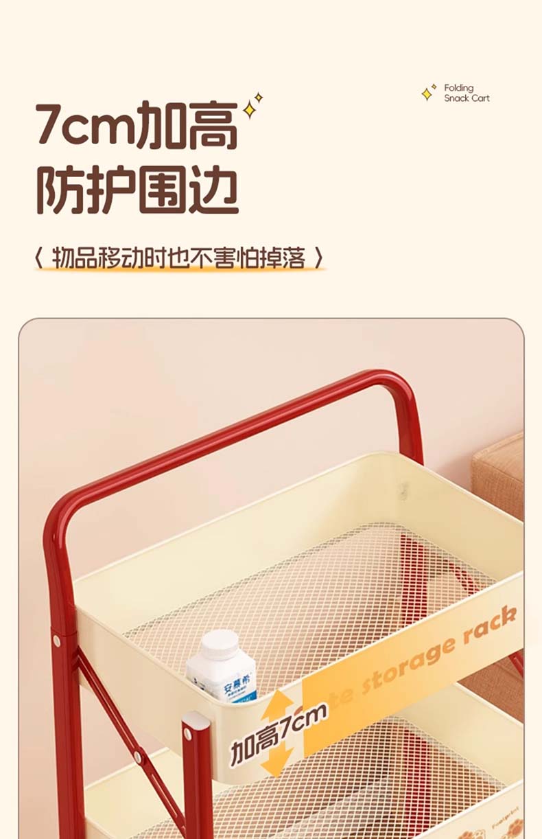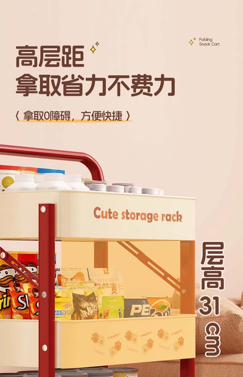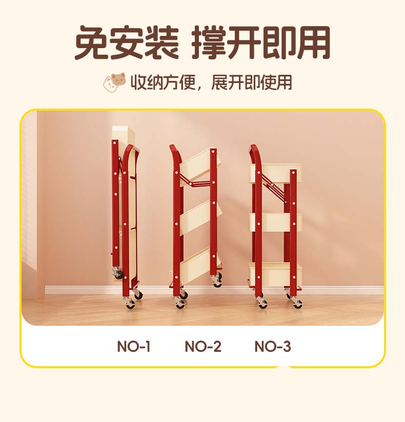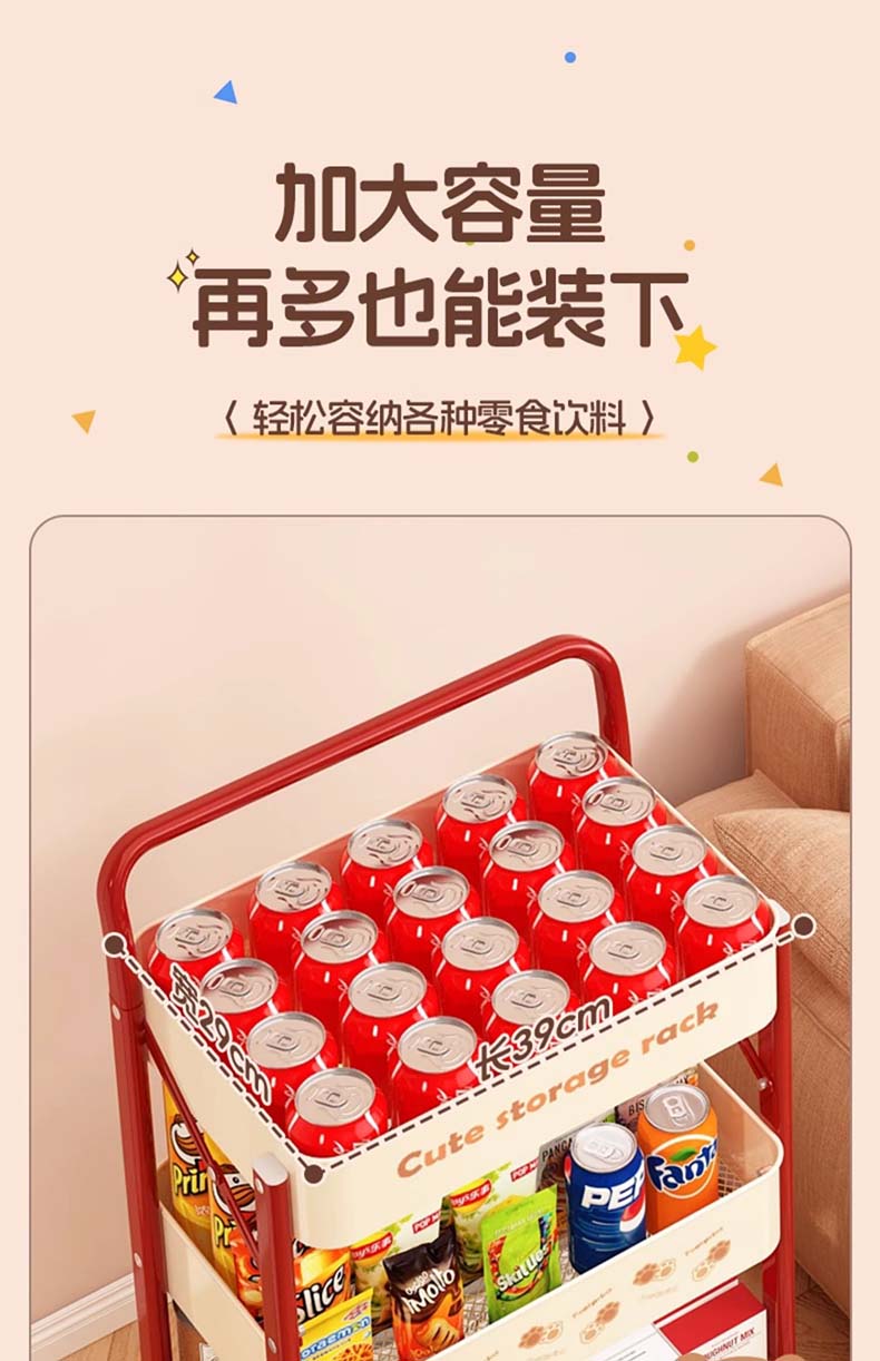 Tangneng excellent product storage rack floor-standing removable trolley storage rack free of installation household snack rack dopamine storage rack with wheels installation-free three-layer thickened carbon steel storage rack