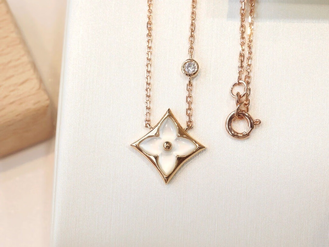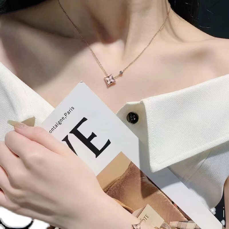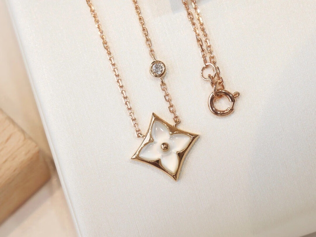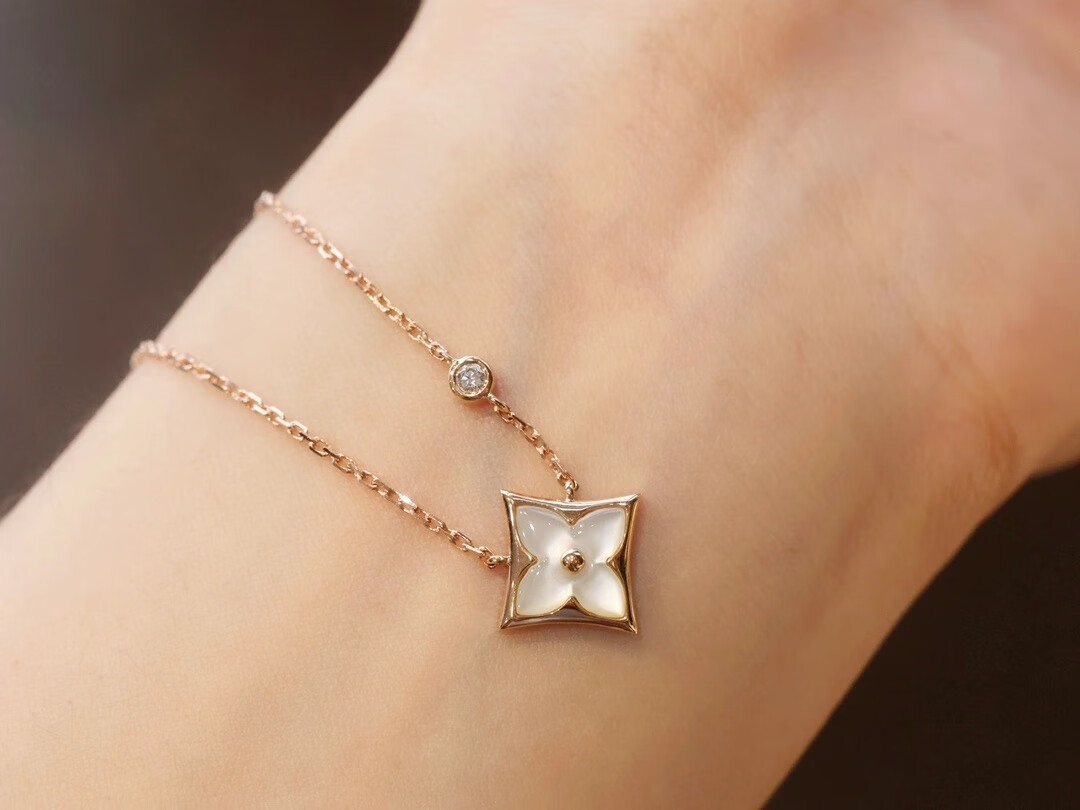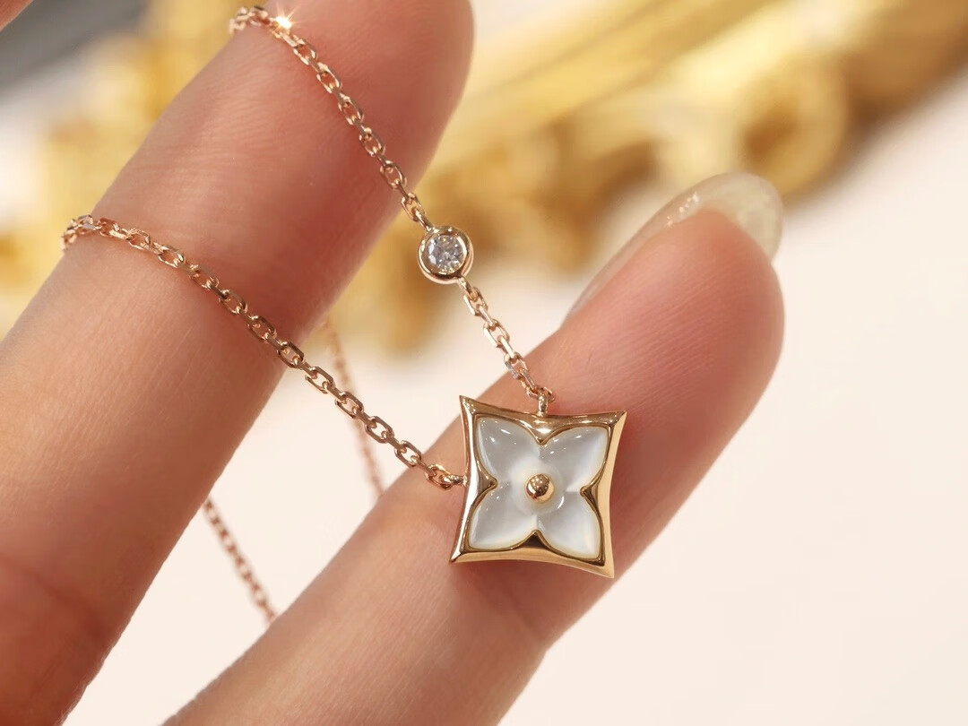 Yuansi L's 24 new style 18k rose gold four-leaf clover white mother-of-pearl necklace light luxury AU750 presbyopia diamond-encrusted women's necklace white mother-of-pearl rose gold necklace
