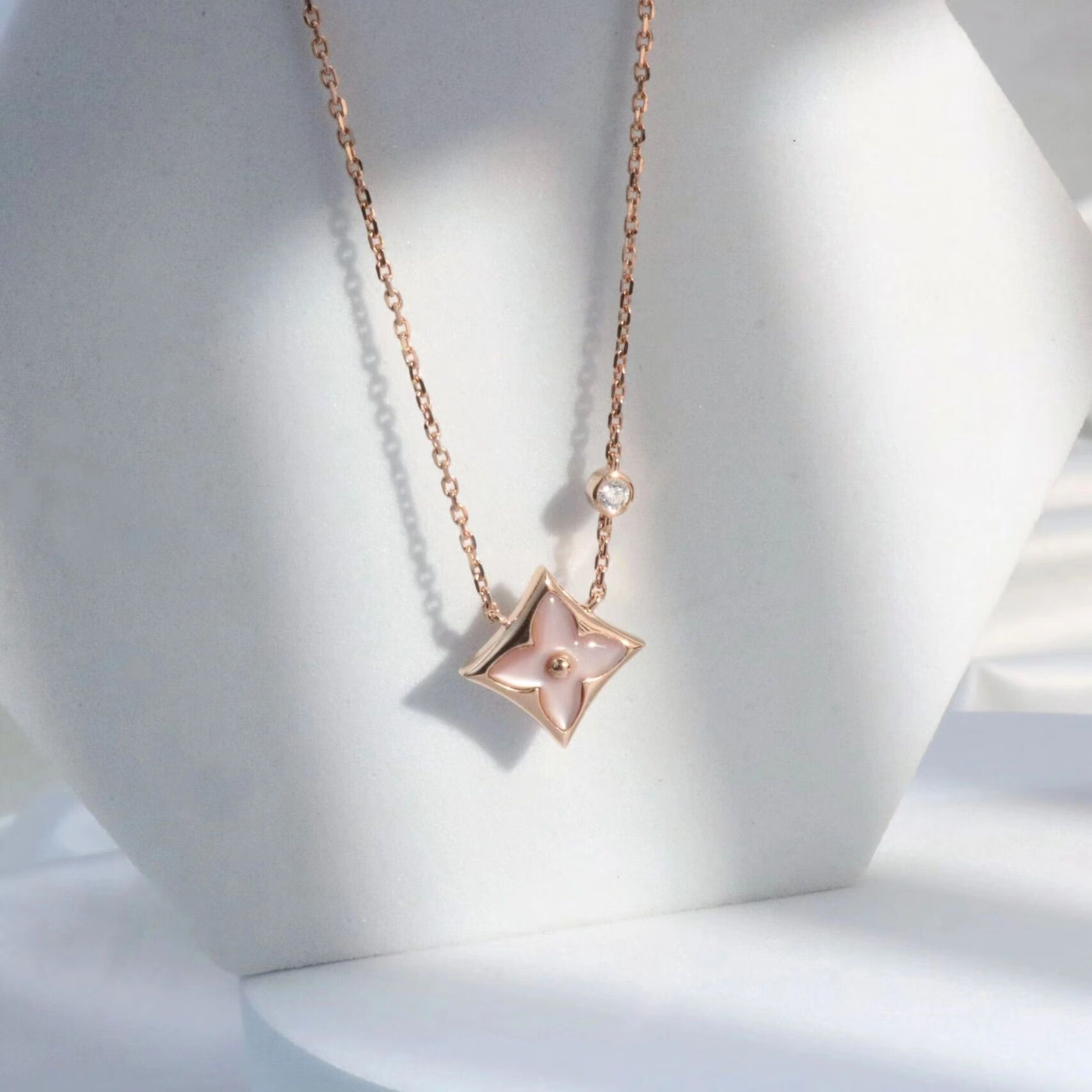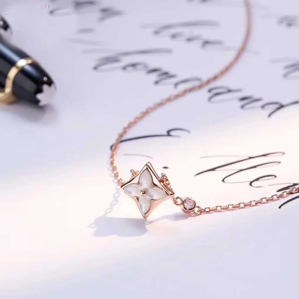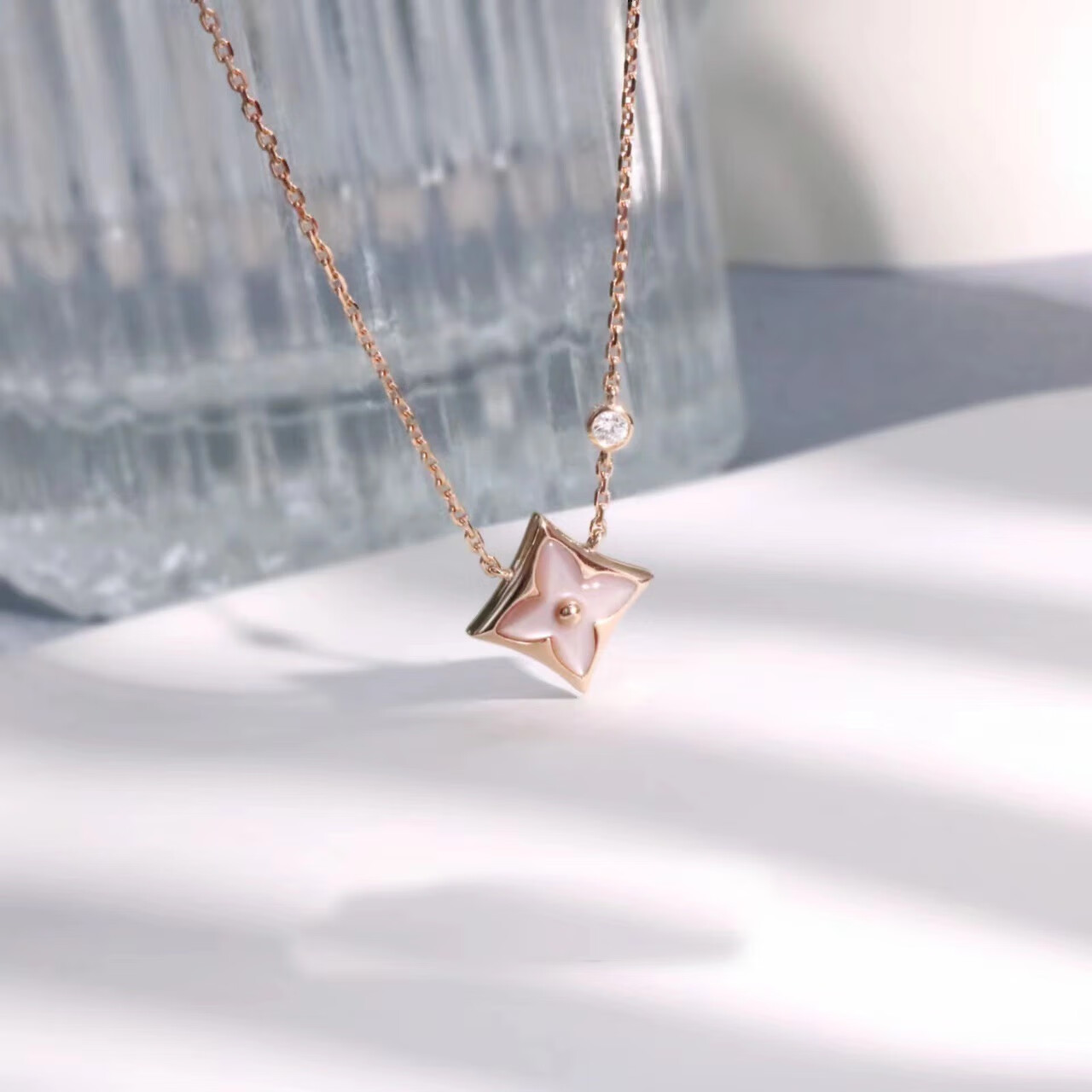 Yuansi L's 24 new style 18k rose gold four-leaf clover white mother-of-pearl necklace light luxury AU750 presbyopia diamond-encrusted women's necklace white mother-of-pearl rose gold necklace
