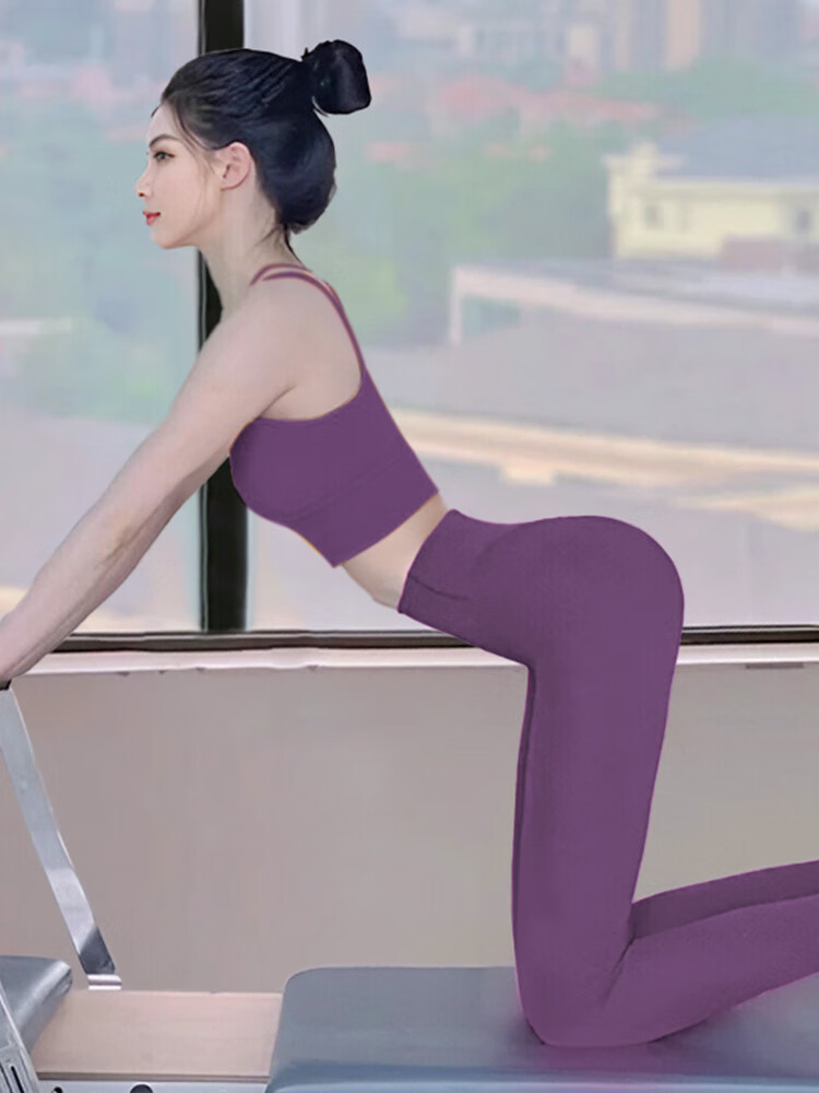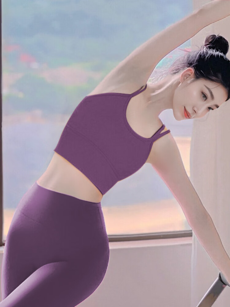 Shuangxiu high-end yoga clothing suit for women, new beautiful back all-in-one running fitness Pilates vest with chest pad, Yanwei purple suit, suit is more cost-effective S (80-100)