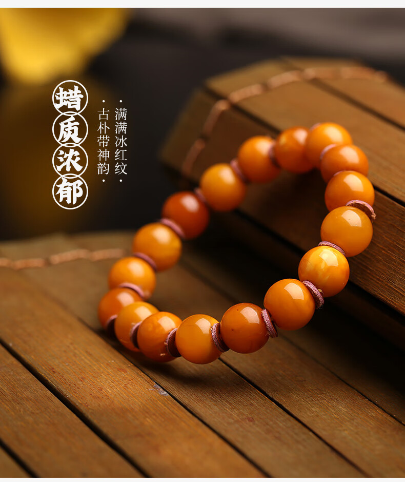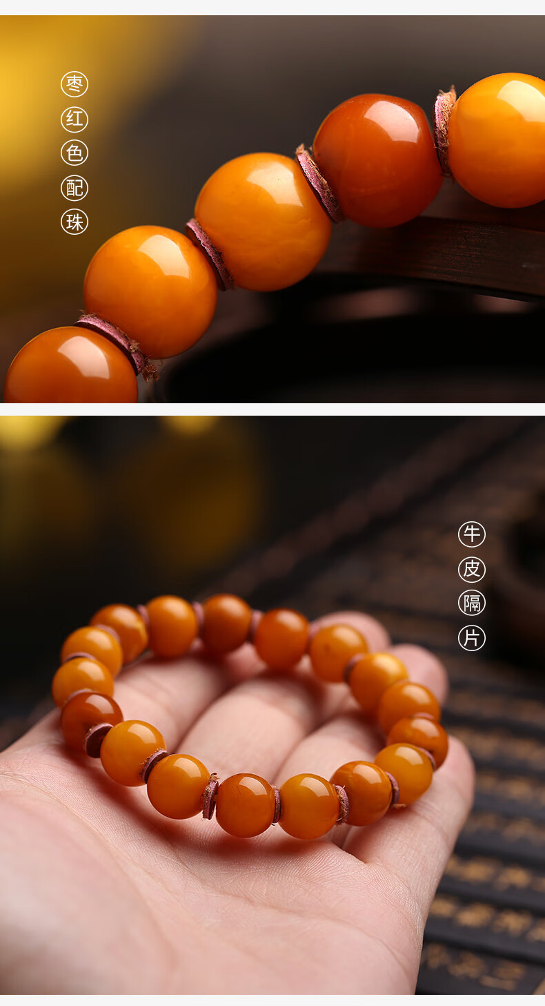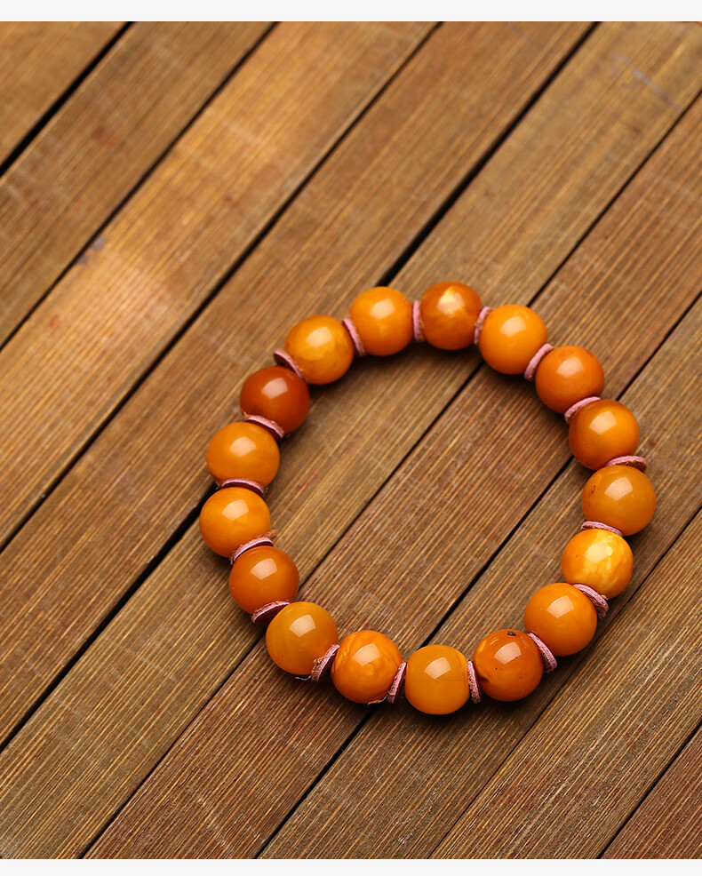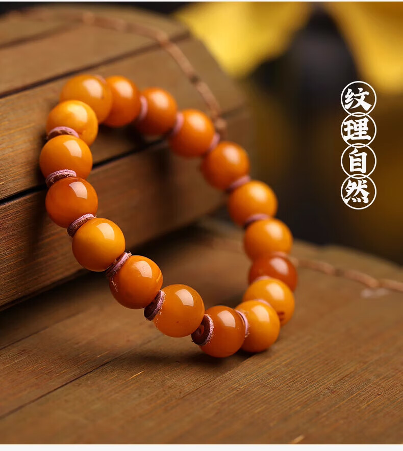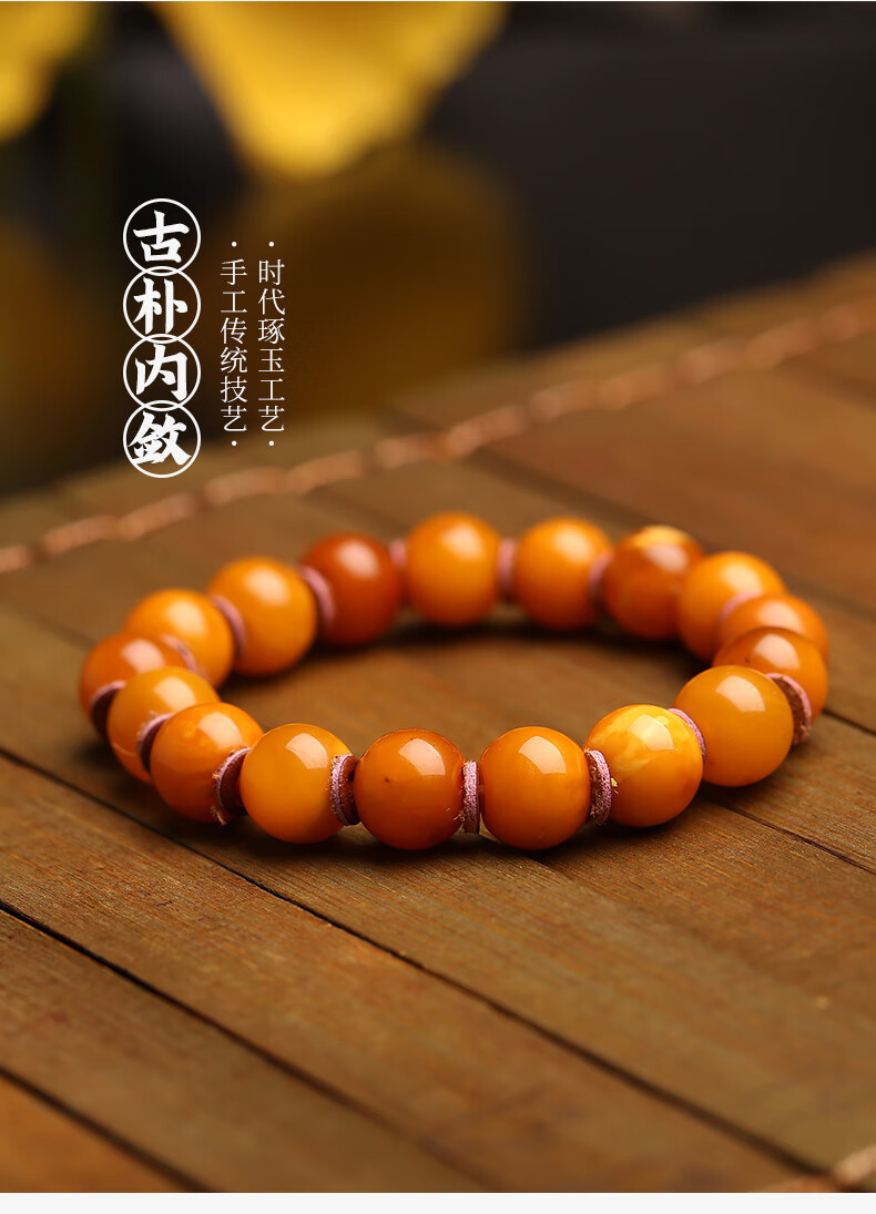 Dan Pei luxury high-end Baltic Sea honey old beeswax round bead bracelet for women amber chicken fat yellow bracelet for men 8-9mm (approximately) 7 grams