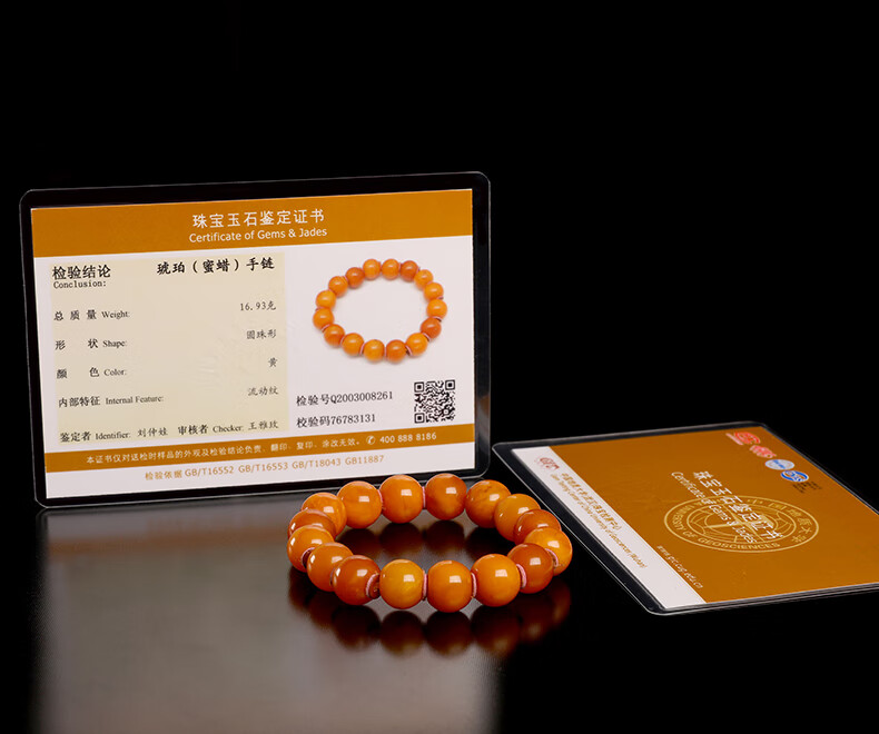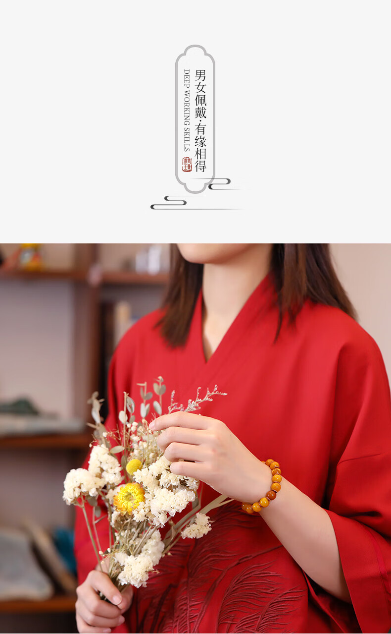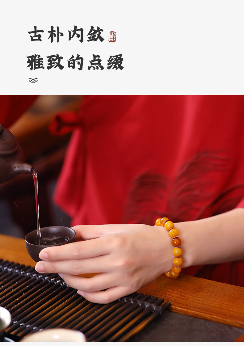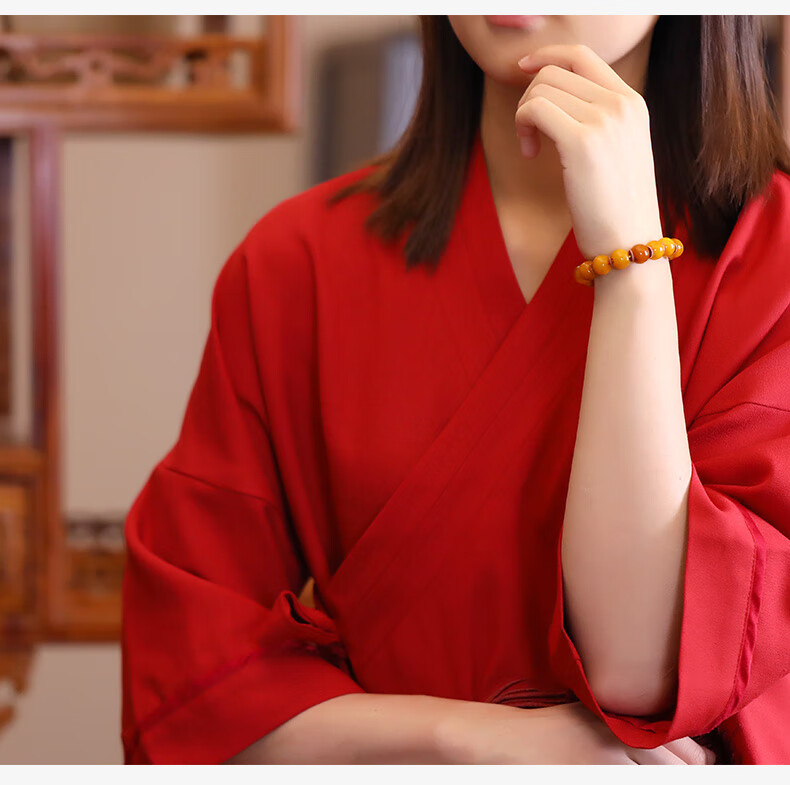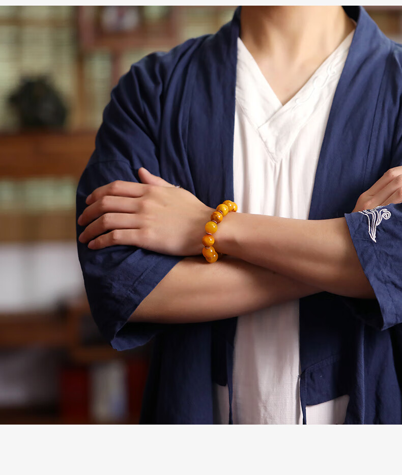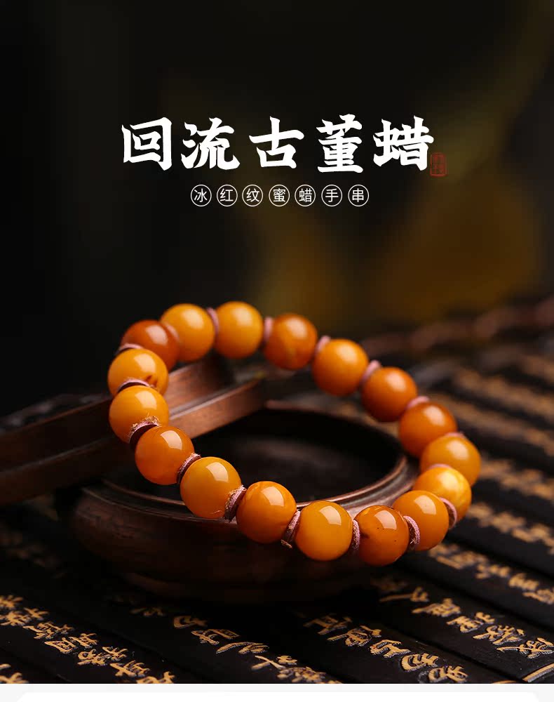 Dan Pei luxury high-end Baltic Sea honey old beeswax round bead bracelet for women amber chicken fat yellow bracelet for men 8-9mm (approximately) 7 grams
