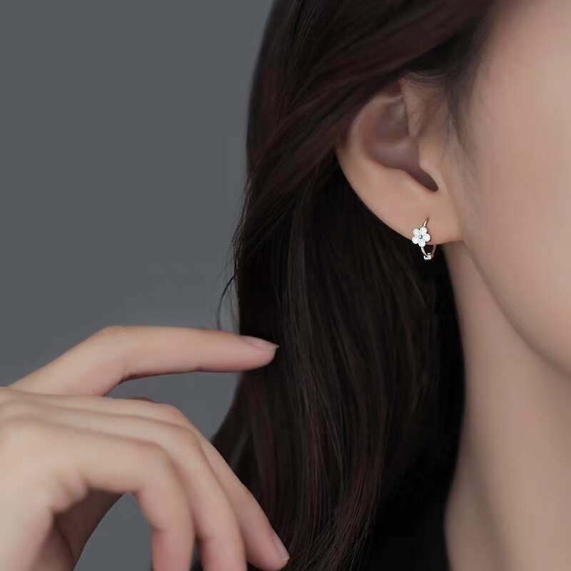 Nilan Fat Donglai same style pt950 platinum earrings for women PT9502024 summer new style temperament flower earrings as a gift for friends on Chinese Valentine's Day small white flower earrings
