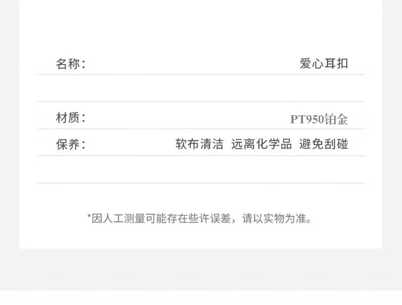 Nilan Fat Donglai same style pt950 platinum earrings for women PT950 summer love earrings 2024 new platinum earrings earrings love earrings