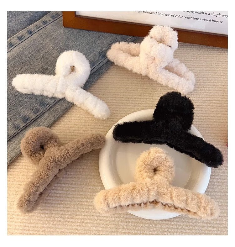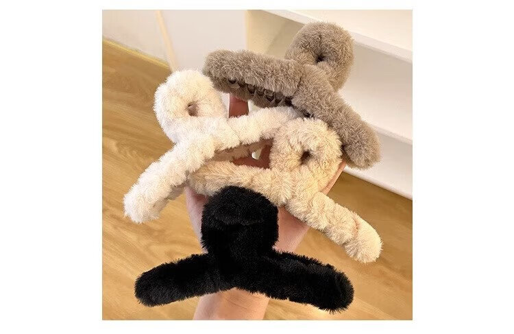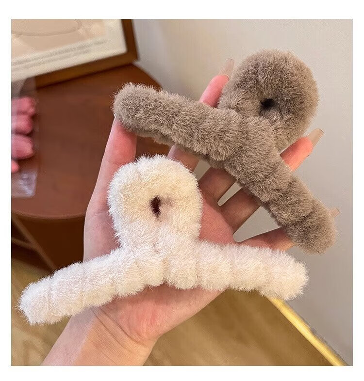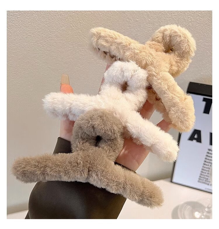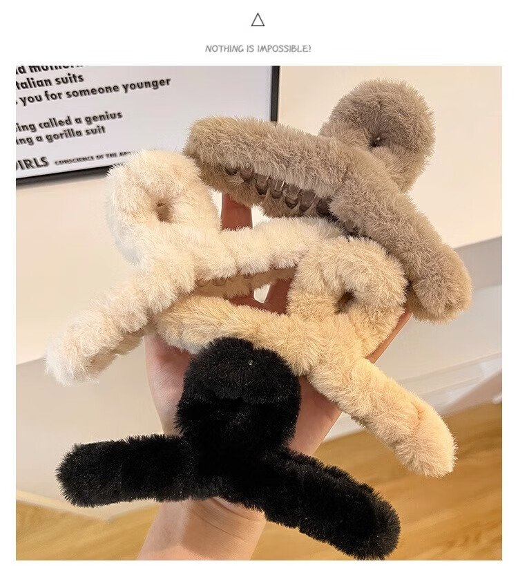 Demina Plush Grip Clip, High-end Winter Hair Clip for Girls, Sand Shark Clip on the Back of the Head, Multi-volume Hair Clip, Hair Clip, Plush Dark Coffee (11CM)