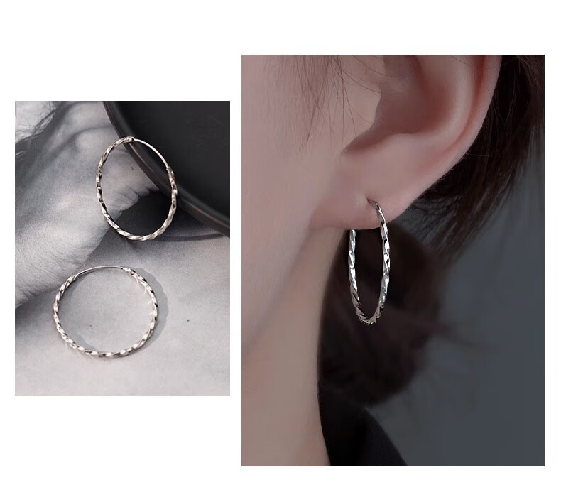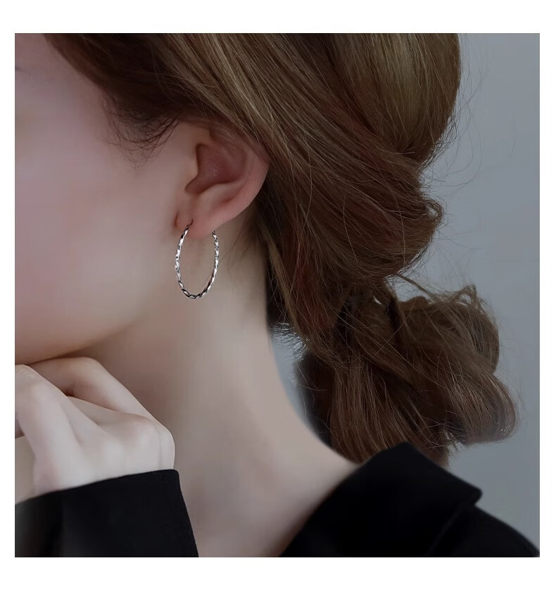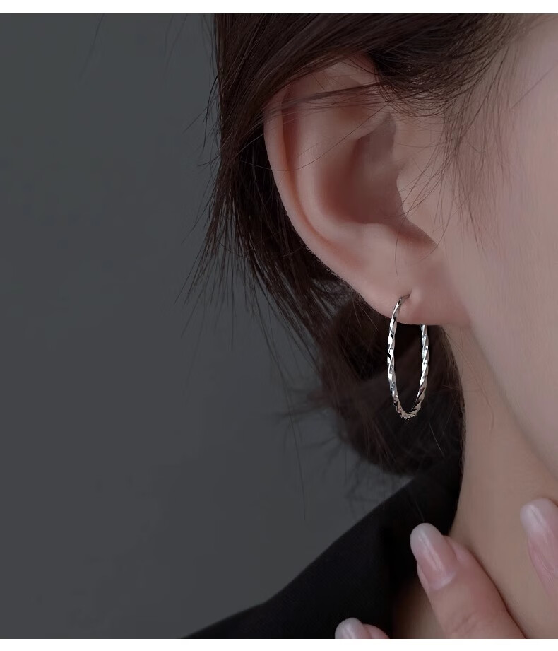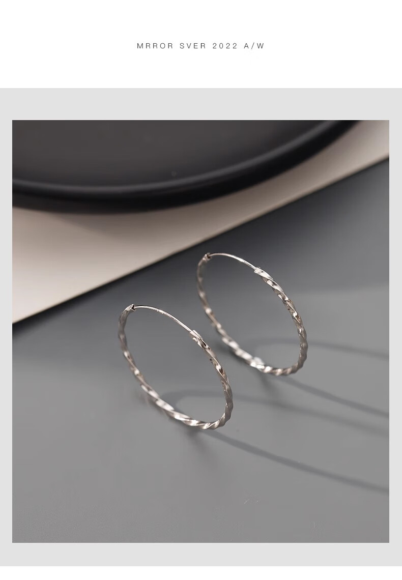 Nilan Fat Donglai's same style pt950 platinum earrings large hoop PT950 hoops for women with a light luxury feel platinum plain hoop earrings and earrings complete collection of plain hoops