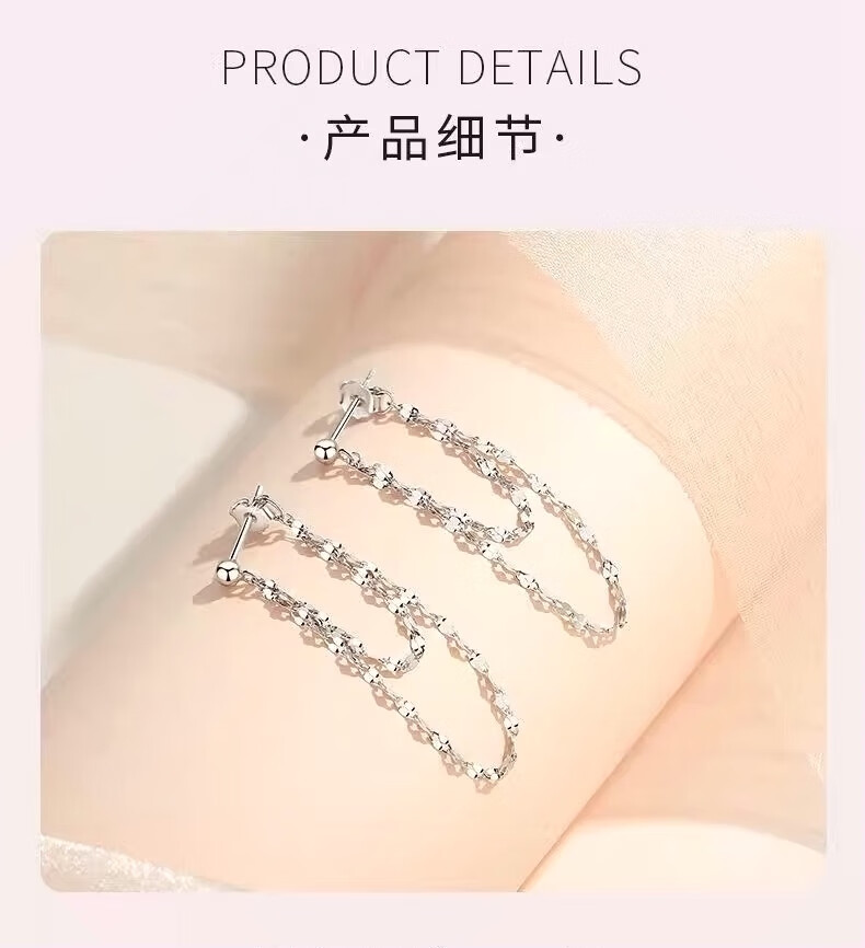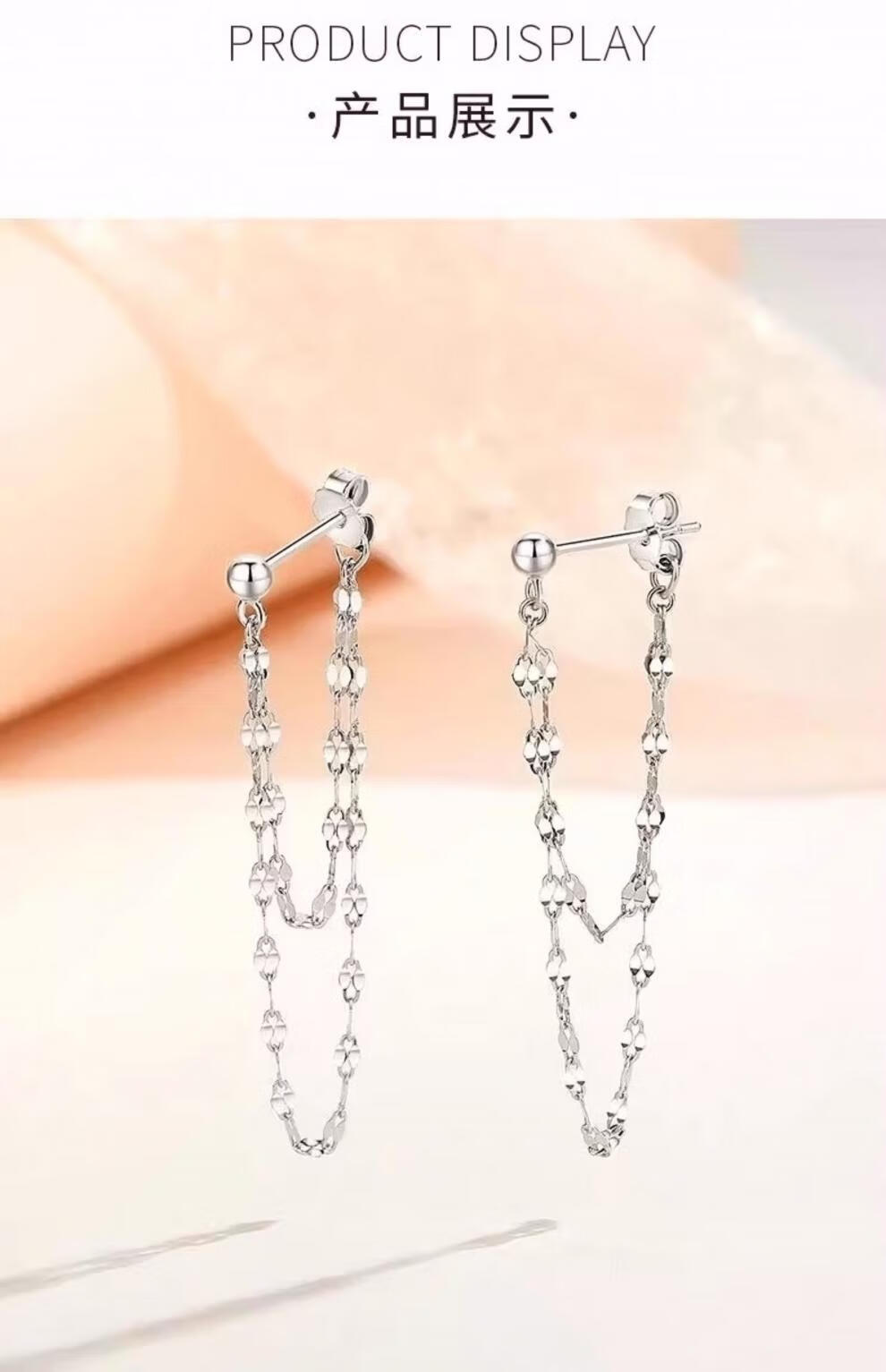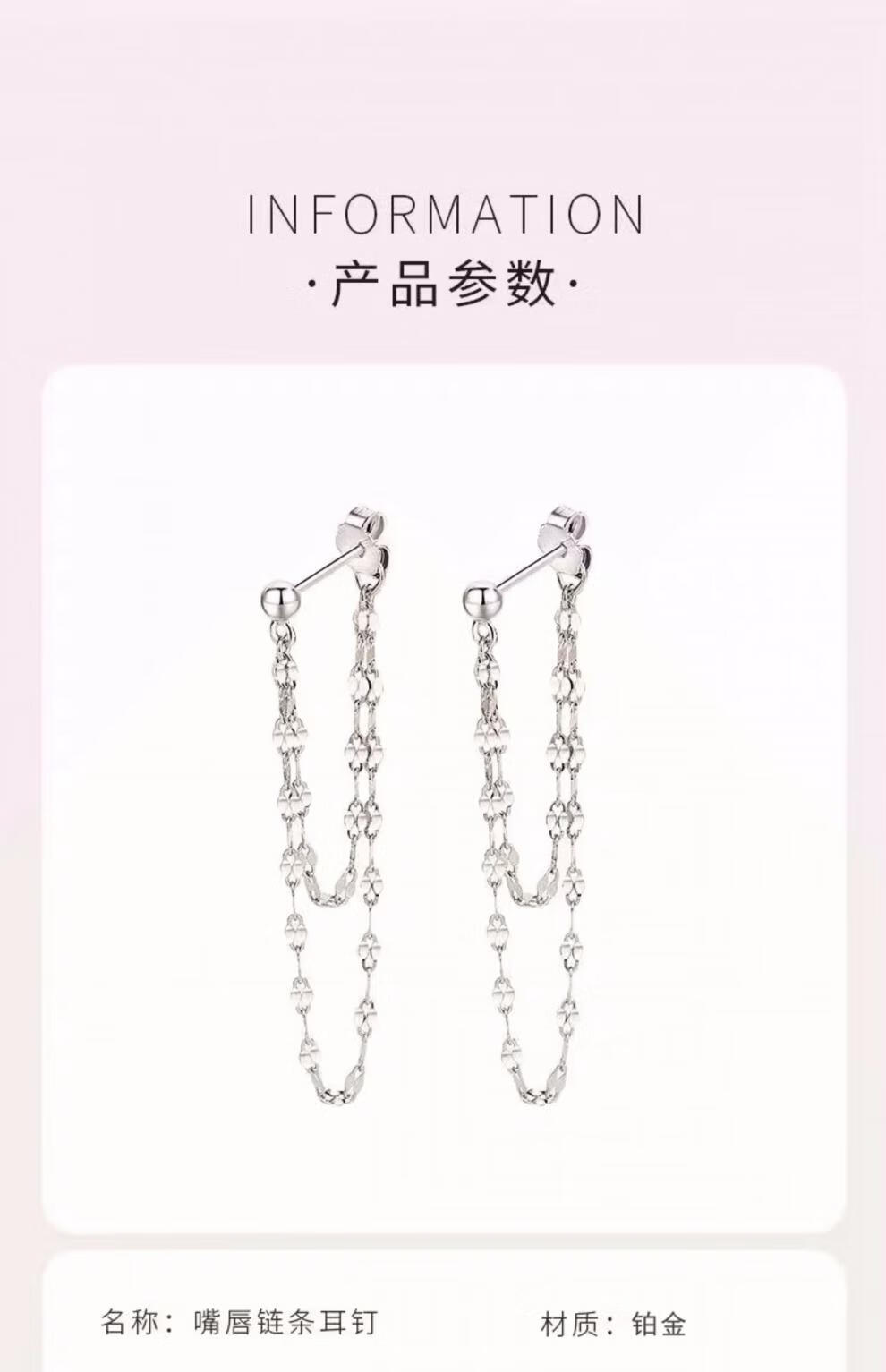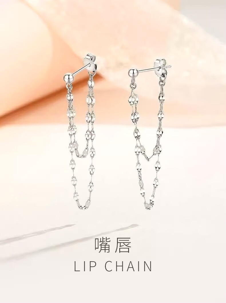 Nilan Fat Donglai same style pt950 platinum ear wire PT950 lip chain earrings for women ins long chain Korean design white