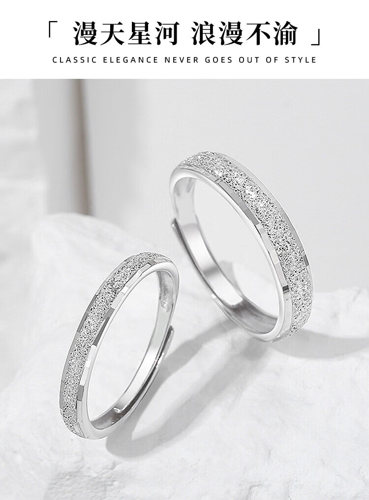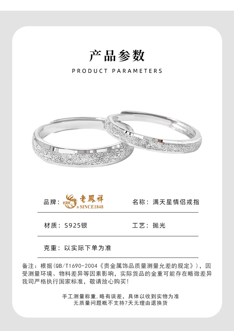 Lao Fengxiang S925 silver baby's breath couple ring men's and women's ring ring 520 Valentine's Day birthday gift for girlfriend and lover starry baby's breath couple ring