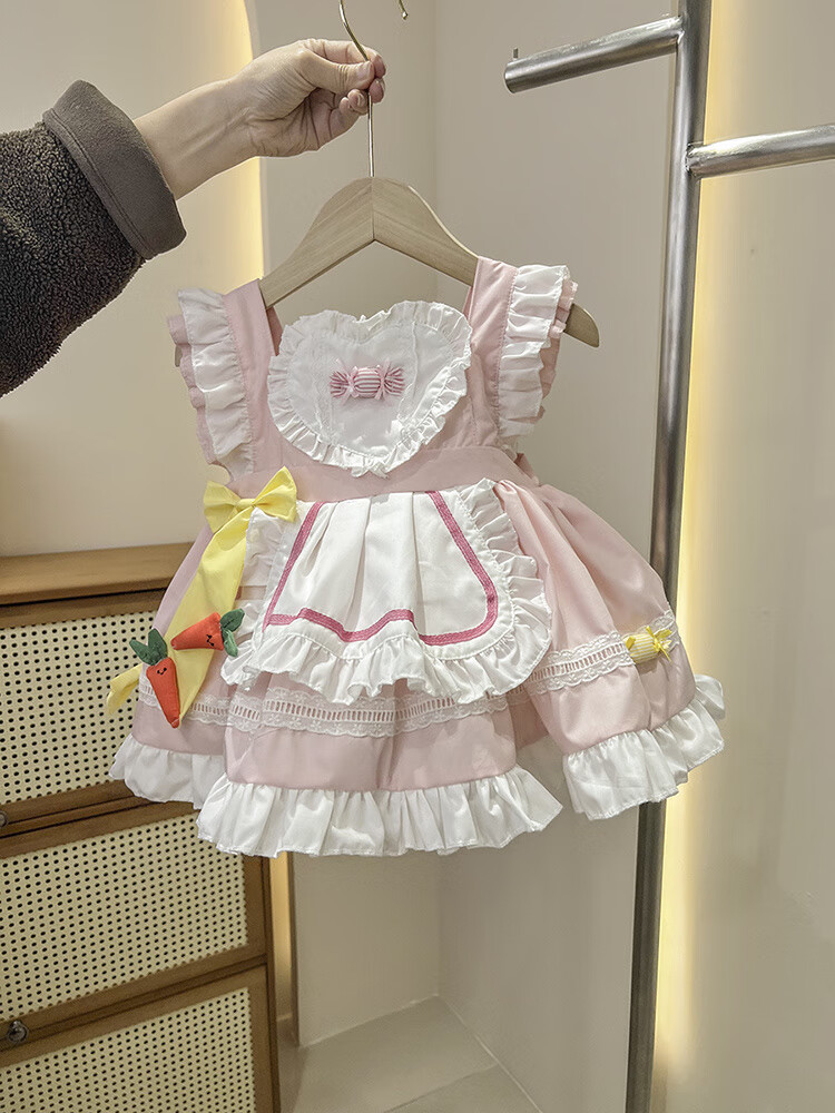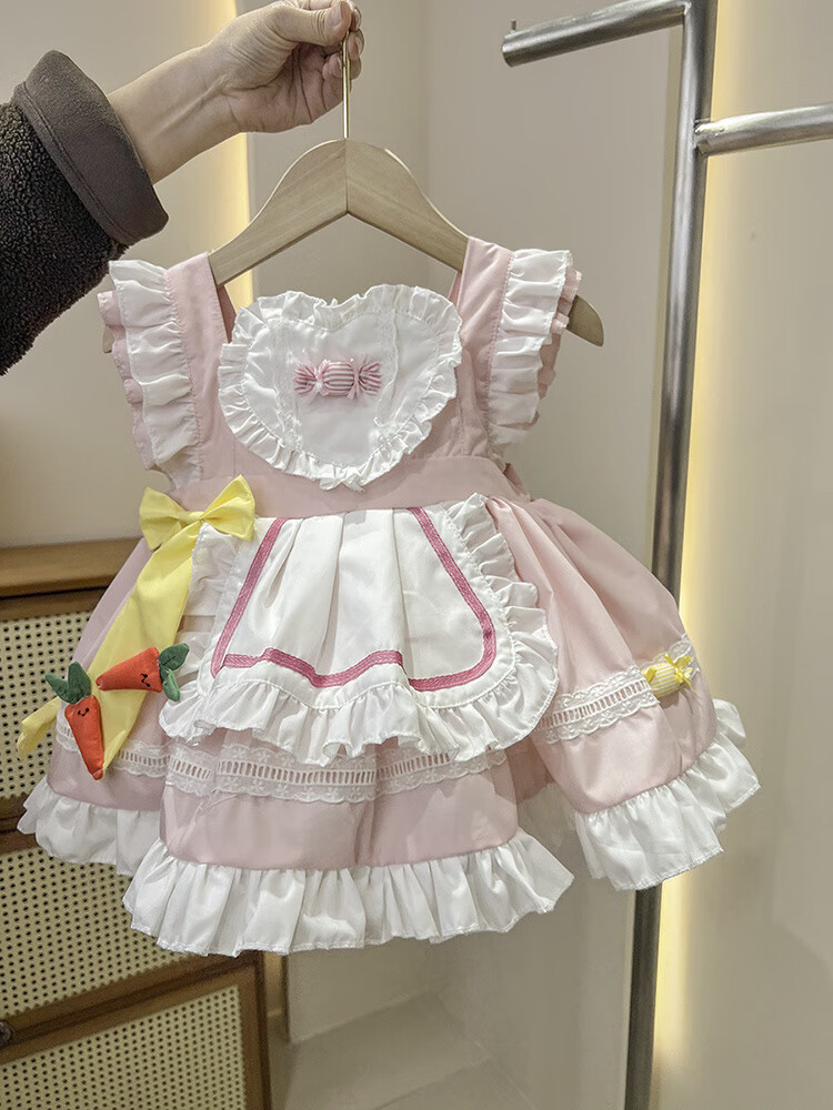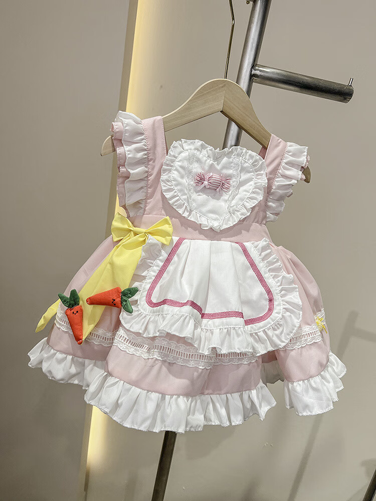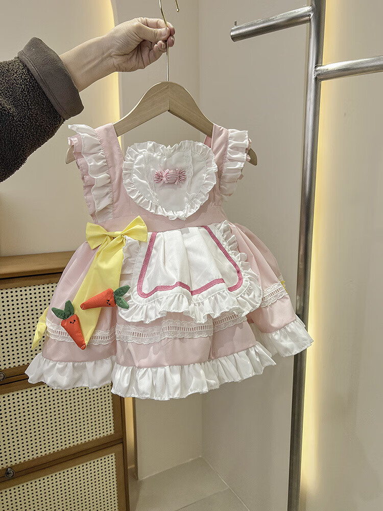 Bang Eve Pink Carrot Style Lolita Princess Dress Baby Bow Princess Style Puff Skirt Western Style Girls Dress Main Picture Style 90 Recommended Height 70-80cm
