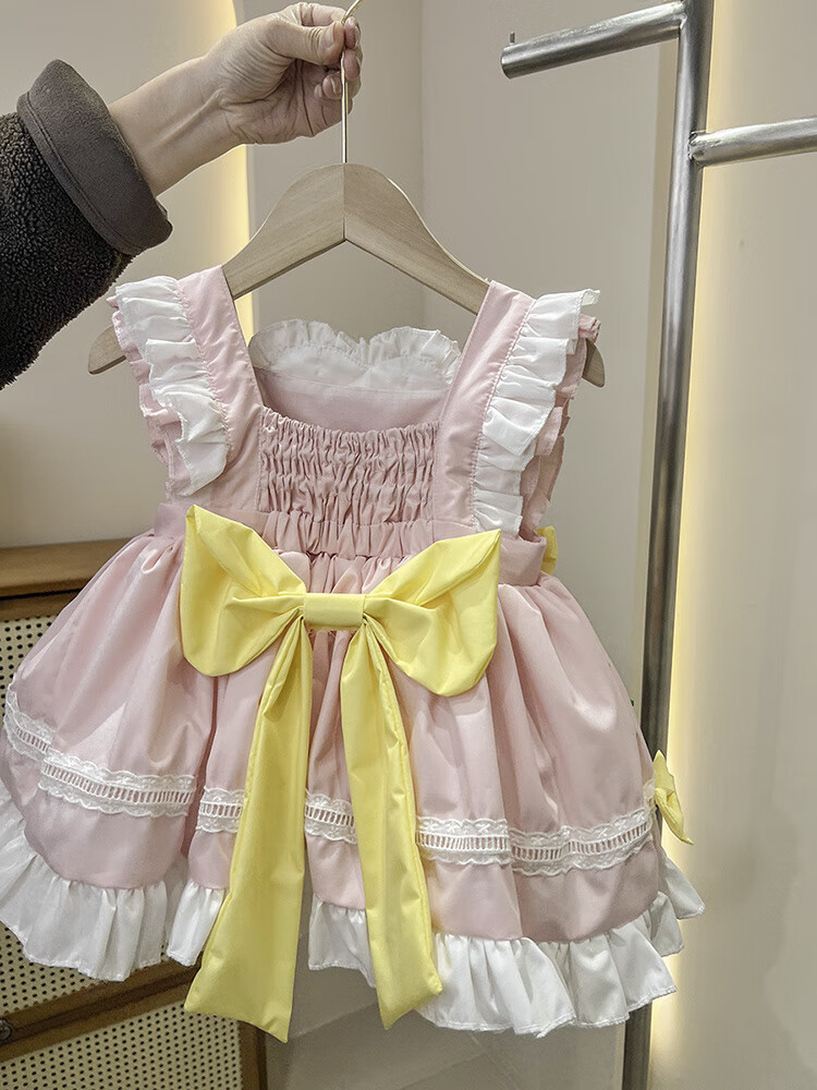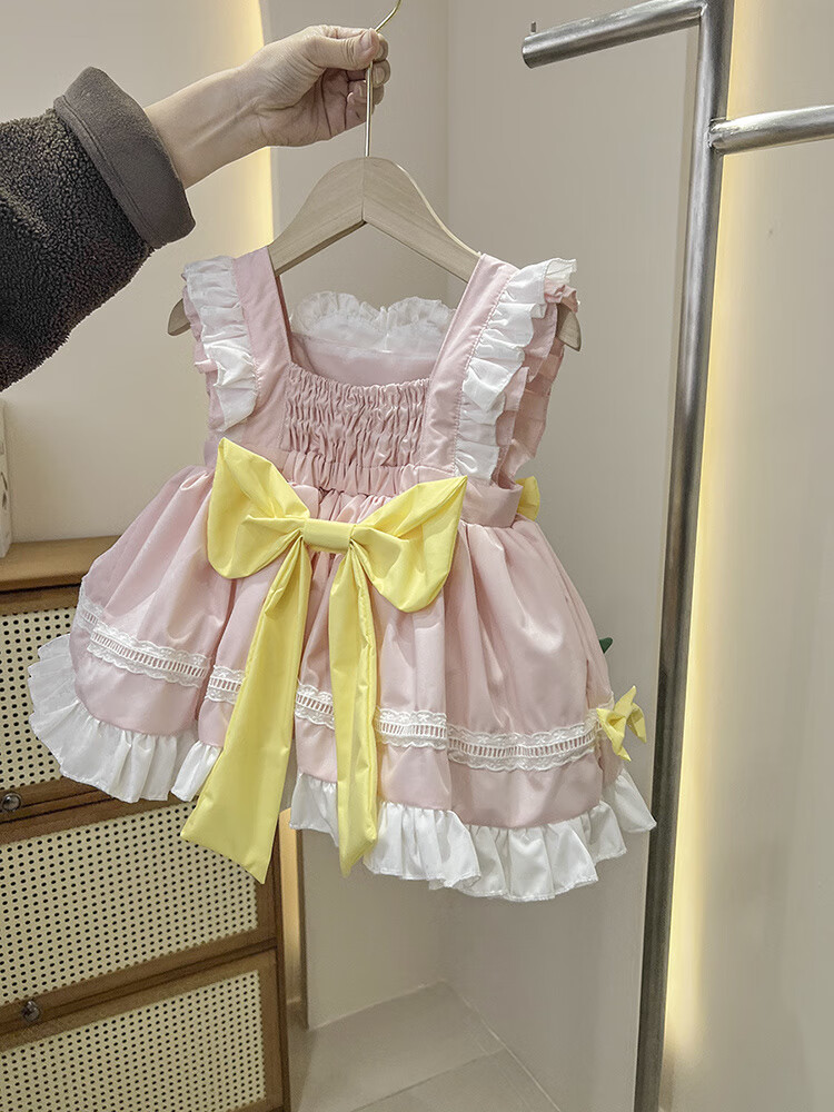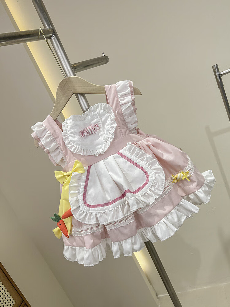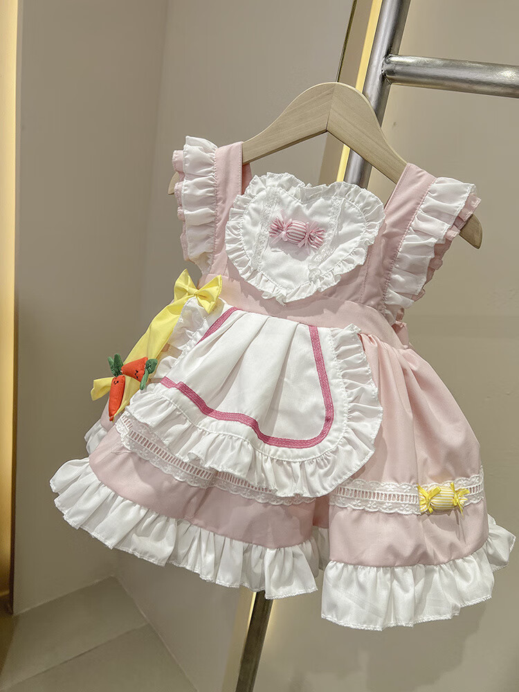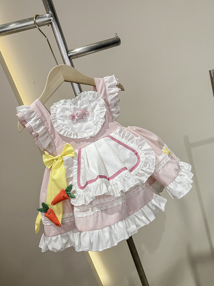 Bang Eve Pink Carrot Style Lolita Princess Dress Baby Bow Princess Style Puff Skirt Western Style Girls Dress Main Picture Style 90 Recommended Height 70-80cm