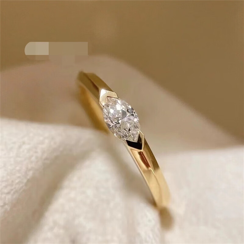 Yuansi 18K gold artificially cultivated diamond marquise diamond ring, simple, exquisite, versatile and personalized for commuting VVS/very slight flaws NGIC certificate with support (please leave a message for the ring number)