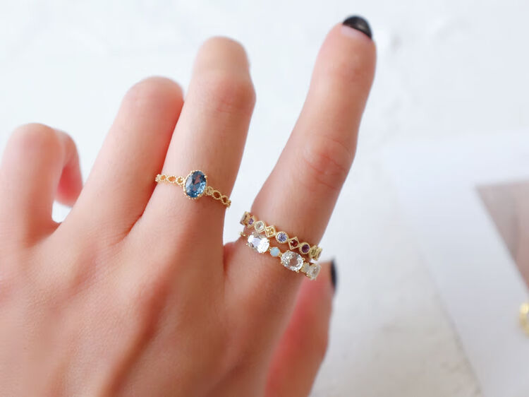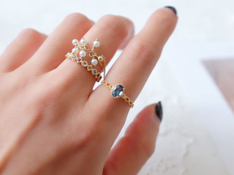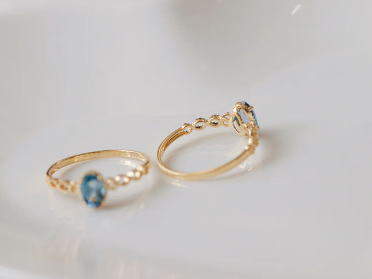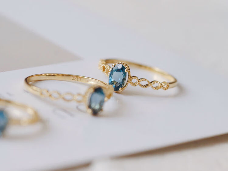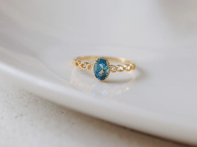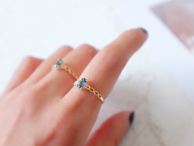 Yuan Si Pleasure Philosophy. 18K gold vintage lace hollow and versatile London blue topaz ring in stock, size 11