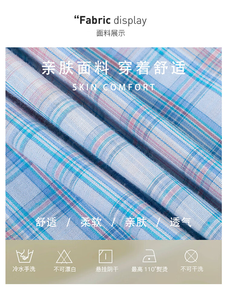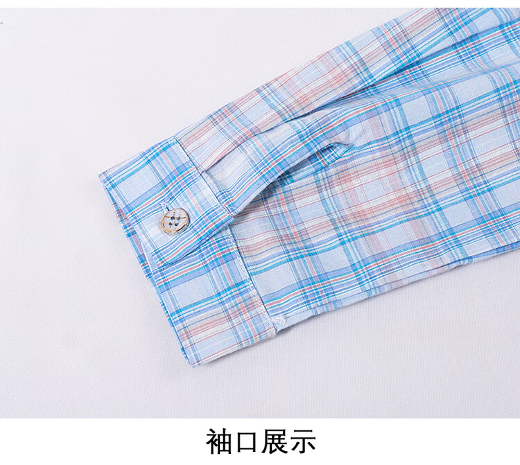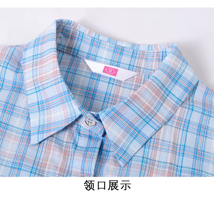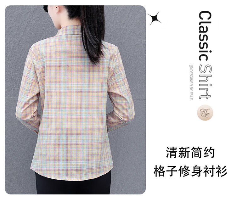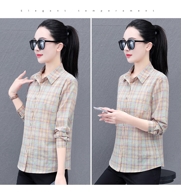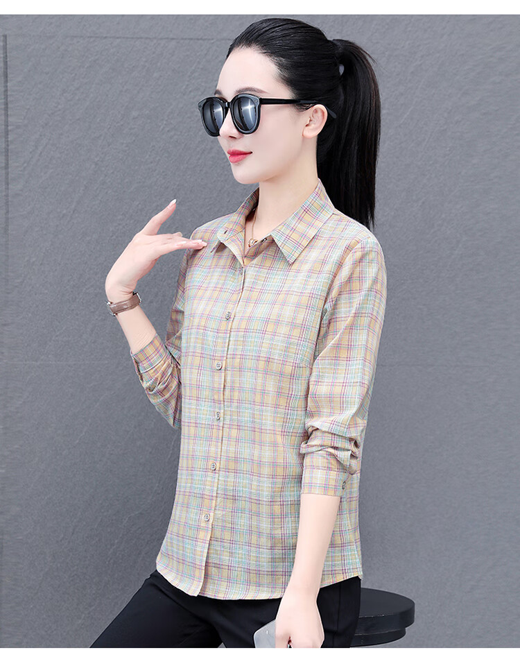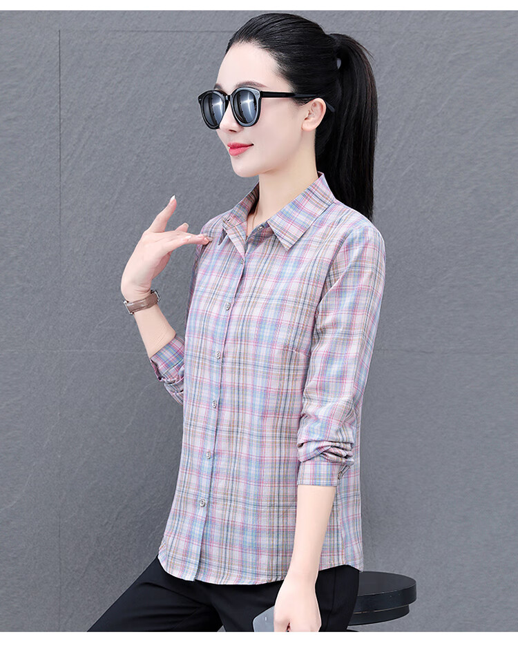 Pure cotton plaid shirt women's spring and autumn new middle-aged mother style long-sleeved temperament lapel slim top light blue 3XL 136-145