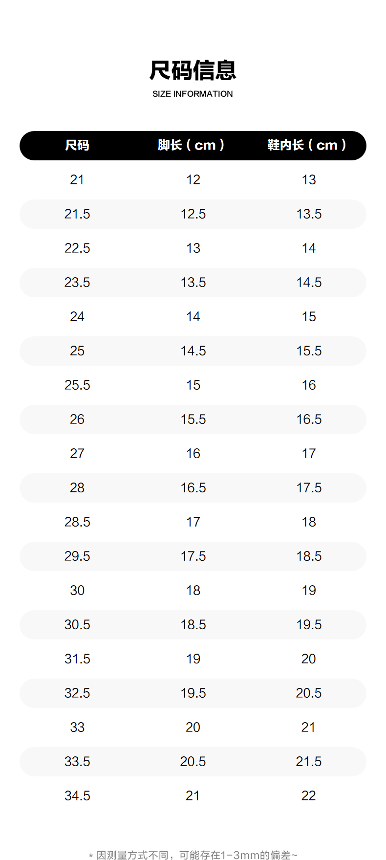 China (cm) 36 - 37 38 - 39 40 - 42 43 - 44 45 - 47