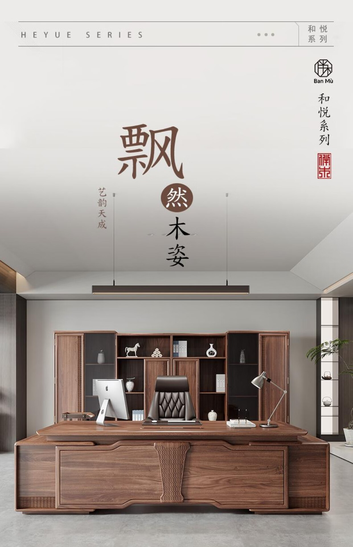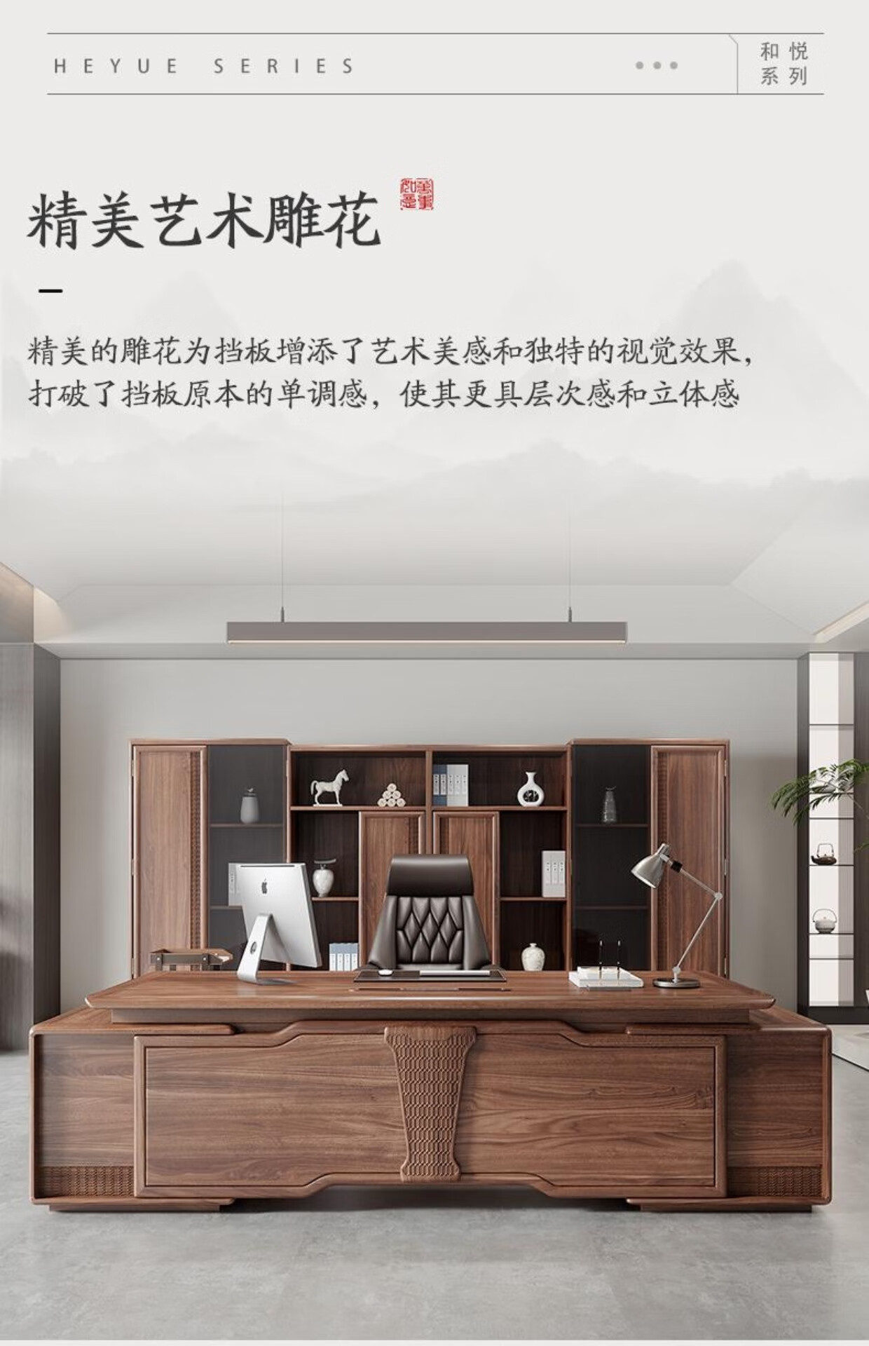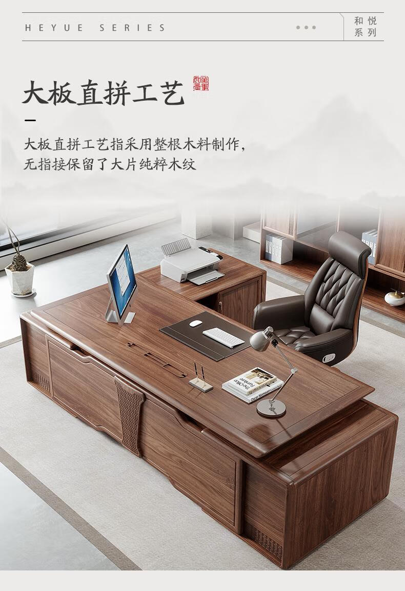 New Chinese style office desk solid wood boss table ebony wood executive desk modern light luxury general manager room decorative cabinet combination 2.2 meters boss table Gabon ebony wood