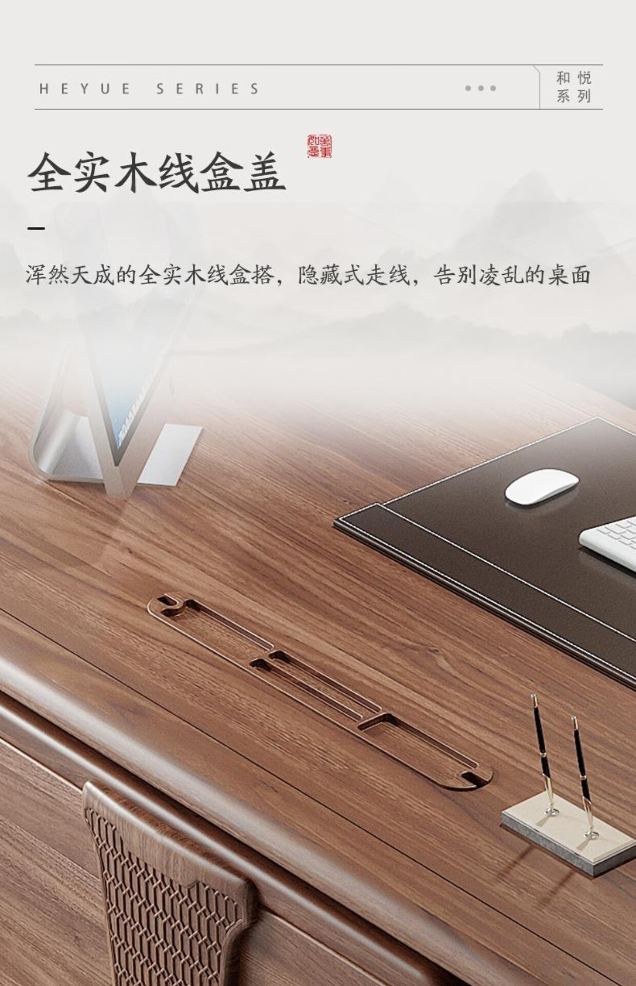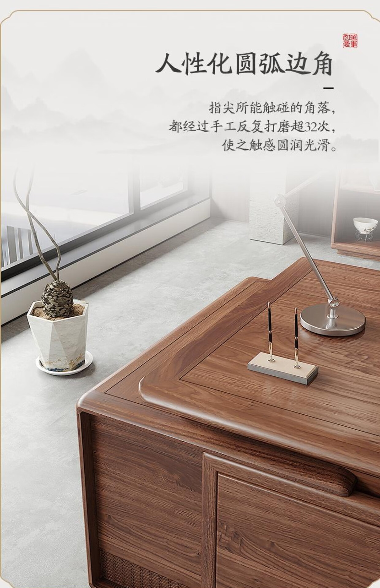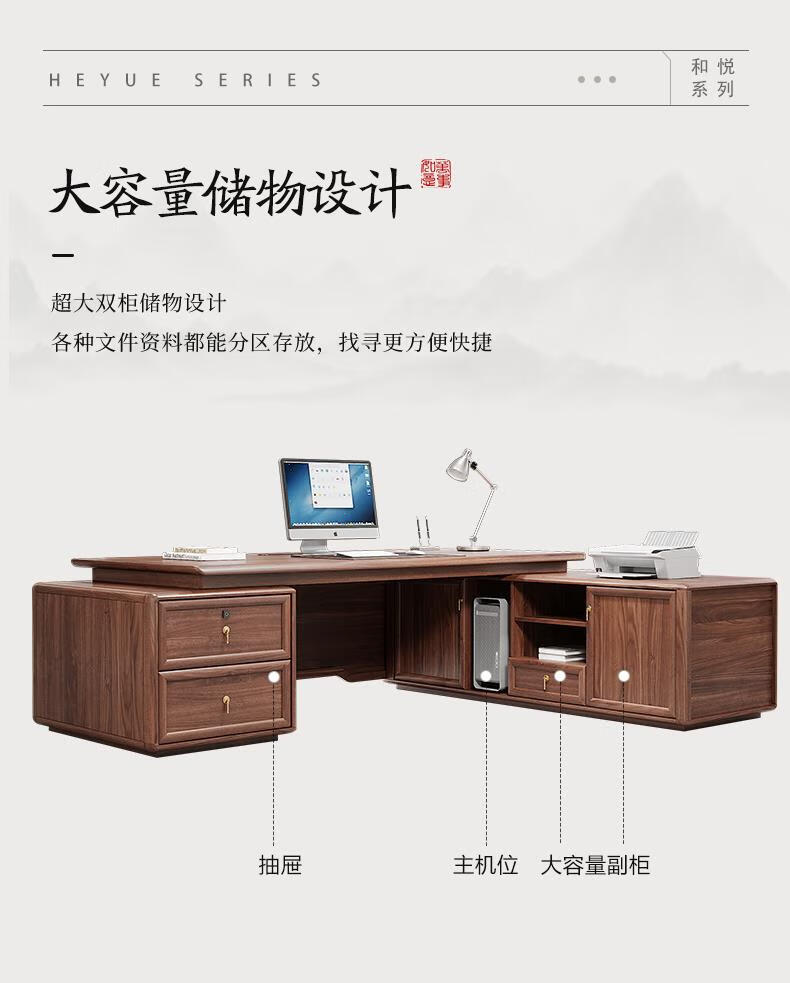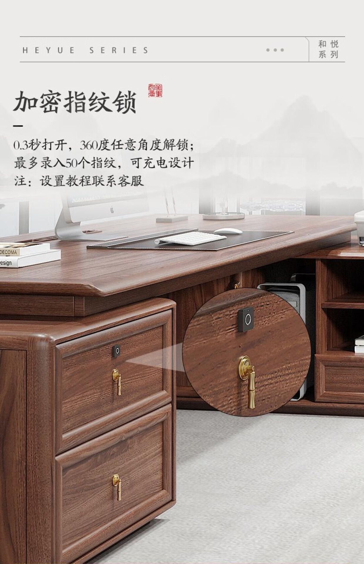 New Chinese style office desk solid wood boss table ebony wood executive desk modern light luxury general manager room decorative cabinet combination 2.2 meters boss table Gabon ebony wood