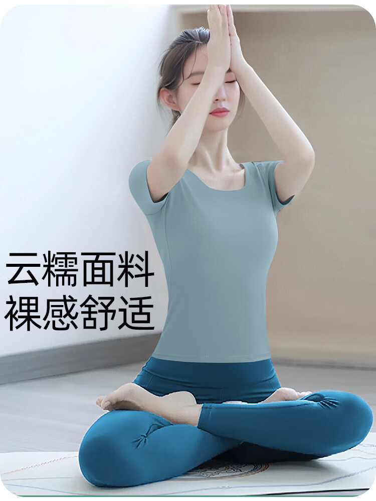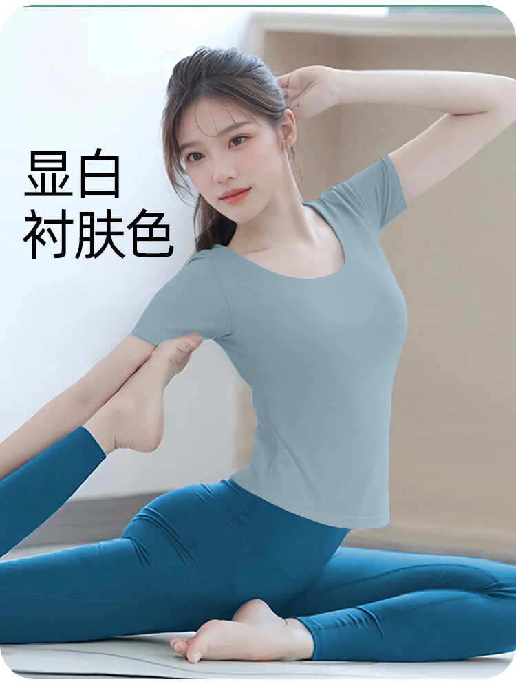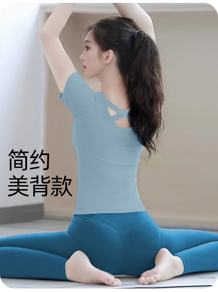 Shuangxiu yoga clothes for women 2025 new cool and beautiful back comfort with chest pad short-sleeved Pilates training running sports suit black top quick-drying and cool style XL 120-135