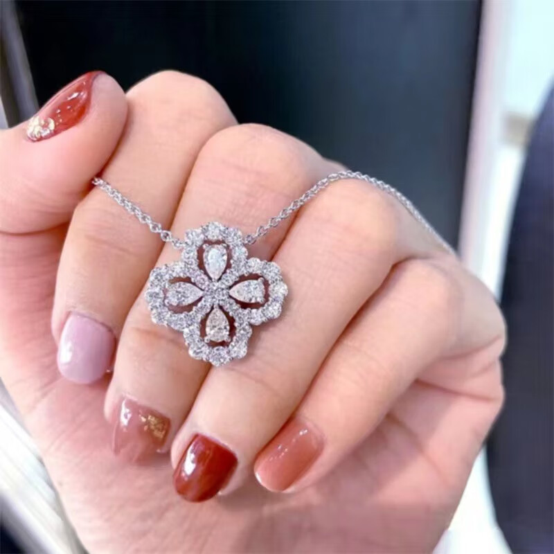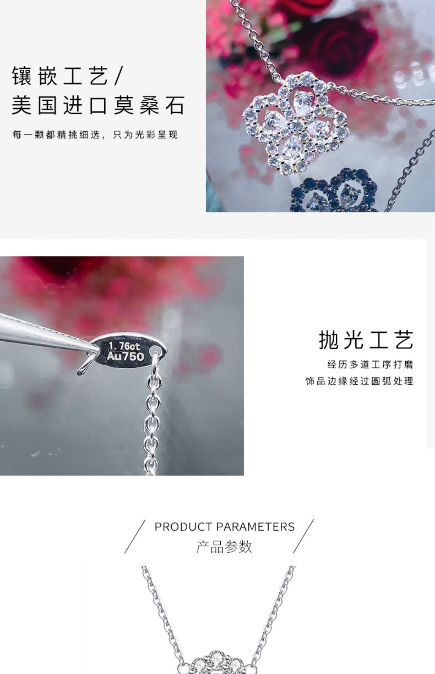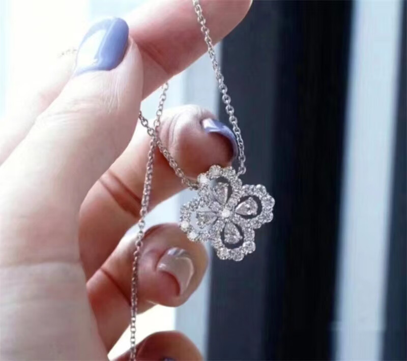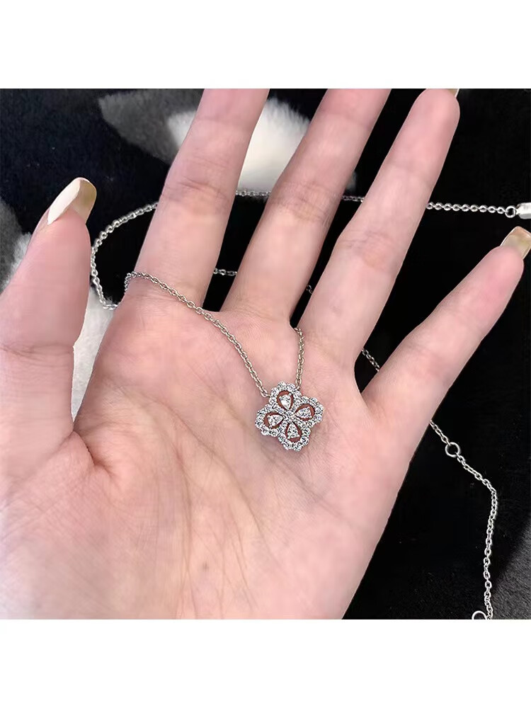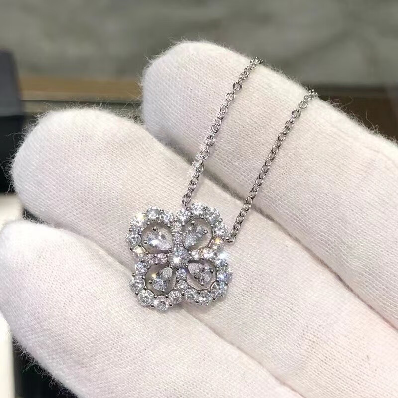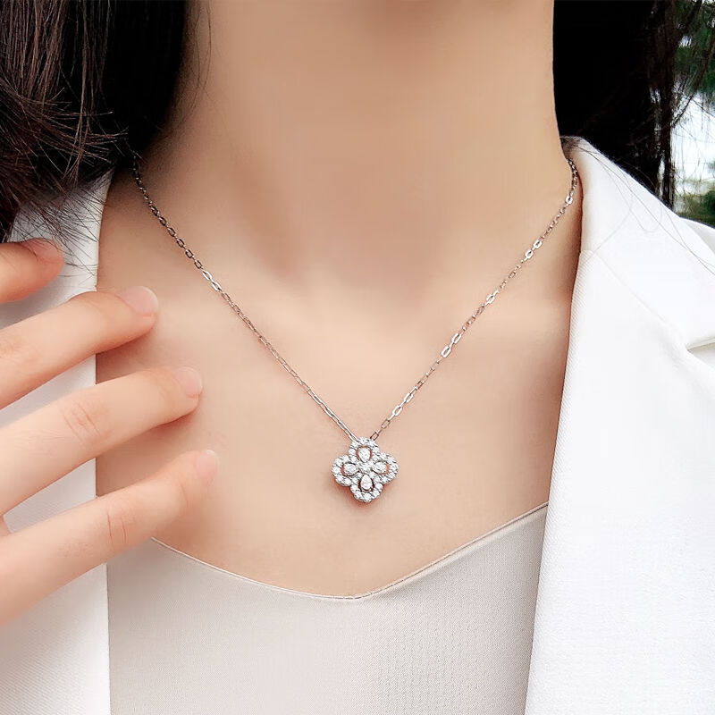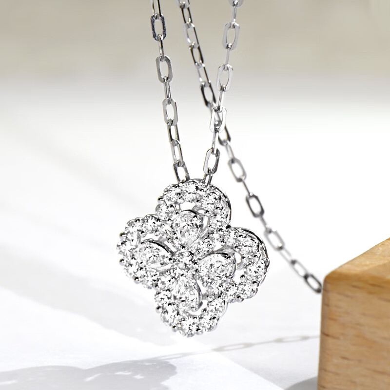 CAOXPT950 pure platinum micro-studded with diamonds imported from the United States D-color moissanite new white gold four-leaf clover pendant necklace pure platinum four-leaf clover necklace