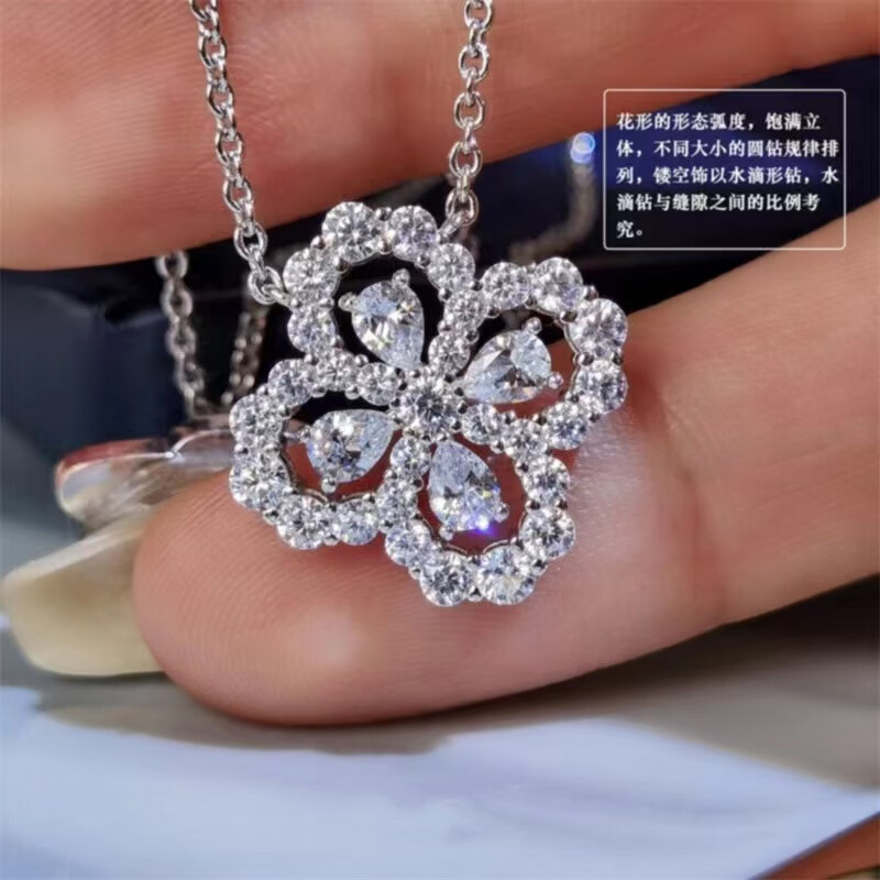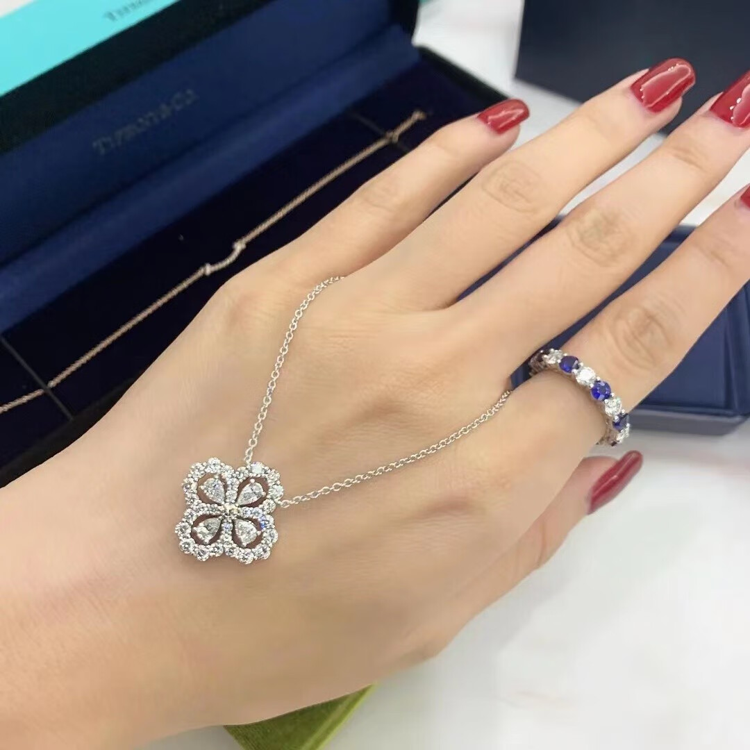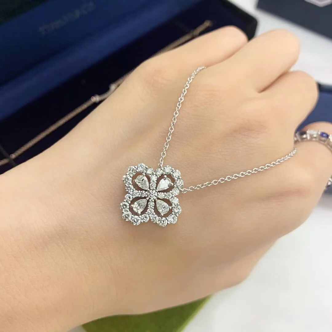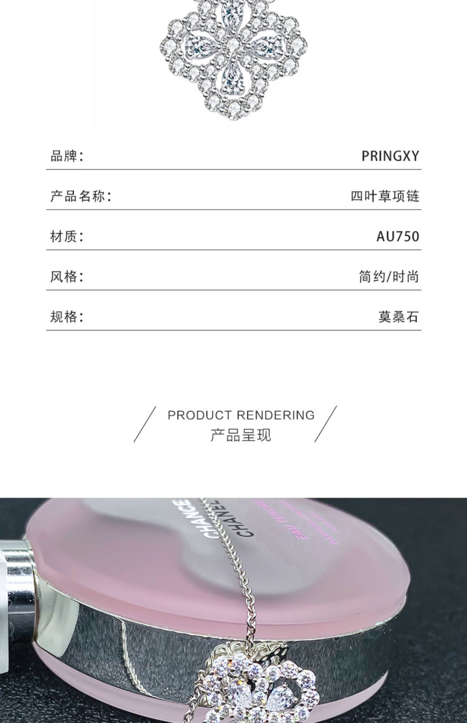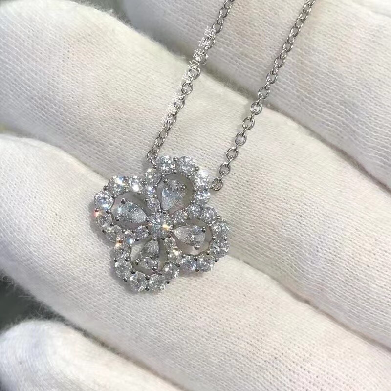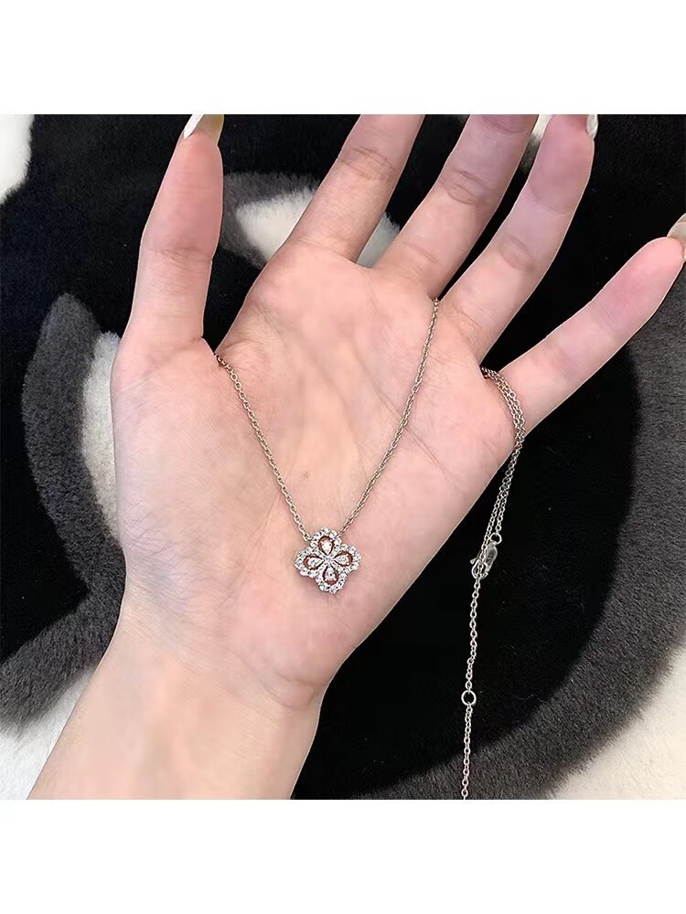 CAOXPT950 pure platinum micro-studded with diamonds imported from the United States D-color moissanite new white gold four-leaf clover pendant necklace pure platinum four-leaf clover necklace