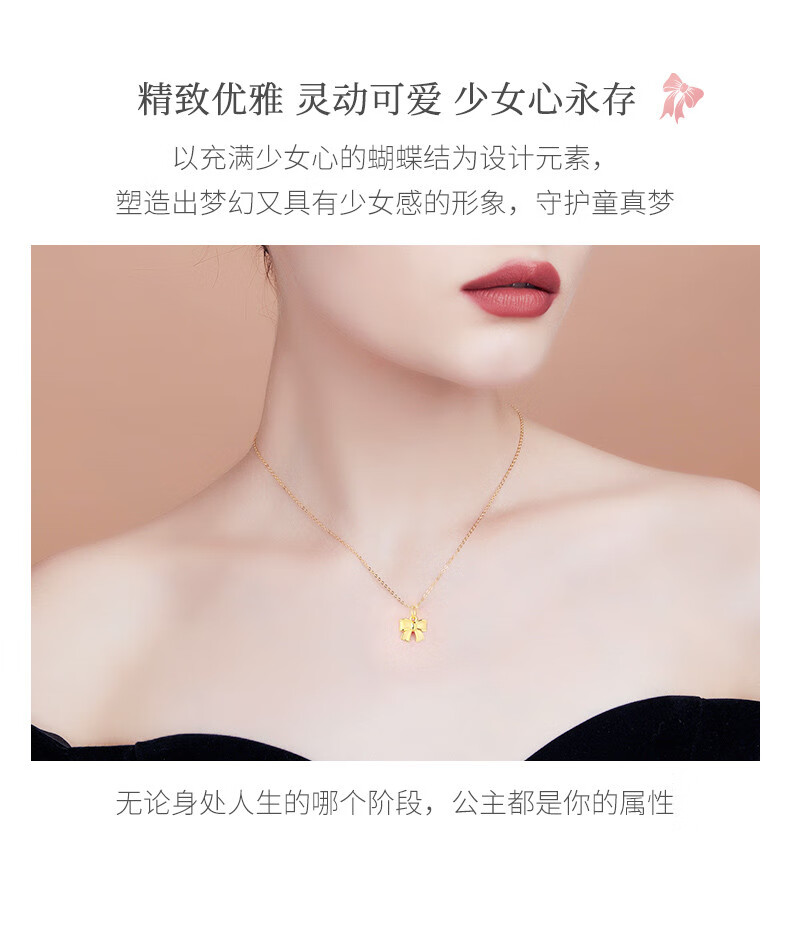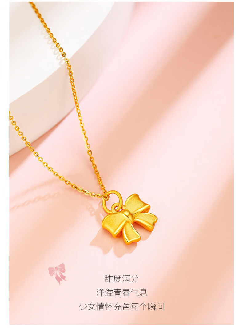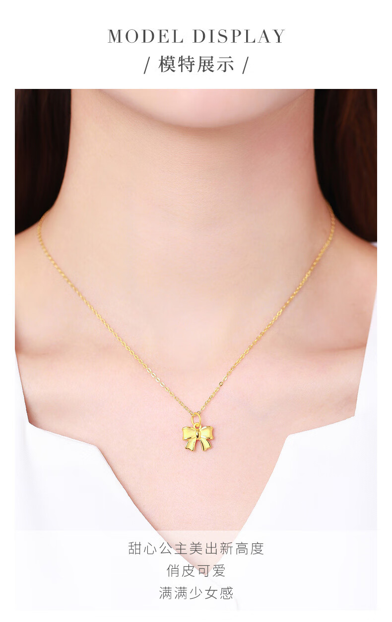 CAOX bow pure gold pendant gold fugitive princess style necklace women's Christmas new gift pendant pure gold pendant