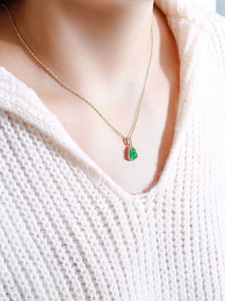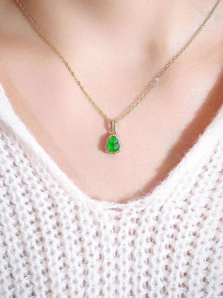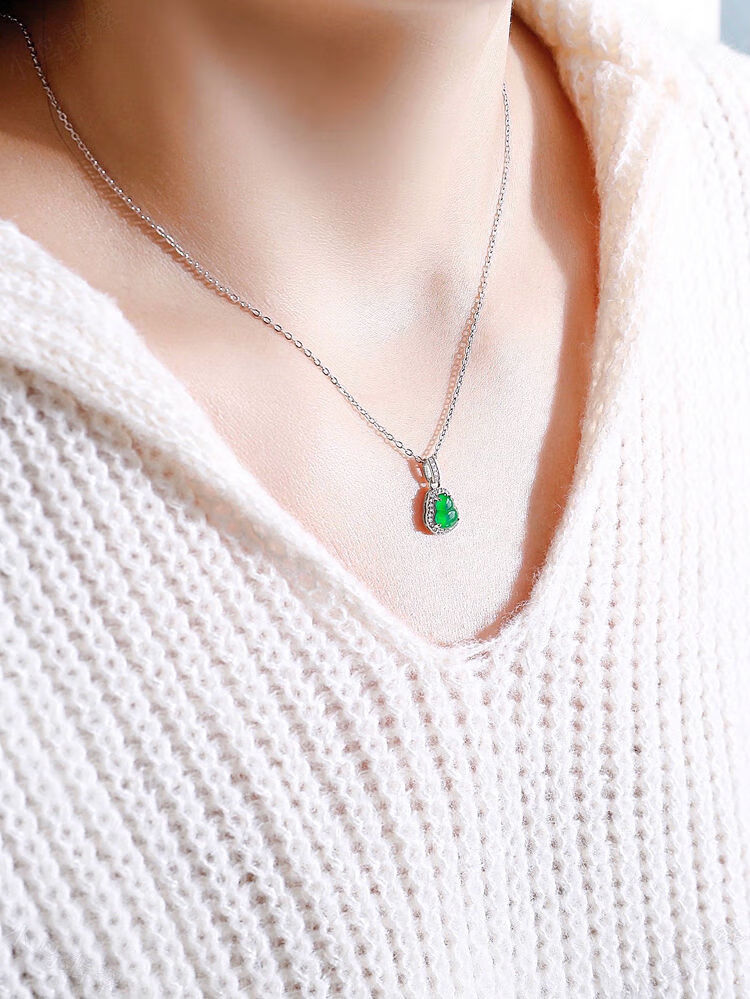 CAOXs925 sterling silver inlaid with high ice species imperial green jade gourd pendant sun green gold inlaid jade necklace pendant gold pendant silver chain